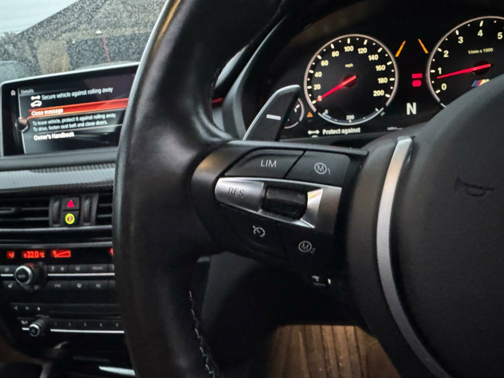 ***WE ARE A RAC APPROVED & AA APPROVED GARAGE***THE CAR COMES WITH A FULL SERVICE HISTORY/LATEST SERVICE CARRIED OUT/OIL SERVICE CARRIED OUT/2 FORMER KEEPERS/2 KEYS/ALLOYS HAVE BEEN REFURBISHED TO A HIGH STANDARD/GOOD TYRES/ULEZ FREE/3 MONTHS PARTS AND LABOUR WARRANTY INCLUDED IN THE ASKING PRICE/EXTENDED WARRANTIES AVAILABLE STARTING FROM £80.00 A MONTH/WARRANTIES AVAILABLE UP TO 3 YEARS/MINIMUM 6 MONTHS MOT/FREE 12 MONTHS BREAKDOWN COVER PROVIDED WITH AA/FINANCE AVAILABLE/DELIVERY AVAILABLE/PDI CARRIED OUT ON ALL VEHICLES/HPI CLEAR/PART EXCHANGES WELCOME ANY QUESTIONS PLEASE DO GET IN CONTACT WITH US*****ADMIN FEE APPLIES ON ALL USED CARS*****LOCATED BEHIND TOP GOLF*****KT15 2DW*****PLEASE SEE T & C'S ON OUR WEBSITE FOR MORE INFORMATION***** v power socket - rear of centre console x2, 12v power socket - small folding compartment in centre console, 20gb hdd memory, 20in alloy wheels - light alloy m double-spoke style 611m, 40-20-40 split folding rear seats, adaptive dynamic suspension, adaptive led headlights with high-beam assistant, adaptive m suspension, air breather, air conditioning - automatic with two-zone control and extended features, airbags, alarm system - thatcham 1 with remote control and engine immobiliser, ambient lighting - colour selection, armrest - front with storage compartment, automatic start-stop button, automatically dimming rear view mirror, auxiliary input point for auxiliary playing devices, bmw connecteddrive online services, bmw connecteddrive services, bmw emergency call, bmw professional radio with single cd player - with mp3 playback compatibility, bmw teleservices, brake force display, brake pad wear indicator - front and rear, check control warning system, child locking system - rear doors, child seat isofix attachment - rear, concierge service, condition based service, courtesy lights - front and rear with soft on-off dimming, cruise control with brake function, cup holders - front and rear, dab digital radio, dsc - dynamic stability control plus, deformation zones - front and rear, direction indicator side lights integrated in exterior mirrors, door handles - body colour, downlights in exterior door handles, driving assistant, electric windows - front and rear with open-close fingertip control - anti-trap facility and comfort closing function, electro-mechanical parking brake with auto-hold function, enhanced bluetooth telephone preparation with wireless charging, exhaust tailpipes - quad - chrome, extended storage, exterior trim - high-gloss shadowline, favourite buttons, first aid kit and warning triangle, floor mats - velour, follow me home headlight function, footwell lights - front with led technology, glove compartment - lockable and illuminated, hdc - hill descent control, head restraints - front and rear, head-up display, headlight wash, headlining - anthracite, high level third brake light, high-beam assistant, indicator lenses - clear, instrument panel - leather, interior trim - aluminium trace, kidney grille - chrome with double high-gloss black vertical slats and x6 m designation, knee pads on centre console for driver and front passenger, led fog lights - front, locking wheel bolts, loudspeaker system - bmw advanced, luggage compartment - retractable and removable cover, lumbar support - driver and front passenger, m aerodynamic bodystyling, m exterior mirrors - folding - automatically dimming - aspheric - heated with electric adjustment, m instrument panel, m mobility tyre sealing system, m rear spoiler, m servotronic power steering, navigation system - bmw professional multimedia, obc - on-board computer, optimum shift indicator, pdc - park distance control - front and rear, personal profile, power socket - 12v in luggage compartment, rain sensor with automatic headlight activation, reading lights - front and rear, real time traffic information, remote control - integrated key with m designation, remote control locking, remote services, roof design without roof rails, seat adjustment - front electric with driver memory, seat belts - front - inertia reel with pyrotechnical belt latch tensioner - belt force limiter and belt restrainer, seat belts - rear - three with inertia reel, seats - front heated, seats - front m sport, securing rings in luggage compartment x4, side impact protection, smokers package, steering column with electric reach and rake adjustment, steering wheel - m leather multifunction with gearshift paddles, storage compartment - interior door panels, sun visors with illuminated vanity mirrors, tpms - tyre pressure monitoring system, tailgate - powered - one piece with intermediate stop function, toolkit located in luggage compartment, wifi hotspot preparation, windows - heat insulated green tinted, windscreen washer jets - heated, x6 m designation on tailgate, idrive touch controller with shortcut buttons, electric glass sunroof, interior trim - carbon fibre, surround-view, cold weather package, sun protection glazing, seat heating - rear, speed limit display, concierge service, steering wheel - heated, extended merino leather - black with black interior