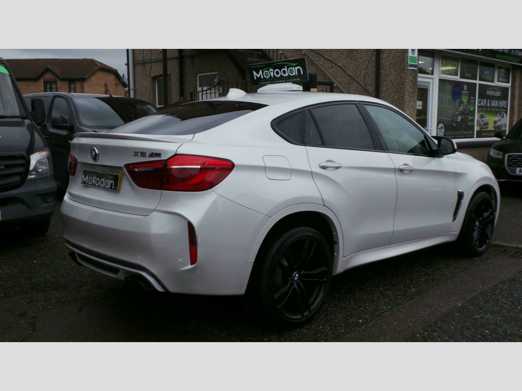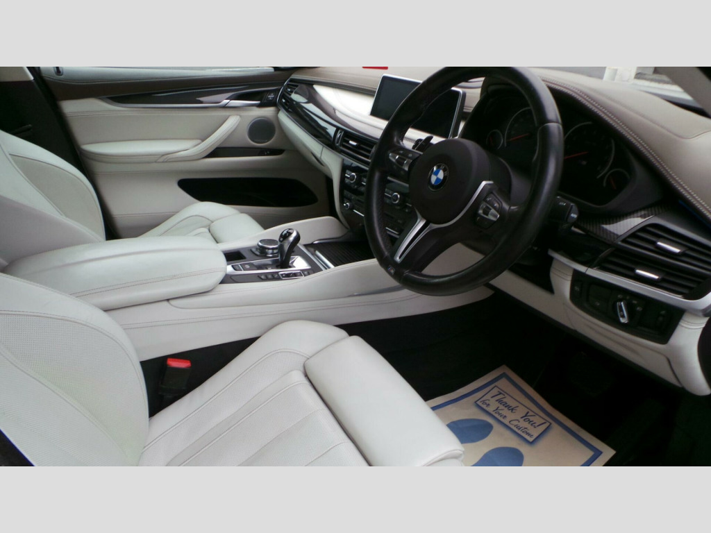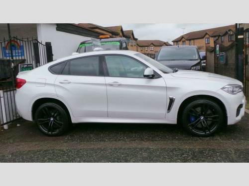 Here we have an example of a 2016 (16) BMW X6 M 4.4 BiTurbo V8 SUV 5dr Petrol Auto xDrive Euro 6 (s/s) (575 bhp) which has covered 55,000 miles with full service history, Top Spec, All our vehicles include *12-months AA Breakdown Roadside Assistance *3 -months Comprehensive Warranty ( extended warranties are available : 6 / 12 / 24 / 36 months ) All vehicles are sold with a minimum of 6-months MOT. We also offer 5-day driveway insurance if required * subject to status . We are experts in car finance for all credit scores - if you have previously been refused finance or have a low credit score we are able to help you , Please visit our website to apply or call for more information , Please contact us on 01708 520 945 or mobile 07484 085 888 for further information on this vehicle , a no obligation test drive or finance quotation are welcome , we also accept part exchange . All debit/credit cards accepted v power socket - centre console, 12v power socket - rear of centre console, 20gb hdd memory, 20in alloy wheels - light alloy m double-spoke style 611m, 40-20-40 split folding rear seats, abs - anti lock braking system, asc - automatic stability control, adaptive comfort suspension, adaptive dynamic suspension, adaptive led headlights with high-beam assistant, air breather - x6 m designation, air conditioning - automatic - dual zone, airbags - curtain, airbags - driver, airbags - driver and front passenger side, airbags - first and second seat row its head, airbags - passenger, alarm system thatcham 1 with remote control, ambient interior lighting, armrest - front with storage compartment, automatically dimming rear view mirror, auxiliary input, bmw apps interface, bmw connecteddrive - online, bmw connecteddrive online services, bmw emergency call, bmw professional radio - single cd and mp3, bmw teleservices, brake drying, brake fade compensation, brake force display, brake pad wear indicator - front and rear, brake pre-tensioning, bumper system front and rear - replaceable deformation elements for impacts up to 9mph, cbc - cornering brake control, check control warning system, child proof locking system - rear doors, child seat isofix attachment - rear, city collision mitigation, courtesy lights - front and rear with soft on-off dimming, crash sensor - activating central locking-hazard warning lights-fuel cut off, cruise control with brake function, cup holders - front and rear, dab digital radio, dbc - dynamic brake control, dsc - dynamic stability control plus, dtc - dynamic traction control, daytime running lights - led, door handles - body colour, door handles - exterior puddle lights, door mirrors - integrated indicators, driving assistant, dynamic drive, dynamic performance control, ebd - electronic brake-force distribution, electric windows - front and rear with open-close fingertip control, electro-mechanical parking brake with auto-hold function, engine immobiliser, enhanced bluetooth telephone preparation with usb audio interface, exhaust tailpipes - quad - chrome, extended storage, exterior trim - high-gloss shadowline, first aid kit, floor mats - velour, follow me home headlight function, footwell lights - front with led, forward collision warning system, glove compartment - lockable and illuminated, hdc - hill descent control, head restraints - front and rear, head-up display, headlight wash, headlining - anthracite, heated windscreen washer jets, high level third brake light, high-beam assistant, hill start assist, indicator lenses - clear, information plus, instrument panel - leather, interior trim - aluminium trace, kidney grille - chrome with double high-gloss black vertical slats and x6 m designation, knee pads on centre console for driver and front passenger, led fog lights - front, led headlights, lane departure warning system, locking wheel bolts, luggage compartment - retractable and removeable cover, lumbar support - driver and front passenger, m aerodynamic bodystyling, m door mirrors - folding - automatically dimming - aspheric - heated - electric adjustment, m instrument panel - red illuminated needles - white illuminated display with variable m rev limiter, m mobility tyre sealing system, m rear spoiler, m sport instrument cluster, navigation system - bmw professional multimedia, obc - on-board computer, optimum shift indicator, outside temperature display, pdc - park distance control - front and rear, passenger seat occupancy sensor - front, personal profile, power socket - 12v in luggage compartment, power steering - m servotronic with comfort - sport - sport+ settings, preventive pedestrian protection, rain sensor with automatic headlight activation, reading lights - front and rear, real time traffic information, remote control - integrated key with m designation, remote control locking, remote services, seat adjustment - front electric with driver memory, seat belts - front inertia reel with pyrotechnical belt latch tensioner and belt force limiter, seat belts - rear - three with inertia reel, seats - front heated, seats - front m sport, securing rings in luggage compartment x4, self-levelling air suspension - rear, side impact protection, smokers package, speaker system - bmw advanced, start-stop button with keyless operation, steering column with electric reach and rake adjustment, steering wheel - m leather multifunction with gearshift paddles, storage compartment - interior door panels, sun visors with illuminated vanity mirrors, tpms - tyre pressure monitoring system, tailgate - powered - one piece with intermediate stop function, tailgate split - bottom section with manual release, tool kit located in luggage compartment, upper tailgate operation - powered, vdc - variable damper control, voice control - phone, windows - heat insulated green tinted, x6 m designation on tailgate, idrive controller with shortcut buttons, bang and olufsen advanced audio system, 21in alloy wheels - light alloy m double-spoke style 612m, night vision with dynamic light spot,