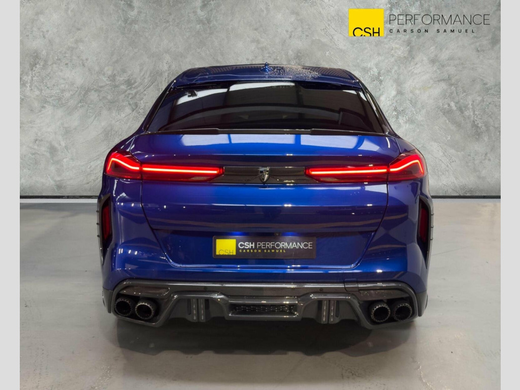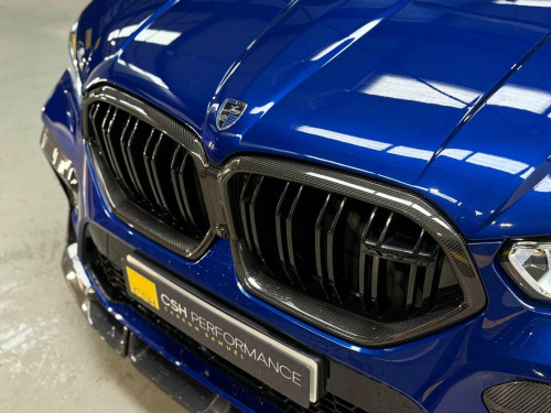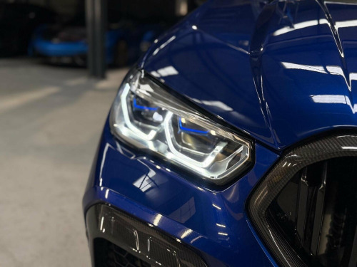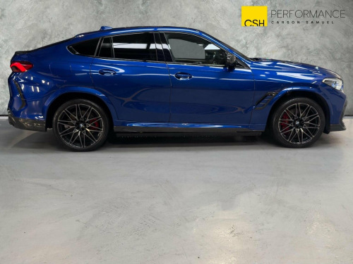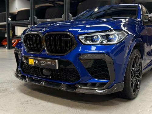 We’re pleased to present this stunning BMW X6M Competition, finished in Marina Bay Blue Metallic. This car is the only one of its kind in the country with a Larte Design bodykit designed and built as per the previous customers specification. This includes a custom vented bonnet, grill trims finished in carbon, front splitter in carbon, gloss black front bumper inserts, carbon mirror caps, carbon trims on air intakes on the wings, carbon side sill pads, low carbon spoiler, dual exhaust pipe and tips, rear boot trim, complete carbon rear diffuser with brake lights and carbon rear bumper overlays. This car also comes with a fantastic factory specification, including Technology Plus Pack, Bowers and Wilkins Diamond Surround Sound System, Comfort Plus Package, Panorama Glass Roof Sky Lounge, Driving Assistant Professional, Visibility Pack, Interior Trim - Carbon Fibre, M Carbon Rear Spoiler, M Carbon Side Mirror Caps, Full Merino Leather - Silverstone with Black Interior, 21in-22in Alloy Wheels - M Light 818 Bi-Colour with Mixed Tyres, Head-Up Display, Adaptive M Suspension Professional, Parking Assistant Plus, Loudspeaker System - Harman Kardon and so much more. 2 keys, full service history. At CSH Performance we offer extended warranties, immobilisers and tracking devices, ceramic coating, styling kits and more - enquire with us today. All vehicles undergo comprehensive health checks and are sold with warranty packages. Contact us today to enquire - appointment only due to multiple sites. Finance available. Part exchange welcome. 01484 941105.