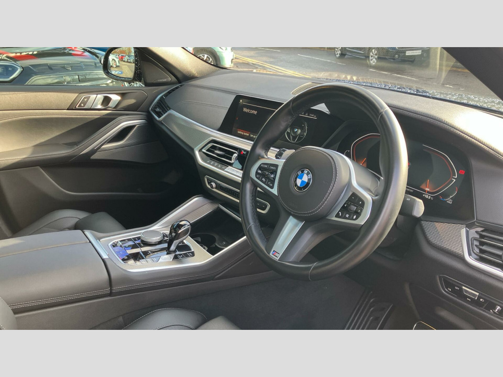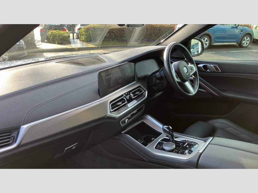 Further enhancing the driving experience are the advanced Parking Assistant system, featuring a rear camera for effortless manoeuvring, and the convenience of Electric Memory Seats, allowing you to easily recall your preferred driving position. The X6 40d M Sport distinguishes itself with its impressive acceleration, achieving 0 to 62 miles per hour in a swift 5.5 seconds, a performance benchmark that sets it apart from many other vehicles in its class. This combination of luxury, performance, and thoughtful features makes this BMW X6 a truly compelling choice. 22" 742 M Double-spoke Bi-colour Alloy W, Front and Rear Air Suspension, Iconic Glow Kidney Grille, M Sport Seat Belts, Sky Lounge Panoramic Glass Sunroof, Sun Protection Glass, Active Protection, Gesture Control, Head-Up Display, Harman/Kardon Surround Sound Audio, Indv. high-gloss shadowline- extended, M Sport Pro Pack, Technology Pack, Mild Hybrid Technology, M Sport Exhaust System, M Sport Brakes with Blue Calipers, Tyre Repair Kit, Alarm System, Aluminium Tetragon Interior Trim, Ext. mirrors- folding with anti-dazzle, Ambient Lighting, Electric Memory Seats, Sport seats, Heated front seats, High-Beam Assistant, Active Guard Plus, Parking Assistant, BMW TeleServices, BMW Emergency Call, BMW Online Services, Connected Package Pro (limited duration), Enhanced Bluetooth- wireless charging, Deletion of iDrive touch function, Live Cockpit Professional, WiFi Hotspot, DAB Radio, M Sport Exterior Styling, High-gloss Shadowline Exterior Trim, Anthracite Headlining, Active Pedestrian Safety, Special Steering Bluetooth Wifi, Digital Aftermarket - Active Cruise Cont, M Sport Package