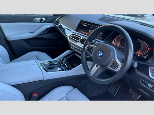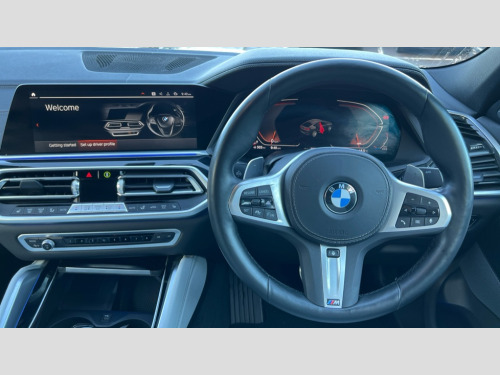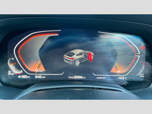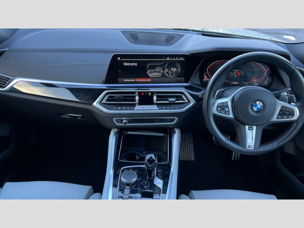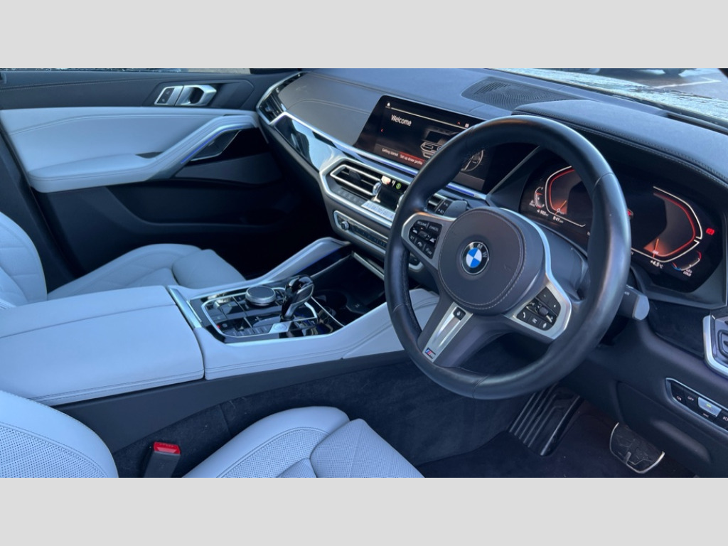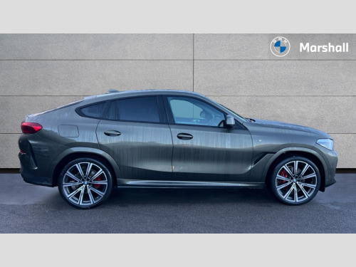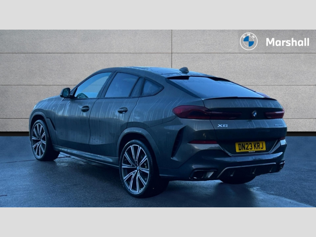BMW X6 xDrive30d MHT M Sport 5dr Step Auto 50GB hard disc drive (HDD) memory, Active guard plus, Attentiveness assist, Automatic tailgate two part with top hinged section open and manual bottom hinged section, BMW ConnectedDrive online services, BMW digital live cockpit professional - 12.3" digital instrument panel and 12.3" CID, with touch/voice command, BMW legal emergency call, BMW Teleservices, Brake force display, Brake pad wear indicator warning light, Enhanced bluetooth with wireless charging, Front/rear park distance control (PDC), iDrive controller with shortcut buttons, Lights on warning, Oil sensor for level and grade, On board computer inc. average speed, fuel consumption, liquid crystal Info display, journey computer, outside temperature display, personal profile, Service interval indicator, Speed limit info display, Speed limiting function, Wifi hotspot preparation, 48V Mild hybrid technology, Diesel particulate filter, Double wishbone front axle, Drive performance control with ECO PRO comfort + sport mode, Eight speed steptronic sport automatic transmission and gearshift paddles on the steering wheel, M xDrive system, Safety battery terminal clamp, Variable vane geometry, DAB Tuner enables digital radio reception, Favourite buttons, USB connection, USB type A 1.5A in cupholder, USB Type C 3A in centre armrest, Active Air Stream kidney grille with high-gloss chrome, Adaptive air flap control bar in high-gloss black, Automatically dimming rear view mirror, BMW individual exterior line aluminium satinated window frame and window guide rail in front door/pillar trim/door mirrors in high gloss black, Body colour bumpers, Body colour door handles, Dynamic brake lights with LED technology, Exhaust tailpipes - single, left and right with Chrome finisher, Follow me home headlight function, Front and rear electric windows with open and close fingertip control, anti trap facility and comfort closing, Heated windscreen washer jets, High beam assistant, High gloss black outer and central air intakes on front bumper with pearlescent chrome finish, High gloss black Side elements, LED daytime running lights, LED rear lights, M aerodynamic body styling, M designation on left and right front side panels, M Sport exhaust system, Rain sensor with automatic headlight activation and windscreen wiper control, Rear side wing doors, Satin aluminium side window graphic, Third brake light in rear spoiler, Welcome light carpet, X6 on left tailgate, xDrive designation on right tailgate, 12V - Power sockets with 2x centre console and 1x luggage compartment, 3 seat bench in 2nd row, 40:20:40 split folding rear seats, Centre and rear interior light, Child seat ISOFIX attachment with rear outer seats includes top tether, Compartment in front of cupholder, Electrical steering column with adjustable height and length with activation and control on the steering column, Foldable rear centre armrest with 2 cupholders and storage compartment, Front and rear cupholders x 2, Front and rear door pockets, Front and rear door sill inlays with illuminated BMW M designation, Front and rear side armrest integrated into door trim, Front reading lights, Light inside glove compartment, Lockable glove compartment, Luggage compartment floor panel with integral storage tray, Luggage compartment lighting, M specific key, M sport leather steering wheel, Make-up mirror lights, Multifunction controls for leather steering wheel, Multifunctional hooks, Rear head restraints, Seat back with flap pocket, Single front passenger seat, Storage tray and compartment with cover in centre console, Sunvisors with illuminated vanity mirrors, Toolkit located in luggage compartment, Velour floormats, Ambient light interior pack - X6, Connected Package Professional - X6, Expanded exterior mirror pack with electric folding door mirror - X6, Non-smokers pack - X6, 3 rear seatbelts, Airbags - driver/front passenger, rear and side, first and second row seats head airbags, front passenger seat airbag deactivation + knee airbag, Anti-lock braking system (ABS), Automatic Stability Control (ASC), Brake drying, Brake energy regeneration, Brake fade compensation, Braking pre-tensioning, Child proof locking system in rear door, Cornering brake control (CBC), Crash sensor activating central locking release, hazard warning lights, fuel cut off, interior lighting + activation of safety battery terminal clamp, Deformation zones - front and rear with door reinforcements and bumpers up to 2.5 mph, DSC - Dynamic Stability Control, Dynamic brake control, Dynamic Traction Control - DTC, Electromechanical parking brake with automatic drive away release and auto hold function, Electronic brake force distribution, Front and rear brake discs with interior ventilation, Front and rear seatbelts with seatbelt stopper, seatbelt tensioner for front and outer rear seats and belt force limiter, Front head restraints with anti-whiplash, Hill start assistant, Integrated brake system, M Sport braking system, Mechanical child proof lock on rear doors, Passive protection for pedestrians, Seat occupancy detection for driver and passenger side, Side impact protection, Two tone horn, Tyre pressure monitoring system, Warning triangle and first aid kit, Closing system with central locking, Driver and front passenger door centre lock switch, Locking wheel bolts, Thatcham 1 alarm system with remote control and engine immobiliser, Start/stop toggle diamond shaped trim finisher in pearl chrome, Run flat tyres