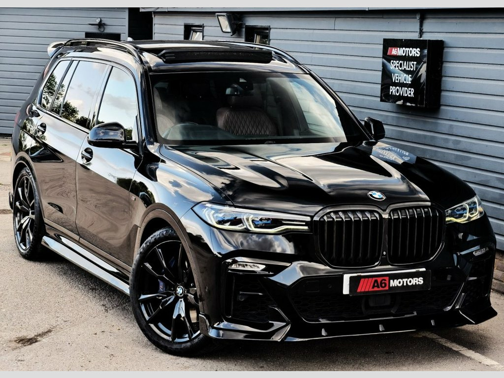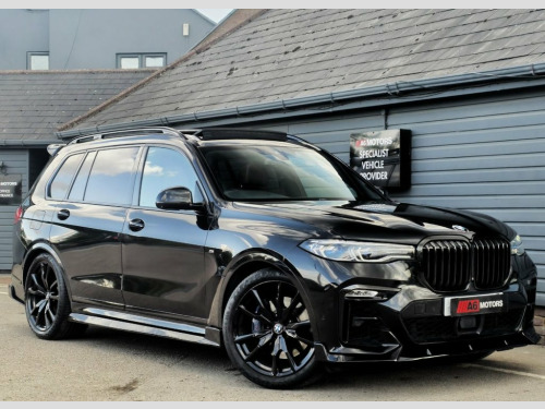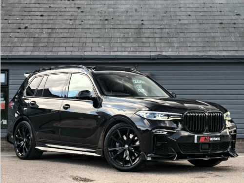 SAME DAY FINANCE AVAILABLE WITH £0 DEPOSIT. CALL OUR FINANCE TEAM FOR A QUOTATION TODAY. REQUEST A PERSONALISED VIDEO TODAY. STUNNING BMW X7 30D M SPORT WITH JUST 2 OWNERS FROM NEW BOASTING A FULL SERVICE HISTORY & COMPLIMENTED BY A GOOD FACTORY SPEC. THIS LOVELY EXAMPLE IS SUPPLIED HPI CLEAR & WITH A NATIONWIDE WARRANTY. FURTHER BENEFITING FROM HAVING A BODYKIT FITTED. DRIVES WELL., LOOKS THE PART. Ultimate Package, Panorama Glass Roof Sky Lounge, 1 x USB A 1.5A in Cupholder - 1 x USB C , 20GB Hard Disc Drive HDD Memory, 21in Alloy Wheels - M Light Double Spoke, 7-Seat in 2+3+2 Configuration, Acoustic Glazing, Active Air Stream Kidney Grille - High-G, Active Guard Plus, Active Protection, Adaptive 2-Axle Air Suspension, Air Conditioning - Automatic with Four Z, Airbags, Alarm System - Thatcham 1 with Remote Co, Ambient Lighting, Armrests, Attentiveness Assistant, Automatic Start-Stop Button, BMW Connected Package Professional, BMW ConnectedDrive Services, BMW Display Key, BMW Individual Headliner Alcantara Anthr, BMW Individual High-Gloss Shadowline, BMW Individual Instrument Panel Fin