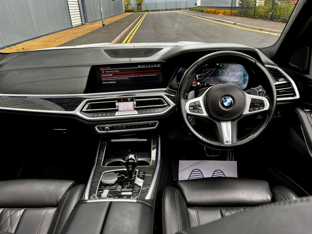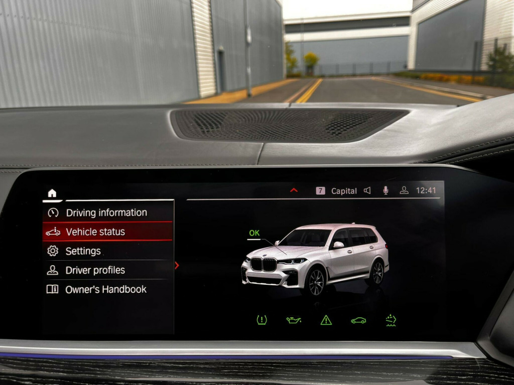 3 MONTH WARRANTY ON PARTS AND LABOUR, M PERFORMANCE CARBON KIT, FULL PANORAMIC GLASS SLIDING ROOF, 360 CAMERAS, GESTURE CONTROL, HEATED LEATHER SPORT SEATS, APPLE CAR PLAY, ANDROID AUTO, DAB RADIO, BLUETOOTH, USB PORT, WIRELESS CHARGER, REVERSING CAMERA, FRONT & REAR PARKING SENSORS, HARMON KARDON SOUND SYSTEM, COLLISION PACK, LANE ASSIST, HEADS UP DISPLAY, FULL ELECTRIC WINDOWS & FOLDING MIRRORS, ELECTRIC + MEMORY SPORT SEATS, DRL LED PACK, XENONS, HIGH BEAM ASSIST, 22'' ALLOYS, ELECTRIC BOOT, AIR SUSPENSION, 7 SEATER, AUTO LIGHTS, AUTO WIPERS, CRUISE CONTROL, VOICE CONTROL, AMBIENT LIGHTING, AUTO HOLD, FULL ELECTRIC WINDOWS & FOLDING MIRRORS, SAT NAV, VIRTUAL COCKPIT DASH, PRIVACY GLASS, 2 KEYS & MUCH MORE, HPI CLEAR, DRIVES BRILLIANT, LONG MOT, READY TO GO, PARTS AND LABOUR NATIONWIDE WARRANTY, 5 DAYS DRIVE AWAY INSURANCE, CALL US TO ARRANGE DELIVERY, ANY INSPECTIONS ARE WELCOME, PART EX WELCOME. 1 x USB A 1.5A in Cupholder - 1 x USB C 3A in Centre Armrest and 1 x Double USB C 3A in Rear End of Console for 2nd Seat Row, 20GB Hard Disc Drive HDD Memory, 21in Alloy Wheels - M Light Double Spoke Style 754M Bicolour, 7-Seat in 2+3+2 Configuration, Acoustic Glazing, Active Air Stream Kidney Grille - High-Gloss Chrome, Active Guard Plus, Active Protection, Adaptive 2-Axle Air Suspension, Air Conditioning - Automatic with Four Zone Control, Airbags, Alarm System - Thatcham 1 with Remote Control and Engine Immobiliser, Ambient Lighting, Armrests, Attentiveness Assistant, Automatic Start-Stop Button, BMW Connected Package Professional, BMW ConnectedDrive Services, BMW Individual Headliner Alcantara Anthracite, BMW Individual High-Gloss Shadowline, BMW Individual Instrument Panel Finished in Leather, BMW Individual Roof Rails High-Gloss Shadow Line, BMW Legal Emergency Call, BMW Live Cockpit Professional, Brake Force Display, Brake System, Brake-Pad Wear Indicator, Centre Lock Switch - Driver and Front Passenger Door, Child Seat ISOFIX Attachment - Rear Outer Seats in 2nd Row and Both Seats in 3rd Row - includes Top Tether, Closing System with Central Locking, Comfort Access System, Comfort Cushion, Comfort Seats - Front - Electrically Adjustable, Compartment in Front of Cupholder, Crash Sensor and Safety Battery Terminal Clamp, Cruise Control with Brake Function, Cup Holders - Front x2 and Rear x2, DAB Tuner, DSC - Dynamic Stability Control - Stabilises the Vehicle in Extreme Situations - Controls Traction, Daytime Running Lights - LED, Door Pockets - Front and Rear, Door Sill Finishers - M Designation, Door Sill Inlays - BMW M Designation Illuminated, Double-Wishbone Front Axle, Drive Performance Control - ECO PRO - Comfort - Sport and Adaptive Modes, Drive Recorder, Dynamic Brake Lights with LED Technology, EPS - Electric Power Steering with Servotronic, Eight-Speed Automatic with Steptronic Transimission, Electric Front Seat Adjustment with Driver Memory, Electric Windows - Front and Rear, Electrical Steering Column with Adjustable Height and Length, Electro-Mechanical Parking Brake with Automatic Drive-Away Release and Auto-Hold Function, Exhaust Tailpipes - Single - Left and Right - Chrome, Expanded Exterior Mirror Package, Exterior Mirror Housing - Body Colour, Exterior Trim - High-Gloss Shadowline, Favourite Buttons, Floor Mats - Velour, Follow Me Home Headlight Function, Footwell Lights - Front, Galvanic Embellisher for Controls, Gesture Control, Grab Handles, Headlights - Adaptive LED, Headrests - All Seats, HiFi Loudspeaker System, High-Beam Assistant, Instrument Panel in Sensatec, Interior Light - Rear Centre, Interior Mirror - Frameless, Interior Trim - Fineline Black Wood - High-Gloss with Metal Effect, LED Fog Lights, LED Rear Lights, LED Third Brake Light - Spoiler, Light Inside Glove Compartment, Lockable Glove Compartment, Locking Wheel Bolts - Thatcham Approved, Luggage Compartment Floor Panel with Integral Storage Tray, Luggage Compartment Package, M Aerodynamics Package, M Designation on Front Side Panels - Left and Right, M Leather Steering Wheel, M Specific Key, M Specific Pedals, M Specific Steering Wheel, M Sport Braking System, M Sport Package, M Vehicle Key, Make-Up Mirror Lights, Mechanical Childproof Lock - Rear Doors, Microfilter and Active Carbon Filter, Multi-Function Controls for Leather Steering Wheel, Multifunctional Hooks, OBC - On-Board Computer, Oil Sensor For Level and Grade, PDC - Park Distance Control - Front and Rear, Panoramic Glass Sunroof, Parking Assistant Plus, Passive Protection for Pedestrians, Power Sockets 12v - 2x Centre Console - 1x Luggage Compartment, Rain Sensor with Automatic Headlight Activation and Windscreen Wiper Control, Reading Lights - Front, Run Flat Tyres, Seat Back with Flap Pocket, Seat Heating - Front and Rear, Seat Occupancy Detection for Driver and Passenger Side, Side Impact Protection, Soft Close Doors, Speed Limiting Function, Split Folding 2nd Row Seating. Full dealership history