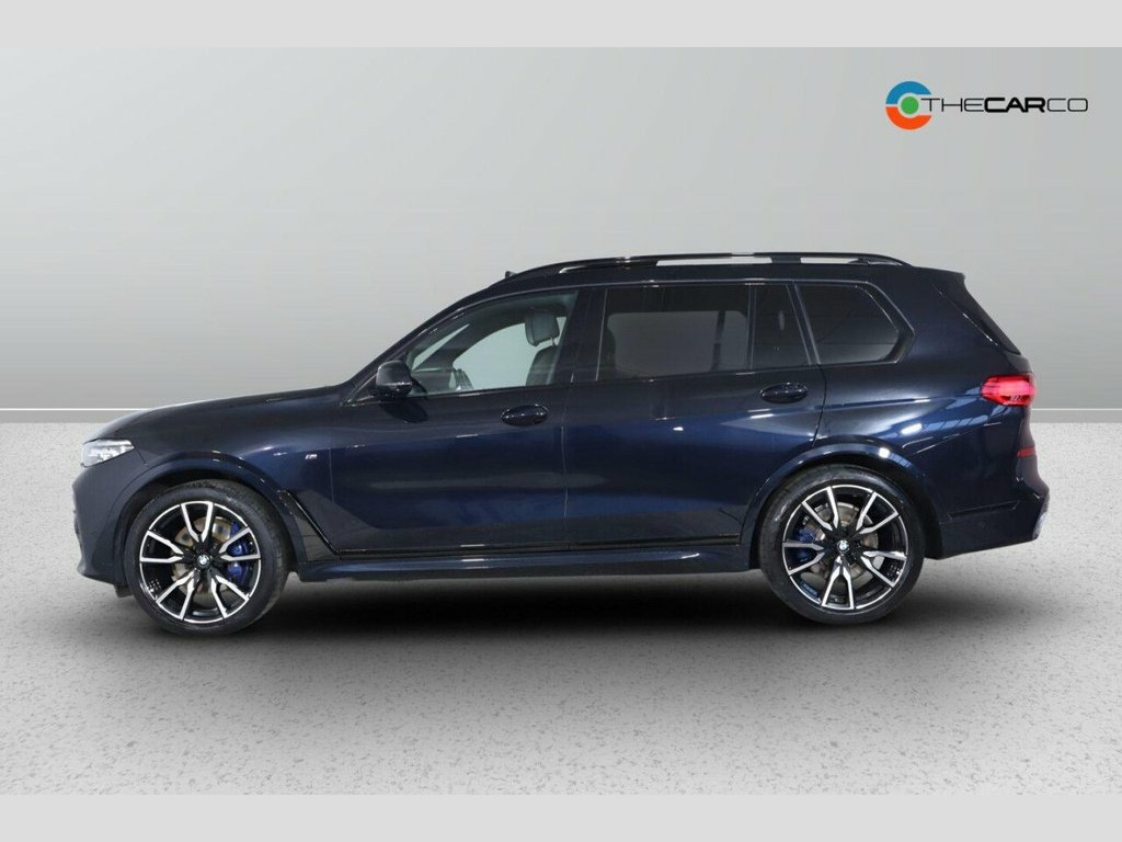 With only one owner and remarkably low mileage for its age, this 2021 BMW X7 40d M Sport presents an exceptional find. This impressive seven seater boasts a powerful 3.0L Diesel Hybrid engine paired with Four Wheel Drive, ensuring a confident and capable drive. As a Euro 6 compliant vehicle, it meets stringent emission standards, and its substantial towing weight of 2200 kg offers great versatility. The M Sport trim, enhanced by the M Sport Pro Package, provides a dynamic aesthetic and driving experience. Inside, you'll appreciate the convenience of the Comfort Access System for keyless entry and the luxurious touch of heated seats for both front and rear occupants. The BMW Head Up Display keeps essential information in your line of sight, while the Harman Kardon loudspeaker system delivers an immersive audio experience. With a swift 0-62mph acceleration in just 6.1 seconds, this X7 offers performance that stands out from similar vehicles. Furthermore, the generous boot space ensures practicality for all your needs, making this a truly well rounded and desirable SUV. 1 x USB A 1.5A in Cupholder - 1 x USB C , 20GB Hard Disc Drive HDD Memory, 21in Alloy Wheels - M Light Double Spoke, 7-Seat in 2 - 3 - 2 Configuration, Active Air Stream Kidney Grille - High-G, Active Guard Plus, Active Protection, Air Conditioning - Automatic with Four Z, Airbags, Alarm System - Thatcham 1 with Remote Co, Ambient Lighting, Armrests, Attentiveness Assistant, Automatic Start-Stop Button, BMW Connected Package Professional, BMW ConnectedDrive Services, BMW Head-Up Display, BMW Individual High-Gloss Shadowline, BMW Live Cockpit Professional, Brake Force Display, Brake System, Brake-Pad Wear Indicator, Centre Lock Switch - Driver and Front Pa, Child Seat ISOFIX Attachment - Rear