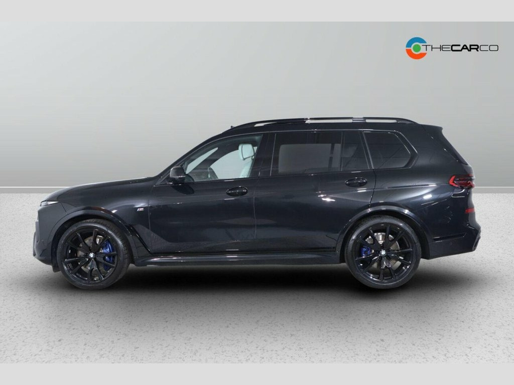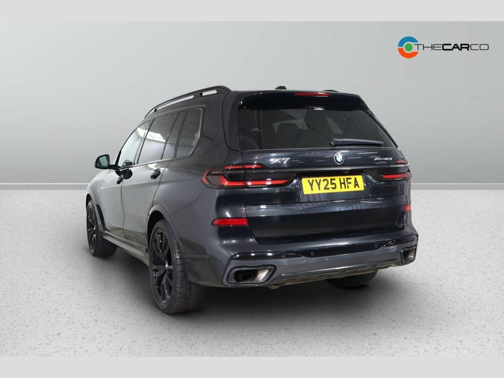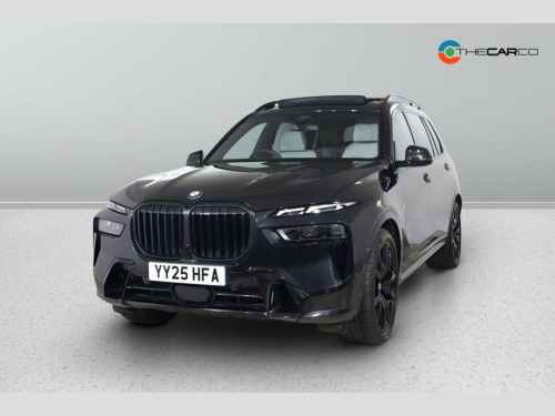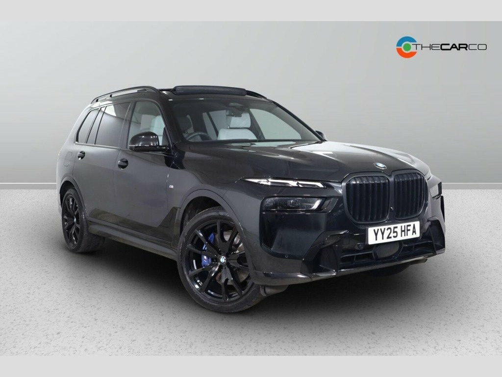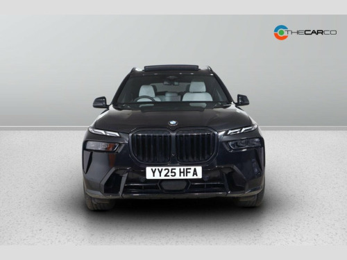 This 2025 BMW X7 40d M Sport is a superb example, having had only one owner since new. This impressive seven seater boasts a powerful 3.0L Diesel Hybrid engine paired with a Four Wheel Drive system, ensuring capability in all conditions. As a Euro 6 compliant vehicle, it meets stringent emission standards. The M Sport trim enhances its dynamic appeal, and the inclusion of the Skylounge Pack, Carbon Fibre interior trim, and Crafted Clarity Controls offer a touch of refined luxury. Practicality is also key, with a substantial towing weight of 2700 kg and a convenient Wireless Charging Tray. Experience the exceptional performance of this X7, which accelerates from 0 to 62mph in a swift 5.9 seconds, demonstrating its potent capabilities. The BMW Live Cockpit Professional, complete with a Head-Up Display, Bluetooth connectivity, and the Head Up Display itself, provides a seamless and informative driving experience. These features collectively highlight how this particular X7 offers a superior combination of performance, luxury, and advanced technology compared to other vehicles in its class. Acoustic Glass, Active Protection, Additional Storage Compartment, Air Conditioning - Automatic with Four Z, Airbags, Alarm, Ambient Lighting, Armrests, Attentiveness Assistant, Automatic Tailgate Operation, BMW Connected Package Professional, BMW Emergency Call, BMW Live Cockpit Professional with Head-, BMW TeleServices, BMW xDrive, Brake System, Central Locking - Remote, Comfort Access, Condition Based Service, Cruise Control, DAB Digital Radio, Drive Recorder, Driving Experience Switch, Electric Memory Seats, Exterior Items, Exterior Lighting, Exterior Trim - High-Gloss Shadowline, Floor Mats, Folding Side Mirrors with Auto-Dimming, Front Comfort Seats, Front and Rear Air Suspension, Gest
