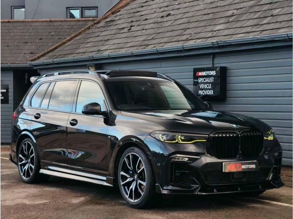 SAME DAY FINANCE AVAILABLE WITH £0 DEPOSIT. CALL OUR FINANCE TEA FOR A QUOTATION TODAY. REQUEST A PERSONALISED VIDEO TODAY. STUNNING BMW X7 40D M SPORT WITH A GREAT FACTORY SPEC & COMPLIMENTED BY A BODYKIT FITTED. LOOKS THE PART & STANDS OUT FROM THE CROWD. SUPPLIED HPI CLEAR & WITH A NATIONWIDE WARRANTY. GOOD CONDITION THROUG OUT. 1 x USB A 1.5A in Cupholder - 1 x USB C , 20GB Hard Disc Drive HDD Memory, 21in Alloy Wheels - M Light Double Spoke, 7-Seat in 2 - 3 - 2 Configuration, Acoustic Glazing, Active Air Stream Kidney Grille - High-G, Active Guard Plus, Active Protection, Adaptive 2-Axle Air Suspension, Air Conditioning - Automatic with Four Z, Airbags, Alarm System - Thatcham 1 with Remote Co, Ambient Lighting, Armrests, Attentiveness Assistant, Automatic Start-Stop Button, BMW Connected Package Professional, BMW ConnectedDrive Services, BMW Head-Up Display, BMW Individual Headliner Alcantara Anthr, BMW Individual High-Gloss Shadowline, BMW Individual Instrument Panel Finished, BMW Individual Roof Rails High-Glos