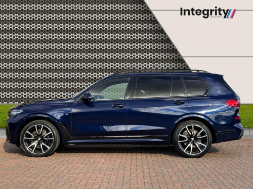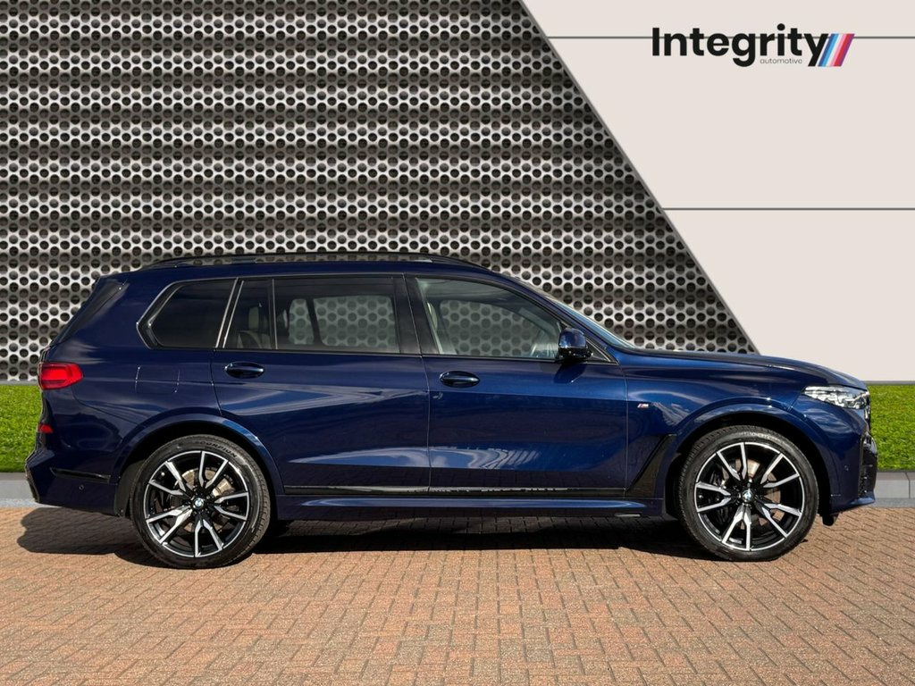 Experience refined power and luxury in this 2021 BMW X7 3.0 XDrive 40d MHT M Sport SUV, finished in striking Tanzanite Blue with the exceptional BMW Individual Full Merino Leather interior in Ivory White and Night Blue (£4,995 optional extra). Having covered 72,087 miles and maintained a fantastic BMW service history (last serviced at 67,800 miles), this X7 is a superbly looked-after example that combines practicality, performance, and premium quality in one of BMW's most accomplished luxury SUVs. Under the bonnet lies BMW's efficient 3.0-litre B57 diesel engine with mild-hybrid (MHT) technology, producing around 340 bhp and 700 Nm of torque. The hybrid system assists with smooth acceleration and improved efficiency, seamlessly switching off the engine when coasting to save fuel. As noted by Team-BHP, the system "reactivates the engine with minimal vibration," making for a refined and effortless driving experience. This setup delivers the strong performance expected of a BMW while maintaining impressive economy for a full-size luxury SUV. Despite its commanding size, the X7's driving dynamics are remarkably composed. Driven.site praised it, stating that "despite its size, the X7 doesn't feel intimidating to drive… parking and manoeuvring through tight spots is straightforward and comparable to a car of half its size." BMW's xDrive all-wheel-drive system and adaptive suspension ensure the X7 feels planted and confide 1 x USB A 1.5A in Cupholder - 1 x USB C , 20GB Hard Disc Drive HDD Memory, 21in Alloy Wheels - M Light Double Spoke, 22in Alloy Wheels - M Light V-Spoke Styl, 7-Seat in 2 - 3 - 2 Configuration, Acoustic Glazing, Active Air Stream Kidney Grille - High-G, Active Guard Plus, Active Protection, Adaptive 2-Axle Air Suspension, Air Conditioning - Automatic with Four Z, Airbags, Alarm System - Thatcham 1 with Remote Co, Ambient Lighting, Armrests, Attentiveness Assistant, Automatic Start-Stop Button, BMW Connected Package Professional, BMW ConnectedDrive Services, BMW Head-Up Display, BMW Individual Full Leather Trim Merino , BMW Individual Headliner Alcantara Anthr, BMW Individual High-Gloss Shado
