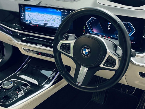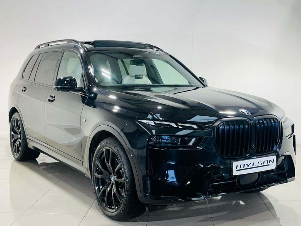 BMW X7 3.0 40d MHT M Sport SUV 5dr Diesel Hybrid Auto xDrive Euro 6 (s/s) (352 ps) Registration: YY72SFO | 30,000 miles | Service History | Black Sapphire Metallic A commanding and luxurious BMW X7 40d MHT M Sport offering exceptional performance, advanced mild-hybrid efficiency and outstanding comfort. Powered by the powerful 3.0 litre diesel mild-hybrid engine producing 352 ps and paired with a smooth automatic gearbox and BMW's xDrive all-wheel-drive system, this X7 delivers effortless performance with impressive refinement. Fully Euro 6 compliant and ULEZ friendly. Key Features 3.0 litre diesel mild-hybrid engine producing 352 ps Automatic transmission xDrive intelligent all-wheel drive M Sport styling and interior enhancements Drive mode select Large touchscreen infotainment system with navigation Bluetooth and media connectivity Dual zone climate control Sport seats and M Sport steering wheel LED headlights Spacious and luxurious full-size SUV layout Optional Equipment BMW Individual Piano Black interior trim M Sport Pro Pack Sky Lounge panoramic glass sunroof Sun protection glazing Warranty Warranty packages available for additional cost. HPI & Finance HPI clear. Finance available with flexible packages. Part exchange welcome. Dealer Statement Nationwide delivery available. Get in touch for a walk-around video, test drive or more information. *Preparation fee £199 added to the list price of the vehicle. The BMW X7 sits at the top of BMW's SUV 21in Alloy Wheels - M Double-Spoke Bicol, Acoustic Glass, Active Protection, Additional Storage Compartment, Air Conditioning - Automatic with Four Z, Airbags, Alarm, Ambient Lighting, Armrests, Attentiveness Assistant, Automatic Start-Stop Button, Automatic Tailgate Operation, BMW Connected Package Professional, BMW ConnectedDrive Services, BMW Emergency Call, BMW Live Cockpit Professional with Head-, BMW TeleServices, BMW xDrive, Brake System, Central Locking - Remote, Comfort Access, Condition Based Service, Cruise Control, DAB Digital Radio, Drive Recorder, Driving Experience Switch, EPS - Electric Power Steering with Servo, Electric Memory Seats, Electric Windows - Front and Rear, Exter
