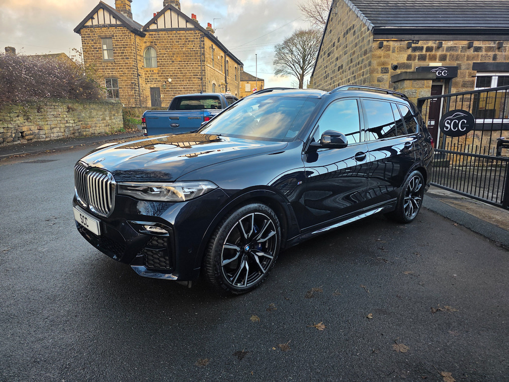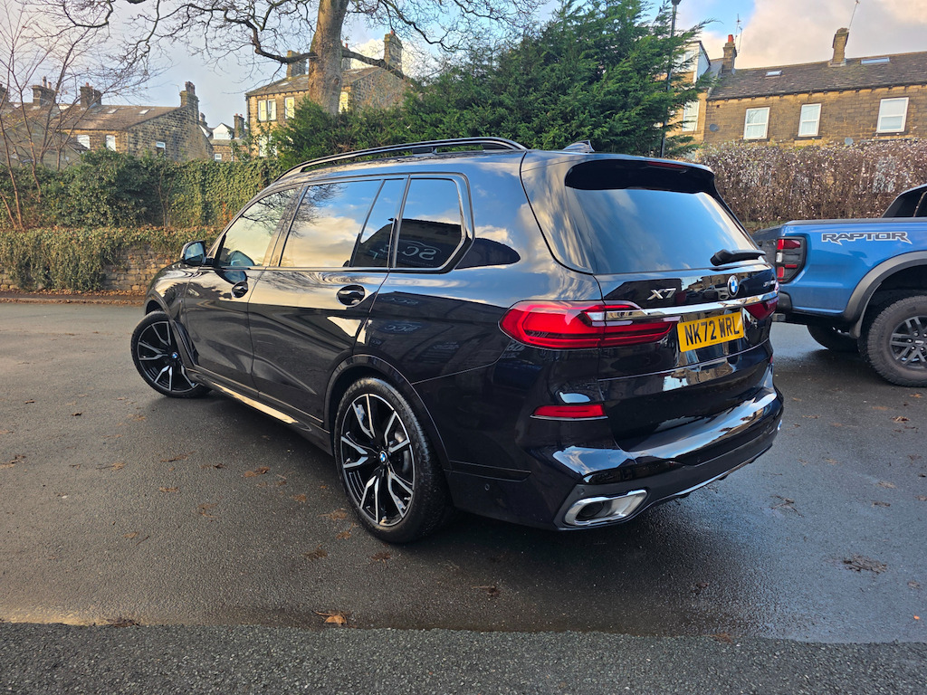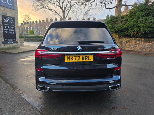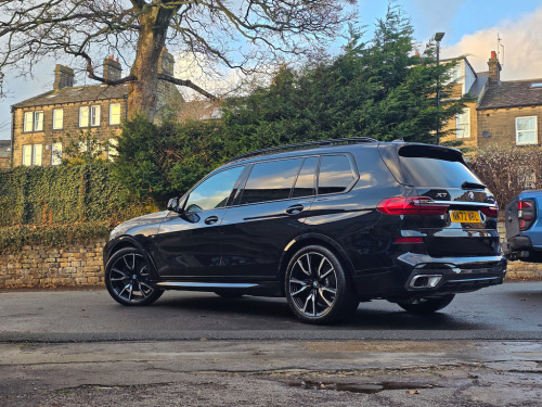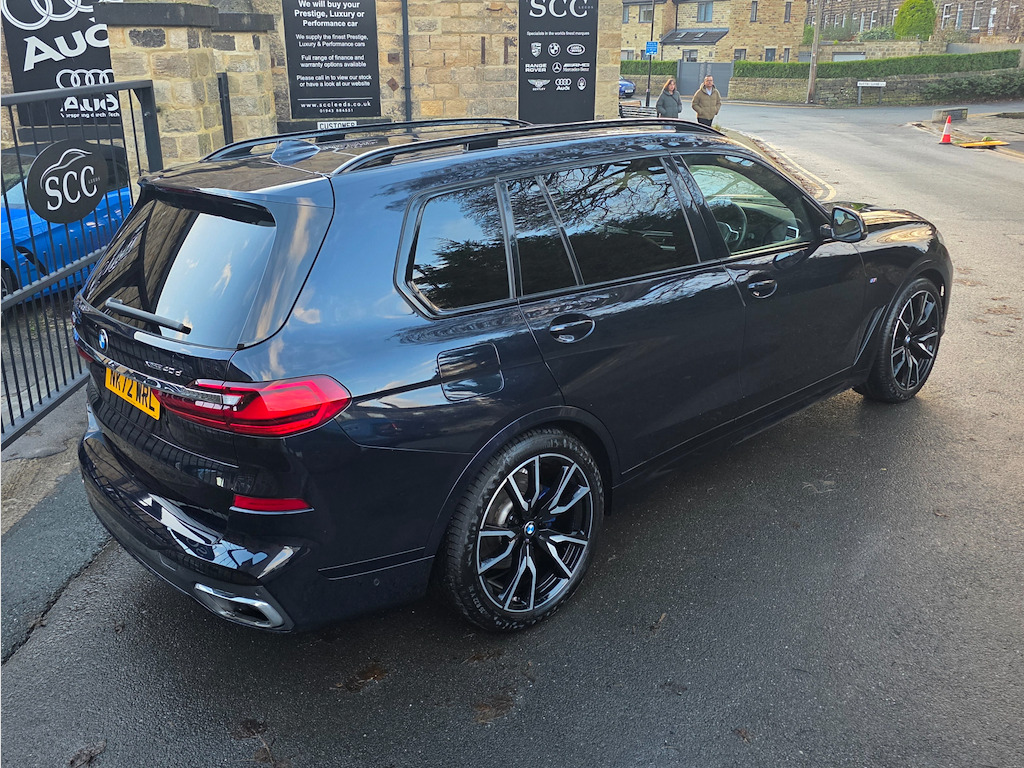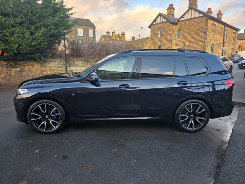 Experience unmatched luxury and performance with this huge spec 1 owner BMW X7, live priced at £61,495. Finished in striking Carbon Black, this exceptional SUV combines the power of a 3.0L diesel/electric hybrid engine with 335 BHP, delivering commanding performance and effortless driving dynamics. With both front and rear axle air suspension this car drives softly on even the worst of the roads. 1 owner and full BMW main dealer history file. Supplied new and serviced by original supplying dealer. pdi 7/2022, 1st service 6/2024, 2nd 06/2025 at 11562 miles. Next due 06/2026 or in 11,000 miles. This X7 is equipped with the Technology Plus Package, bringing advanced convenience, connectivity, and safety features to enhance every journey. Highlights include: BMW Live Cockpit Professional with a fully digital, high-resolution instrument cluster and central touchscreen display, keeping all essential information at your fingertips. Head-Up Display, projecting speed, navigation, and driver-assistance alerts directly onto the windscreen for safer, more focused driving. Driving Assistant Professional, which includes lane-keeping assist, Active Cruise Control with stop & go, and other safety systems to make every drive more relaxed and secure. Parking Assistant Plus, providing 3D surround-view cameras, remote parking, and guidance for easy manoeuvring in tight spaces. Complementing this, the M Sport Pro Package adds a sportier, more dynamic edge to the X7’s driving experience and appearance: M Sport Suspension and Adaptive M Steering, delivering sharper handling, more responsive steering, and improved agility. M Sport Exterior Design elements, including more aggressive bumpers, aerodynamic enhancements, and unique detailing for a commanding road presence. Sporty interior touches, such as M-branded door sills, steering wheel, and trim accents, elevating the cabin’s performance-focused feel. The exterior is further enhanced by 22-inch alloy wheels in Jet Black Metallic with Diamond-Turned Faced Finish, giving the X7 a bold, striking stance while improving handling and road presence. Inside, the luxurious Bowers & Wilkins Diamond Surround Sound System delivers immersive audio quality, while the Sky Lounge Panoramic Glass Sunroof floods the cabin with natural light, creating a sense of openness and sophistication. Safety and driver confidence are further enhanced with Active Guard Plus and the Attentiveness Assistant, monitoring driver fatigue and providing alerts when needed. This BMW X7 is the perfect combination of luxury, performance, technology, and sporty design — a truly exceptional SUV. Don’t miss the opportunity to own this premium BMW X7. Book a test drive today or call 01943 884551. 1 x USB A 1.5A in Cupholder - 1 x USB C 3A in Centre Armrest and 1 x Double USB C 3A in Rear End of Console for 2nd Seat Row,20GB Hard Disc Drive HDD Memory,21in Alloy Wheels - M Light Double Spoke Style 754M Bicolour,7-Seat in 2 - 3 - 2 Configuration,Acoustic Glass,Active Air Stream Kidney Grille - High-Gloss Chrome,Active Guard Plus,Active Protection,Additional Storage Compartment,Air Conditioning - Automatic with Four Zone Control,Airbags,Alarm System - Thatcham 1 with Remote Control and Engine Immobiliser,Ambient Lighting,Armrests,Attentiveness Assistant,Automatic Start-Stop Button,BMW Connected Package Professional,BMW ConnectedDrive Services,BMW Emergency Call,BMW Head-Up Display,BMW Individual High-Gloss Shadowline,BMW Live Cockpit Professional,BMW TeleServices,Brake Force Display,Brake System,Brake-Pad Wear Indicator,Centre Lock Switch - Driver and Front Passenger Door,Child Seat ISOFIX Attachment - Rear Outer Seats in 2nd Row and Both Seats in 3rd Row - includes Top Tether,Closing System with Central Locking,Comfort Access,Comfort Cushion,Compartment in Front of Cupholder,Crash Sensor and Safety Battery Terminal Clamp,Cruise Control with Brake Function,Cup Holders - Front x2 and Rear x2,DAB Digital Radio,DSC - Dynamic Stability Control - Stabilises the Vehicle in Extreme Situations - Controls Traction,Daytime Running Lights - LED,Door Pockets - Front and Rear,Door Sill Finishers - M Designation,Door Sill Inlays - BMW M Designation Illuminated,Double-Wishbone Front Axle,Drive Performance Control - ECO PRO - Comfort - Sport and Adaptive Modes,Drive Recorder,Dynamic Brake Lights with LED Technology,EPS - Electric Power Steering with Servotronic,Electric Memory Seats,Electric Windows - Front and Rear,Electrical Steering Column with Adjustable Height and Length,Electro-Mechanical Parking Brake with Automatic Drive-Away Release and Auto-Hold Function,Exhaust Tailpipes - Single - Left and Right - Chrome,Expanded Exterior Mirror Package,Exterior Mirror Housing - Body Colour,Exterior Trim - High-Gloss Shadowline,Favourite Buttons,Floor Mats - Velour,Folding Side Mirrors with Auto-Dimming,Follow Me Home Headlight Function,Footwell Lights - Front,Front Comfort Seats,Front and Rear Air Suspension,Galvanic Embellisher for Controls,Gesture Control,Grab Handles,Headlights - Adaptive LED,Headlining - Anthracite Alcantara,Headrests - All Seats,HiFi Loudspeaker System,High-Beam Assistant,Instrument Panel in Sensatec,Interior Light - Rear Centre,Interior Mirror - Frameless,Interior Trim - Fineline Black Wood with Metal Effect,LED Fog Lights,LED Rear Lights,LED Third Brake Light - Spoiler,Leather Dashboard,Light Inside Glove Compartment,Lockable Glove Compartment,Locking Wheel Bolts - Thatcham Approved,Luggage Compartment Floor Panel with Integral Storage Tray,M Designation on Front Side Panels - Left and Right,M Specific Key,M Specific Pedals,M Specific Steering Wheel,M Sport Brakes with Blue Calipers,M Sport Braking System,M Sport Exterior Styling,M Sport Leather Steering Wheel,M Sport Package,Make-Up Mirror Lights,Mechanical Childproof Lock - Rear Doors,Microfilter and Active Carbon Filter,Multifunctional Hooks,OBC - On-Board Computer,Oil Sensor For Level and Grade,PDC - Park Distance Control - Front and Rear,Pa