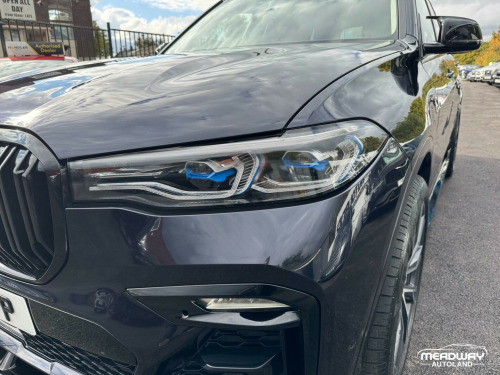 This 2022 BMW X7 M50i V8 is a remarkable example of luxury and performance, boasting a powerful 4.4 litre petrol engine and a sophisticated four wheel drive system. As a Euro 6 compliant vehicle, it offers impressive efficiency alongside its potent capabilities. This seven seater model, finished in a striking black with BMW Individual Full Leather Trim Merino, also features the desirable Comfort Plus Package, which includes independent rear air conditioning and a heated steering wheel for enhanced comfort. The unique Glass Application CraftedClarity adds a touch of refined elegance, while the Travel and Comfort System and the generous boot space ensure practicality for any journey.This vehicle has been given a Category S status - Damage was to the driver side front wing, wheel arch, front driver side corner, passenger side front door, these were all replaced. The vehicle comes with a 6 months warrantyThe MOT expires 08 Feb 2026The vehicle was serviced in July 2025 with two brand new front tyres and both front lower arms invoice in file. Road Tax Information - 6 months - (£107.25) 12 months (£195)Insurance Group 50EExperience exhilarating performance with the X7 M50i V8, capable of accelerating from 0 to 62mph in a swift 4.7 seconds, a testament to its V8 engine. This vehicle also offers a substantial towing weight of 2600 kg, making it a versatile choice for those who need to transport trailers or caravans. The inclusion of a 6 seater configuration within the Comfort Plus Package further enhances its adaptability, providing flexible seating arrangements for passengers. These carefully selected features and impressive performance figures clearly distinguish this BMW X7 from other vehicles in its class. mfort plus package, executive drive suspension, laserlights, towbar - electric, sky lounge panoramic glass sunroof, 6-seater, glass application - craftedclarity, bmw individual high-gloss shadowline with extended contents, 22in alloy wheels - bmw individual light y-spoke style 758, travel and comfort system, digital aftermarket - active cruise control, interior trim - ash grain black with bronze effect - open-pored, headlining - bmw individual alcantara, integral active steering, bmw individual full leather trim merino - black, 1 x usb a 1.5a in cupholder - 1 x usb c 3a in centre armrest and 1 x double usb c 3a in rear end of console for 2nd seat row, 20gb hard disc drive hdd memory, 22in alloy wheels - m light v-spoke style 755 m bicolour cerium grey, acoustic glass, active guard plus, active protection, additional storage compartment, air conditioning - automatic with four zone control, airbags, alarm system - thatcham 1 with remote control and engine immobiliser, ambient lighting, armrests, attentiveness assistant, automatic start-stop button, bmw connected package professional, bmw connecteddrive services, bmw emergency call, bmw head-up display, bmw individual high-gloss shadowline, bmw live cockpit professional, bmw teleservices, brake force display, brake system, brake-pad wear indicator, centre lock switch - driver and front passenger door, child seat isofix attachment - rear outer seats in 2nd row and both seats in 3rd row - includes top tether, cruise control with brake function, closing system with central locking, compartment in front of cupholder, comfort access, comfort cushion, crash sensor and safety battery terminal clamp, cup holders - front x2 and rear x2, dab digital radio, dsc - dynamic stability control - stabilises the vehicle in extreme situations - controls traction, daytime running lights - led, door pockets - front and rear, door sill inlays with illuminated m50i designation - front and rear, double-wishbone front axle, drive performance control - eco pro - comfort - sport and adaptive modes, drive recorder, dynamic brake lights with led technology, eps - electric power steering with servotronic, electric memory seats, electric windows - front and rear, electrical steering column with adjustable height and length, electro-mechanical parking brake with automatic drive-away release and auto-hold function, exhaust tailpipes - single - left and right - cerium grey, expanded exterior mirror package, exterior mirror housing - cerium grey, exterior trim - high-gloss shadowline, favourite buttons, floor mats - velour, folding side mirrors with auto-dimming, follow me home headlight function, footwell lights - front, front comfort seats, front and rear air suspension, galvanic embellisher for controls, gesture control, grab handles, headlights - adaptive led, headlining - anthracite alcantara, headrests - all seats, high-beam assistant, instrument panel in sensatec, interior light - rear centre, interior mirror - frameless, interior trim - fineline black wood with metal effect, kidney grille - cerium grey, led fog lights, led rear lights, led third brake light - spoiler, leather dashboard, light inside glove compartment, lockable glove compartment, locking wheel bolts - thatcham approved, luggage compartment floor panel with integral storage tray, m badge on left and right side panels - cerium grey, m designation on front side panels - left and right, m specific key, m specific pedals, m specific steering wheel, m sport brakes with blue calipers, m sport braking system, m sport differential, m sport exhaust system, m sport exterior styling, m sport leather steering wheel, m50i badge on tailgate - right - cerium grey, make-up mirror lights, mechanical childproof lock - rear doors, microfilter and active carbon filter, multifunctional hooks, obc - on-board computer, oil sensor for level and grade, pdc - park distance control - front and rear, panoramic glass sunroof, parking assistant plus, passive protection for pedestrians, power sockets 12v - 2x centre console - 1x luggage compartment, rain sensor with automatic headlight activation and windscreen wiper control, reading lights - front, roof rails - high-gloss shadowline, run flat tyres, seat back with flap pocket, seat 
