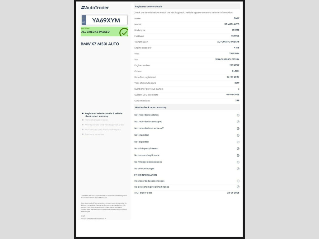 High spec BMW X7 4.4 M50i V8 xDrive, presented by Premium Vehicles, combining luxury, power, and commanding road presence. Its 4.4-litre twin-turbo V8 delivers smooth yet thrilling performance, complemented by refined M-Sport styling and a rare six-seat Captains Chair configuration. With exceptional comfort & advanced technology throughout, the X7 M50i stands as the pinnacle of BMW performance and prestige. ????Finance Made Simple, Bespoke finance packages available at competitive rates, tailored to your budget, with fast approval so you can enjoy your new car without delay. ????At a Glance, -Full BMW Dealer Service history - Last serviced at 31,282 miles (Oct 2025), -Will come with a full 12 Months MOT upon sale, -2 keys, -All four Pirelli tyres with plenty tread, -ULEZ compliant, -HPI clear, certificate available, -BMW WARRANTY until March 2027, ????️Specification Includes:, -Bowers & Wilkins Diamond Surround Sound System, -Massage Front Seats, -Ventilated/Cooled Front Seats, -Six-Seat Configuration (Captain Seats), -Height-Adjustable Adaptive Air Suspension, -Sky Lounge, -Head-Up Display, -Driving Assistant Professional (with Steering & Collision Assist), -Two-Tone Merino Leather Interior, -360° Surround View Camera, -Comfort Seats with Memory Function, -Heated Seats (All Three Rows), -BMW Laser Headlights, -Heated Steering Wheel, -Crystal Glass Gear Selector, -22 M Light Alloy Wheels, -Ambient Interior Lighting, -Apple CarPlay & Android Auto, -Heated & Cooled Cup Holders, -Electric Folding Third-Row Seats, -Automatic High-Beam Assist, -Auto-Folding Door Mirrors, For full specification, please view all images. Buy With Confidence:, ✅Proudly top-rated for 4 consecutive years, ✅FCA Authorised & Regulated, ✅Trusted AA Motor Dealer, ✅Complimentary warranty & 12 months AA breakdown cover, ✅No admin fees (£249 applies for third-party broker purchases only), ✅Video viewings & UK-wide home delivery, ⭐About Us, At Premium Vehicles, we are proud to be an award-winning????AA Motor Dealer. Our reputation is built on trust, professionalism, and delivering an exceptional experience, backed by industry recognition.