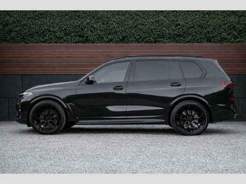 Stunning X7 in sapphire black metallic with luxurious ivory cream interior. The ultimate pack includes every possible option with main features detailed below. - 23 inch wide Stanced alloys with rare styling kit. - Bowers & Wilkins surround sound - Sky lounge panoramic roof - Crafted clarity gear selector and rotary knob - Adaptive cruise control & Driving assistance professional - Lazer lights - Carbon fibre dashboard & wing mirrors - Heated & cooled cup holders - Heated & cooled massage seats - Heated steering wheel - Head up display 22in Alloy Wheels - M Double-Spoke Bicol, Acoustic Glass, Active Protection, Additional Storage Compartment, Air Conditioning - Automatic with Four Z, Airbags, Alarm, Aluminium Running Boards, Ambient Lighting, Armrests, Attentiveness Assistant, Automatic Tailgate Operation, BMW Connected Package Professional, BMW ConnectedDrive Services, BMW Emergency Call, BMW Live Cockpit Professional with Head-, BMW TeleServices, BMW xDrive, Brake System, Central Locking - Remote, Comfort Access, Condition Based Service, Cruise Control, DAB Digital Radio, Drive Recorder, Driving Experience Switch, EPS - Electric Power Steering with Servo, Electric Memory Seats, Electric Windows - Front and Rear, Executiv