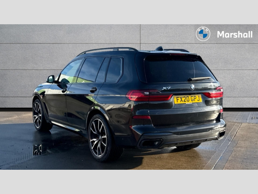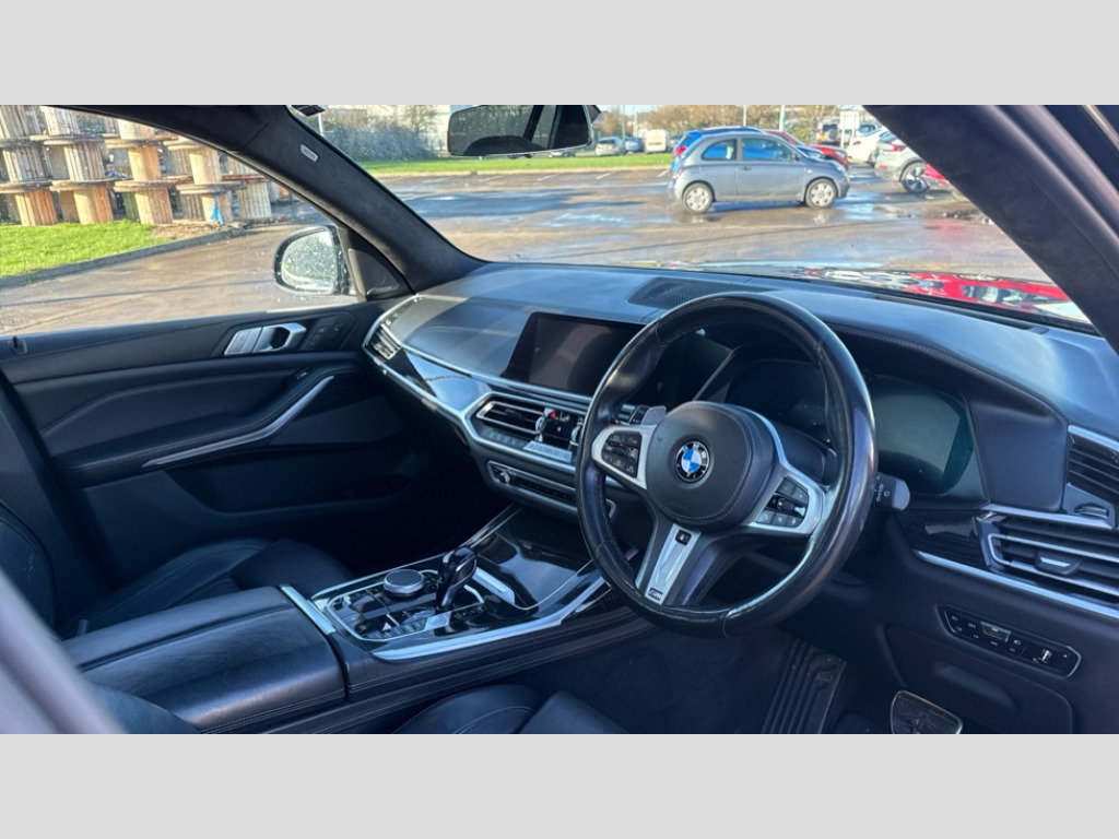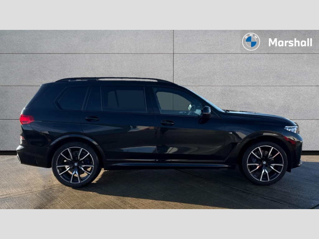 BMW X7 xDrive30d M Sport 5dr Step Auto 20GB hard disc drive (HDD) memory, Active guard plus, Attentiveness assist, Automatic tailgate operation, BMW digital live cockpit professional - 12.3" digital instrument panel and 12.3" CID + Intelligent personal assistant, BMW Drive recorder, BMW legal emergency call, BMW Online services, BMW Teleservices, Brake force display, Brake pad wear indicator warning light, Connected drive services, Enhanced bluetooth hands free facility with Telephony wireless charging, iDrive touch controller with shortcut buttons, Oil sensor for level and grade, On board computer inc. average speed, fuel consumption, liquid crystal Info display, journey computer, outside temperature display, personal profile, Parking assistant plus with reversing assistant, surround view system, review camera and active park distance control, Speed limiting function, Stop/start button, Wi-Fi hotspot, 8 speed automatic with steptronic transmission including launch control and gearshift paddles on the steering wheel, Adaptive 2-axle air suspension, Diesel particulate filter, Double wishbone front axle, Drive performance control with ECO PRO comfort + sport and adaptive mode, 1 x USB A 1.5A in cupholder, 1 x USB C 3A in centre armrest & 1 x double USB C 3A in rear end of console for 2nd seat row, DAB tuner, Favourite buttons, Gesture control for infotainment system, Acoustic glazing, Active Air Stream kidney grille with high-gloss chrome, Body colour mirror housing, Door sill finishers with M designation, Dynamic brake lights with LED technology, Exhaust tailpipes - single, left and right with M Sport-geometry Chrome finishers, Follow me home headlight function, Frameless interior mirror, Front and rear electric windows, Heated windscreen washer jets, High beam assist, LED daytime running lights, LED fog lights, LED rear lights, LED third brake light in rear spoiler, M aerodynamic bodystyling, M designation on left and right front side panels, Rain sensor with automatic headlight activation and windscreen wiper control, Welcome light carpet, X7 on left tailgate, xDrive and engine designation on right tailgate, 12V - Power sockets with 2x centre console and 1x luggage compartment, 3rd row seats, Ambient interior lighting with 6 pre-designed selectable lights including dynamic function, Centre console includes storage compartment, Compartment in front of cupholder, Electrical steering column with adjustable height and length with activation and control on the steering column, Foldable rear centre armrest with 2 cupholders and storage compartment, Front and rear cupholders x 2, Front and rear door pockets, Front and rear door sill inlays with illuminated BMW M designation, Front and rear seat heating, Front and rear side armrests integrated into door trim, Front footwell lights, Front reading lights, Grab handles, Headrests for all seats, Light inside glove compartment, Lockable glove compartment, Luggage compartment floor panel with integral storage tray, M leather steering wheel, M specific key, M specific steering wheel, Make-up mirror lights, Microfilter and active carbon filter, Multifunction controls for leather steering wheel, Multifunctional hooks, Rear centre interior light, Seat back with flap pocket, Soft close function for doors, Sunvisors with illuminated vanity mirrors, Toolkit located in luggage compartment, Velour floormats, Connected Package Professional - X7, Expanded exterior mirror pack - X7, Luggage compartment pack - X7, M aerodynamics pack - X7, Active protection, Airbags - driver, front passenger, front and side head airbags for first and second row seats knee airbag, Anti-lock braking system (ABS), Automatic Stability Control (ASC), Brake energy regeneration, Child seat ISOFIX attachment rear outer seats in 2nd row and both seats in 3rd row includes top tether, Comfort cushion, Crash sensor and Safety battery terminal clamp, DSC - Dynamic Stability Control, Dynamic Traction Control - DTC, Electromechanical parking brake with automatic drive away release and auto hold function, Front and rear brake discs with interior ventilation, M Sport braking system, Mechanical child proof lock on rear doors, Passive protection for pedestrians, Seat occupancy detection for driver and passenger side, Side impact protection, Split folding 2nd row seating with 40:20:40 configuration, Three point rear seat belts, Two tone horn, Tyre pressure monitoring system, Warning triangle and first aid kit, Closing system with central locking, Comfort access system, Driver and front passenger door centre lock switch, Locking wheel bolts, Thatcham 1 alarm system with remote control and engine immobiliser, Vehicle key with M specific designation, BMW Individual leather finished instrument panel, Galvanic embellisher for controls, Sensatec instrument panel