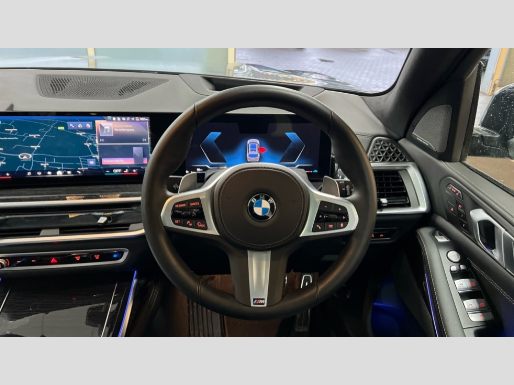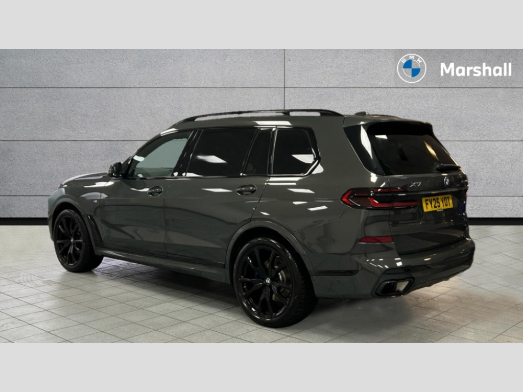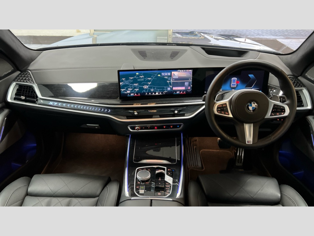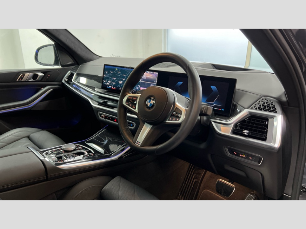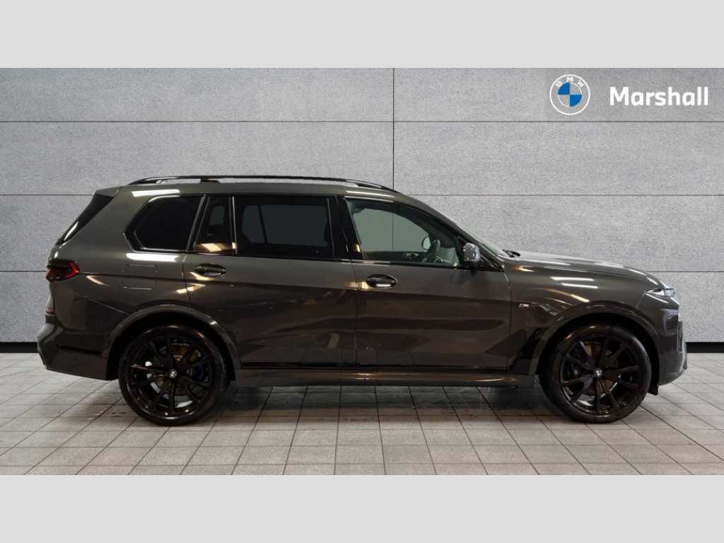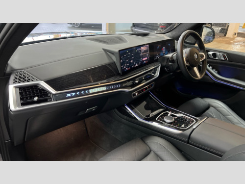 BMW X7 xDrive40d MHT M Sport 5dr Step Auto 2 rear USB-C ports, Attentiveness assist, Automatic start/stop function, Automatic tailgate operation, BMW ConnectedDrive online services, BMW Drive recorder, BMW gesture control, BMW Teleservices, Brake pad wear indicator in front and rear, Condition based service, Integrated owner's handbook, Live Cockpit Professional with head up display including 12.3" instrument cluster and 14.9" central display, Parking assistant pro including reversing assistant, PDC, lateral parking aid, reversing assist camera, parking drive off monitoring, 48V Mild hybrid technology, 8 speed automatic with steptronic transmission including automatic hold function and gearshift paddles on the steering wheel, Drive experience switch with comfort mode + ECO PRO + sport mode, Permanent all wheel drive, 2x Front USB (1x USB-C, 1x USB-A), DAB radio, Personal eSim, Acoustic glazing, Adaptive air flap control bars in high gloss black, Air breather and door claddings in high gloss chrome, Body coloured wheel arches, Dynamic brake lights with LED technology, Electrically adjustable and heated aspheric folding side mirrors with auto dimming, electric fold in function, automatic parking function, Exterior and central air inlets in front bumper painted pearl chrome, Follow me home headlight function, Frameless interior mirror, Front and rear electric windows, Heated windscreen washer nozzles, High beam assist, High gloss black shadow line roof rails, High gloss black shadowline trim in side/window frame, window recess cover, window guide, B and C pillar, mirror triangle, mirror base, mirror frame, Integrated turn indicators, LED daytime running lights, LED rear lights, LED third brake light in rear spoiler, Rain sensor with automatic headlight activation and windscreen wiper control, Rear side wing doors, Sump guard front and rear painted in silver, Trailer stabilisation logic, 12V - Power sockets with 2x centre console and 1x luggage compartment, 2 seat bench in 3rd row, 2x cupholders in front, rear centre armrest and two in third row seats, 3 seat bench in 2nd row, 3 spoke M leather multifunction steering wheel, 40:20:40 split folding rear seat backrests, Ambient lighting strip in the instrument panel with illuminated, Armrest in front centre console, Compartment in front of cupholder, Driver and front passenger sunvisors with illuminated vanity mirrors and ticket holder, Electrical steering column with adjustable height and length with activation and control on the steering column, Entry sills with illuminated M inscription, Fold down flush into floor of luggage compartment 50:50, Front and rear colour co-ordinated with all standard carpet colours, Front and rear door pockets, Front and rear side armrests integrated into door trim, Front seat back pockets, Grab handles, Height adjustable front headrests, Height adjustable rear headrests, Lockable glove compartment, Nano filter, Single front passenger seat, Soft close doors, Storage tray and compartment with lid in centre console, Wireless charging tray, Additional storage compartment pack - X7, Ambient light interior pack - X7, Connected Package Professional - X7, Interior lighting pack - X7, Luggage compartment pack - X7, M aerodynamics pack - X7, M Sport pack - X7, 3 point seatbelts on all seats, front pyrotechnic belt tensioners, stopper and belt force limiters, front and outer rear seats, Acoustic protection for pedestrians, Active protection, Airbag - Front driver and passenger, side airbags and Head airbags, Anti lock braking system (ABS) with cornering brake control, Automatic Stability Control (ASC), BMW emergency call, Child seat ISOFIX attachment rear outer seats in 2nd row and both seats in 3rd row includes top tether, Comfort access system with digital key, Comfort cushion seats for outer seats in 2nd row, Crash sensor inclu activation of airbags, interior light, safety battery terminal clamp, hazard warn flasher, unlock doors, deactivation of fuel pump, DSC - Dynamic Stability Control, Dynamic Traction Control - DTC, Electromechanical parking brake with automatic drive away release and auto hold function, Front and rear brake discs with interior ventilation, Hill descent control, Integrated braking system, Manual child lock in rear doors, PC iBrake PostCrash approach control warning with light braking function, Tyre pressure monitoring system, Tyre pressure sensors, Variable torque distribution, Warning triangle and first aid kit, Alarm, Central locking including 2 vehicle keys with integrated emergency key, Engine immobiliser, Locking wheel bolts, Galvanic embellisher for controls