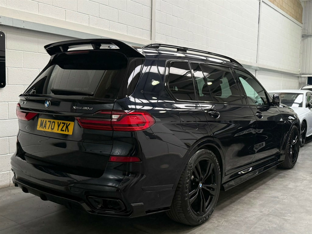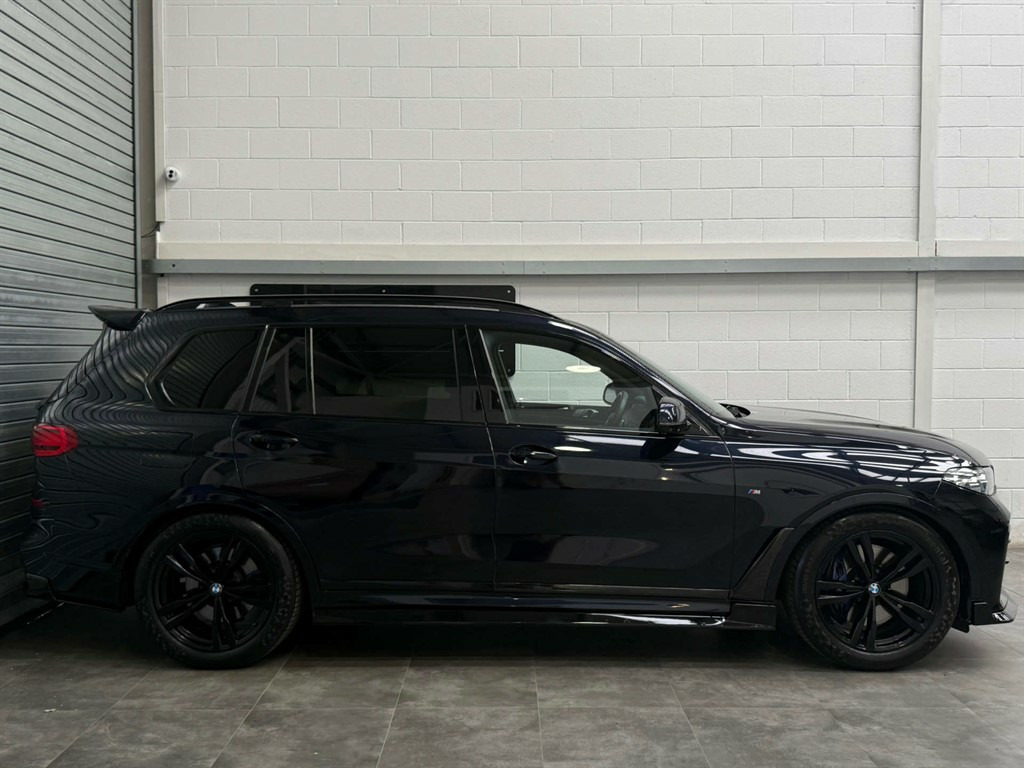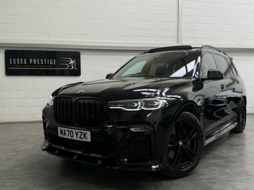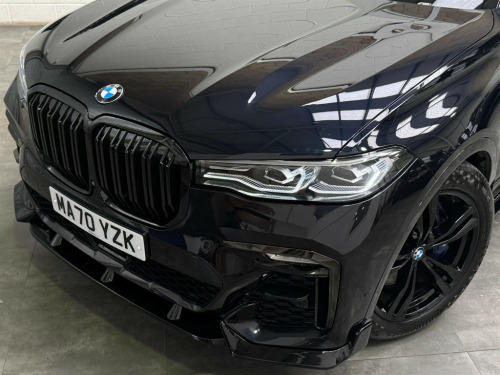 Full Service History, Sat Nav, M Performance Kit, Black Pack, Pan Roof, Harman Kardon Sound System, 360 Surround View Cameras, Ambient Lighting, 1 x USB A 1.5A in Cupholder - 1 x USB C 3A in Centre Armrest and 1 x Double USB C 3A in Rear End of Console for 2nd Seat Row,20GB Hard Disc Drive HDD Memory,21in Alloy Wheels - M Light Double Spoke Style 754M Bicolour,7-Seat in 2+3+2 Configuration,Acoustic Glazing,Active Air Stream Kidney Grille - High-Gloss Chrome,Active Guard Plus,Active Protection,Adaptive 2-Axle Air Suspension,Air Conditioning - Automatic with Four Zone Control,Airbags,Alarm System - Thatcham 1 with Remote Control and Engine Immobiliser,Ambient Lighting,Armrests,Attentiveness Assistant,Automatic Start-Stop Button,BMW Connected Package Professional,BMW ConnectedDrive Services,BMW Display Key,BMW Individual Headliner Alcantara Anthracite,BMW Individual High-Gloss Shadowline,BMW Individual Instrument Panel Finished in Leather,BMW Individual Roof Rails High-Gloss Shadow Line,BMW Legal Emergency Call,BMW Live Cockpit Professional,Brake Force Display,Brake System,Brake-Pad Wear Indicator,Centre Lock Switch - Driver and Front Passenger Door,Child Seat ISOFIX Attachment - Rear Outer Seats in 2nd Row and Both Seats in 3rd Row - includes Top Tether,Chrome Trims and Door Surrounds,Closing System with Central Locking,Comfort Access System,Comfort Cushion,Comfort Seats - Front - Electrically Adjustable,Compartment in Front of Cupholder,Crash Sensor and Safety Battery Terminal Clamp,Cruise Control with Brake Function,Cup Holders - Front x2 and Rear x2,DAB Tuner,DSC - Dynamic Stability Control - Stabilises the Vehicle in Extreme Situations - Controls Traction,Daytime Running Lights - LED,Door Pockets - Front and Rear,Door Sill Finishers - M Designation,Door Sill Inlays - BMW M Designation Illuminated,Double-Wishbone Front Axle,Drive Performance Control - ECO PRO - Comfort - Sport and Adaptive Modes,Drive Recorder,Dynamic Brake Lights with LED Technology,EPS - Electric Power Steering with Servotronic,Electric Front Seat Adjustment with Driver Memory,Electric Windows - Front and Rear,Electrical Steering Column with Adjustable Height and Length,Electro-Mechanical Parking Brake with Automatic Drive-Away Release and Auto-Hold Function,Exhaust Tailpipes - Single - Left and Right - Chrome,Expanded Exterior Mirror Package,Exterior Mirror Housing - Body Colour,Exterior Trim - High-Gloss Shadowline,Favourite Buttons,Floor Mats - Velour,Follow Me Home Headlight Function,Footwell Lights - Front,Galvanic Embellisher for Controls,Gesture Control,Grab Handles,Headlights - Adaptive LED,Headrests - All Seats,HiFi Loudspeaker System,High-Beam Assistant,Instrument Panel in Sensatec,Interior Light - Rear Centre,Interior Mirror - Frameless,Interior Trim - Fineline Black Wood - High-Gloss with Metal Effect,LED Fog Lights,LED Rear Lights,LED Third Brake Light - Spoiler,Light Inside Glove Compartment,Lockable Glove Compartment,Locking Wheel Bolts - Thatcham Approved,Luggage Compartment Floor Panel with Integral Storage Tray,Luggage Compartment Package,M Aerodynamics Package,M Designation on Front Side Panels - Left and Right,M Leather Steering Wheel,M Specific Key,M Specific Pedals,M Specific Steering Wheel,M Sport Braking System,Make-Up Mirror Lights,Mechanical Childproof Lock - Rear Doors,Microfilter and Active Carbon Filter,Multi-Function Controls for Leather Steering Wheel,Multifunctional Hooks,OBC - On-Board Computer,Oil Sensor For Level and Grade,PDC - Park Distance Control - Front and Rear,Panoramic Glass Sunroof,Parking Assistant Plus,Passive Protection for Pedestrians,Power Sockets 12v - 2x Centre Console - 1x Luggage Compartment,Rain Sensor with Automatic Headlight Activation and Windscreen Wiper Control,Reading Lights - Front,Run Flat Tyres,Seat Back with Flap Pocket,Seat Heating - Front and Rear,Seat Occupancy Detection for Driver and Passenger Side,Side Impact Protection,Soft Close Doors,Speed Limiting Function,Split Folding 2nd Row Seating with 40-20-40 Configuration,Sun Visors with Illuminated Vanity Mirrors,TPMS - Tyre Pressure Monitoring System,Tailgate Automatic - Two Part Top-Hinged Section Which Can Be Opened Separately and Manual Bottom-Hinged Section,Tailpipe Finishers in M Sport Package-Specific Geometry,Telephony with Wireless Charging,Teleservices,Third-Row Seating,Three-Point Seat Belts,Toolkit Located in Luggage Compartment,Two Tone Horn,Warning Triangle,Welcome Light Carpet,WiFi Hotspot,Windscreen Washer Jets - Heated,X7 on Tailgate - Left,iDrive Touch Controller with Shortcut Buttons,xDrive and Engine Designation on Tailgate - Right,M Sport Package