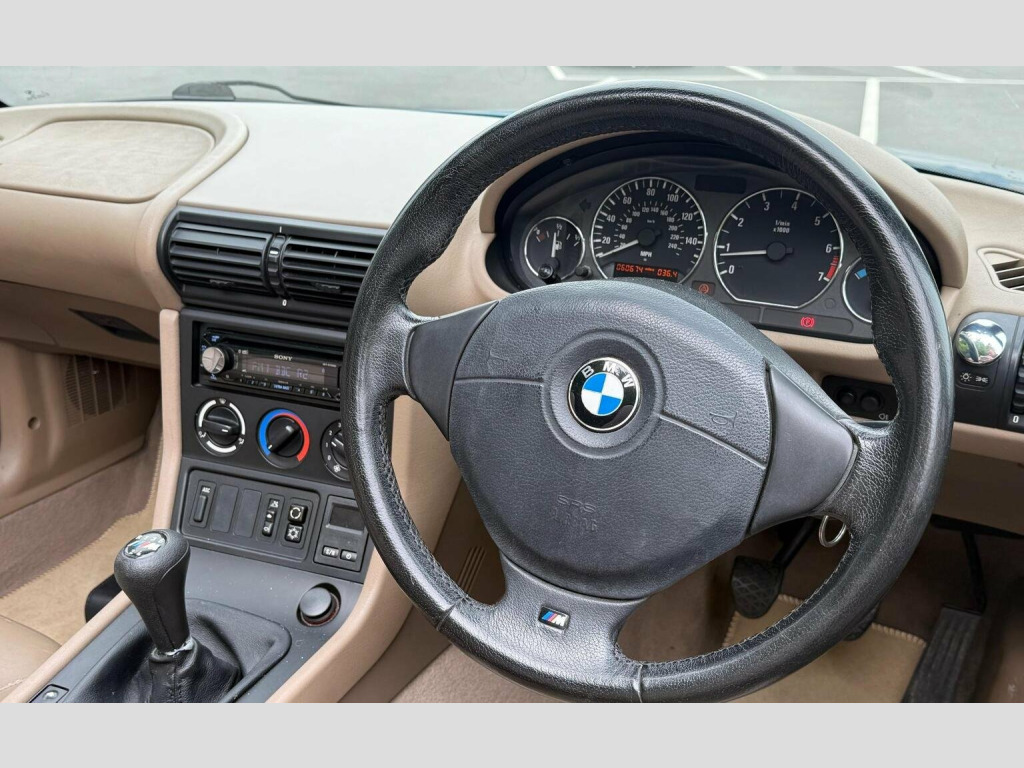 GT Bowers a Multi Award Winning Retailer are pleased to offer for sale this lovely BMW Z3 1.9i 2dr, Manual. Metallic Blue with Leather Upholstery. Good Service History and will be sold with a Fresh Service, New MOT and 82 Point RAC Approved Inspection. We will also include a 6 Months RAC Warranty (extend to 12 months for £299) 12 months roadside Assistance included. Specification including : Leather Upholstery, Alloy Wheels, Radio/CD with Bluetooth, USB input, Air Conditioning, Electrically Operated Mirrors, Electric Windows, Eco Mode , ASC Traction Control, Remote Central Locking, Wind Deflector Original Books and Lots More! Vehicle has had a colour change from Red to Blue - this has been done to a high standard. PLEASE CONTACT US TO ARRANGE A VIEWING IN RODLEY - CURRENTLY VIEWINGS ARE BY APPOINTMENT ONLY DUE TO A ONGOING MOVE OF PREMISES. Finance Available from 10.9% APR (subject to status) HPI Clear. GT Bowers are proud to have been presented with the Autotrader Highly Rated Award for 3 consecutive Years***** Please see our 165+ Autotrader Verified 5star Reviews***** RAC Approved Retailer. Multi Award Winning Retailer -WINNER - SME Awards Most trusted Used Car Dealer - Yorkshire 2021 and 2022. Corporate Livewire Car Dealership of the Year Winner Yorkshire 22/23 and 23/24. We prepare our cars to a very high standard. Please call to ensure the car is still available and arrange a viewing. We will offer the best price for your part exchange and guarantee to beat any car buying service offer. Delivery available throughout the UK. Finance Available, the price you see is the price you pay - we do not charge an admin fee or have any other hidden costs.