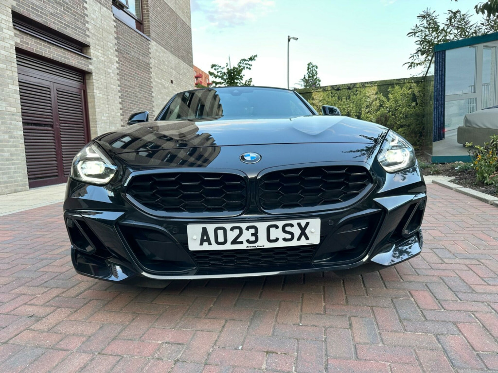This 2023 BMW Z4 20i M Sport is a pristine example, having had only one owner and boasting a full service history for your peace of mind. This stylish convertible features a responsive 2.0L petrol engine, meeting Euro 6 emissions standards, and comes with a 12 month warranty. You'll appreciate the M Sport trim and the M Sport Pro Package, which enhance its sporty appeal. For convenience, it includes LED headlights, front and rear parking sensors, and the BMW Connected Package Professional with Android Auto and Apple CarPlay integration. Comfort is assured with automatic two zone air conditioning.Experience exhilarating performance with this Z4, capable of reaching 0-62mph in a swift 6.6 seconds, a testament to its dynamic capabilities. This acceleration figure indicates a more engaging driving experience compared to many other vehicles in its class. Furthermore, its low CO2 emissions highlight its efficiency, making it a more environmentally conscious choice. The generous boot space also sets it apart, offering practicality often not found in sports cars of this calibre. AMAZING VALUE FOR MONEY CATEGORY S THIS VEHICLE WILL BE SOLD WITH 24 MONTHS FREE COMPREHENSIVE GOLD WARRANTY COVER NATIONWIDE DELIVERY AVAILABLE PX WELCOME FOR MORE INFORMATION OR TO BOOK A VIEWING PLEASE CALL 07400908644 OR 07597668564 OR 07961645404 OR 07711695506. 18in Alloy Wheels - M Light Double Spoke Style - Bicolour Ferric Grey - 798 M, Active Guard, Air Conditioning - Automatic - Two-Zone, Airbags, Alarm System, Ambient Interior Lighting, Armrest, Automatic Start-Stop Button, BMW Connected Package Professional, BMW ConnectedDrive Online Services, BMW Emergency Call, BMW ID, BMW Live Cockpit Professional, BMW TeleServices, BMW iDrive, Battery in Luggage Compartment, Bumper System - Front and Rear, Centre Lock Switch, Closing System with Central Locking, Condition Based Service, Crash Sensor, Cruise Control with Brake Function, Cupholder, DAB Tuner, DSC - Dynamic Stability Control Plus, Door Sill Finishers - M Designation, Door Sill Strips, Double-Jointed Spring-Strut Front Axle, Driving Experience Switch, Electric Window, Electro Mechanical Parking Brake, Electronic Differential Lock, Electronic Vehicle Immobiliser, Exhaust Tailpipe, Extended Storage, Exterior Trim - High Gloss Shadowline, Floor Mats - Velour, Folding Wing Mirrors with Auto-Dimming, Follow Me Home Headlight Function, Front and Rear Parking Sensors, Fuel Tank Breather System, Glove Compartment - Illuminated, Headlights - Beam Throw Control, Heat Protection - Sun Protection Glazing, HiFi Loudspeaker System, Interior Rear-View Mirror with Automatically Dimming, Interior Trim - Finishers in Aluminium Tetragon, Kidney Grille in Mesh Design, LED Headlights, Language Version English, Lashing Eyelets, Luggage Compartment Lights, M Aerodynamics Package, M Sport Leather Steering Wheel, M Sport Package, M Sport Suspension, M Sports Seats - Driver and Passenger, Model Logo, Multifunction for Steering Wheel, OAAS Prep High-Beam Assist, Oil Sensor For Level and Grade, Plastic Fuel Tank, Power Socket 12v, Power Sockets, Power Steering - Electric, Rear Lights - LED, Reversing Light, Runflat Indicator, Safety Battery - Terminal Clamp, Seats - Front Heated, Sensatec Dashboard, Smartphone Integration, Soft-Top - Black, Speed Limiter, Steering Column Adjustment, Steering Wheel - Gearshift Paddles, Sun Visors with Illuminated Vanity Mirrors and Ticket Holder, Third Brake Light, Through-Loading System, Toolkit Located in Luggage Compartment, Tyre Pressure Sensors, Tyre Repair Kit, Variable Sport Steering, Warning Triangle, Washer Jets - Heated, Welcome Light, Wind Deflector, M Sport Pro Package, Vernasca Leather - Ivory White with Decorative Stitching. Full service history