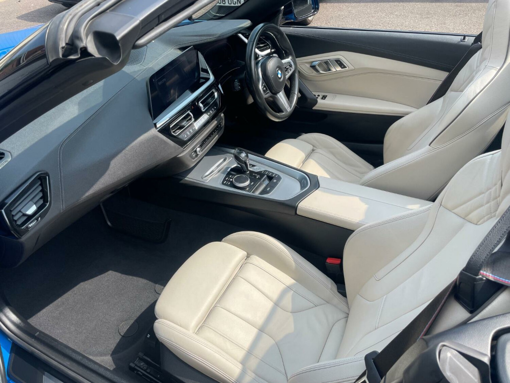 2020 / 69 BMW Z4 sDrive 30i M Sport Finished in Metallic Misano Blue having covered 43000 miles with a Full BMW Main Dealer service History plus BMW Warranty until January 2026. Full Vernasco Ivory White Leather with Decorative Stitching, Heated Seats, Digital Cockpit, M Sport Plus Package, Visibility Package, Wind Deflector, Aluminium Mesh Interior Trims, Multi function Sports Steering Wheel with Paddle Change, Cruise Control, Electric Black Power hood, BMW LED Headlights, Interior Mood Lighting, Computer, 19 inch Unmarked Black and Polished Alloys with New Dunlop Sport Tyres All round, Satellite Navigation, Bluetooth, Auto Lights, Auto Wipers, Air Conditioning, Electric Folding Mirrors, Front and Rear Parking Sensors, Electric Windows, Remote Alarm and Central Locking. Absolutely Superb Condition and looks Stunning in this Colour Combination. UK Supplied with Full book Pack, Spare Key and BMW Warranty until January 2026. , Please visit our website for our Full Stocklist and Testimonials , www.performancecarcompany.com, , Viewing by Appointment only so please contact us to check before travelling - Many Thanks, , We have the current available stock so please check out our website www.performancecarcompany.com or give us a call for more , information :, , 2007 07 Alfa Romeo Spider 3.2 JTS Manual 35800 miles, 2016 16 BMW 730d Sport Xdrive 69000 miles, VW Golf GTi DSG 31000 miles, Subaru Impreza WRX STi CS400 14000 miles, , BMW Z4 sDrive 30i M Sport 43000 miles, 2007 57 VW Golf GTi 41500 miles.