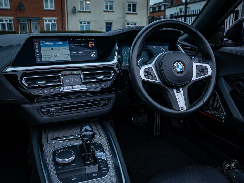 FREE DELIVERY WITHIN 200 MILES – Here we have a stunning BMW Z4 M40i finished in Blue Metallic. This being the range topping M40i comes with generous spec from the factory, but this example also boasts a plethora of optional extras such as: Visibility Package – Technology Package – Comfort Package – Black Package – Parking Assistant – Enhanced Bluetooth with Wireless Charging – Wind Deflector – Through-Loading System – Vernasca Leather in Black with Decorative Stitching – and more. Service history all on the iDrive, with 1 BMW and 2 Specialist in total. MOT Valid until 15/09/2025. 3 Month £2000 Claim Limit Warranty is included with the sale but the option to upgrade to a 12M, 24M, & 36M £5000 Claim Limit Nation Wide Premium Autoguard Warranty with Breakdown Cover is available. Multiple Finance Options, Competitive Part Exchange Prices. All Cars Are HPI, MotorCheck & Experian Clear. Further Vehicle Delivery Options Also Available. All Rights Reserved - Whitethor cars exercise all reasonable care and skill in providing you with vehicle information and data. The specification is attained through HPI, Experian & Autotrader VRM. Options Sold as packs may be shown individually, spec check is a guide so please contact us or physically verify any info that is crucial.