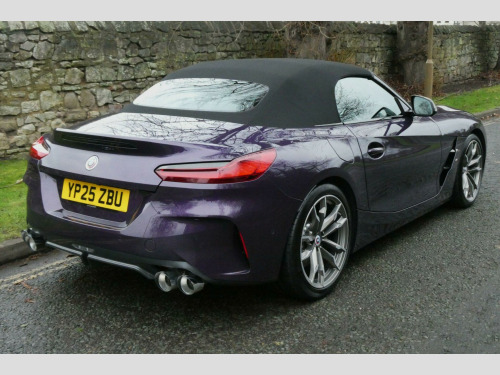 We Are Delighted To Offer This Outstanding Low Mileage Example Z4 M40i With The Following Impressive Factory Specification Including Some Tasteful Modifications. Finished In Thundernight Metallic With Contrasting Cognac Leather. For Further Information Or To Arrange A Viewing please Contact Andrew Or Ross You Will Not Be Disappointed. Supplied With Original Book Packs, Service File & 2 Sets Of Keys. BMW WARRANTY UNTIL 2028.This 2025 BMW Z4 M40i offers an exceptional ownership proposition with its remarkably low mileage of just 2000 miles. This striking convertible is powered by a potent 3.0 litre petrol engine, meeting Euro 6 emission standards. It comes equipped with a comprehensive Technology Package, enhancing your driving experience with Bluetooth connectivity, a Head Up Display, and advanced parking assistance featuring a rear camera and sensors. Further convenience is provided by the Enhanced Bluetooth with Wireless Charging, ensuring your devices stay powered up. For your listening pleasure, the Z4 boasts a Premium Branded Sound System, specifically the Harman Kardon Surround Audio Sound System, delivering an immersive audio experience.The Z4 M40i truly excels in its performance and practicality. Its acceleration is a notable highlight, achieving 0-62mph in a swift 4.5 seconds, demonstrating its dynamic capabilities. This model also benefits from a heated steering wheel for added comfort during cooler drives. Furthermore, the Z4 offers a surprisingly large boot space, making it a practical choice for weekend getaways. Its low insurance group is another advantage, indicating that running costs are kept competitive compared to similar vehicles.. 19in Light Alloy Wheels - M Double-Spoke - Bi-Colour Cerium Grey - Style 800, Active Guard, Adaptive M Suspension, Air Conditioning - Automatic - Two-Zone, Airbags, Alarm System, Ambient Interior Lighting, Armrest, Automatic Start-Stop Button, BMW Connected Package Professional, BMW ConnectedDrive Online Services, BMW Emergency Call, BMW ID, BMW Live Cockpit Professional, BMW TeleServices, BMW iDrive, Battery in Luggage Compartment, Bumper System - Front and Rear, Centre Lock Switch, Closing System with Central Locking, Condition Based Service, Crash Sensor, Cruise Control with Brake Function, Cupholder, DAB Tuner, DSC - Dynamic Stability Control Plus, Door Sill Finishers - M Designation, Door Sill Strips, Double-Jointed Spring-Strut Front Axle, Driving Experience Switch, Electric Memory Seats, Electric Window, Electro Mechanical Parking Brake, Electronic Differential Lock, Electronic Vehicle Immobiliser, Exhaust Tailpipe, Extended Storage, Exterior Trim - High Gloss Shadowline, Floor Mats - Velour, Folding Wing Mirrors with Auto-Dimming, Follow Me Home Headlight Function, Front and Rear Parking Sensors, Fuel Tank Breather System, Glove Compartment - Illuminated, Headlights - Beam Throw Control, Heat Protection - Sun Protection Glazing, HiFi Loudspeaker System, Interior Rear-View Mirror with Automatically Dimming, Interior Trim - Finishers in Aluminium Tetragon, Kidney Grille in Mesh Design, LED Headlights, Language Version English, Luggage Compartment Lights, Lumbar Support - Driver and Front Passenger, M Aerodynamics Package, M Seat Belts, M Sport Brakes with Blue Calipers, M Sport Differential, M Sport Leather Steering Wheel, M Sports Seats - Driver and Passenger, Model Logo, Multifunction for Steering Wheel, OAAS Prep High-Beam Assist, Oil Sensor For Level and Grade, Plastic Fuel Tank, Power Sockets, Power Steering - Electric, Rear Lights - LED, Reversing Light, Runflat Indicator, Safety Battery - Terminal Clamp, Seats - Front Heated, Sensatec Dashboard, Smartphone Integration, Soft-Top - Black, Speed Limiter, Steering Column Adjustment, Steering Wheel - Gearshift Paddles, Sun Visors with Illuminated Vanity Mirrors and Ticket Holder, Third Brake Light, Through-Loading System, Toolkit Located in Luggage Compartment, Tyre Pressure Sensors, Tyre Repair Kit, Variable Sport Steering, Warning Triangle, Washer Jets - Heated, Welcome Light, Wind Deflector, Finished In Thundernight Metallic With Cognac Leather, Technology Package, Parking Assistant, Comfort Package, Harman Kardon Surround Audio Sound System, REMUS Sports Exhaust, Remus Short Chrome Tailpipes, Enhanced Bluetooth with Wireless Charging, Steering Wheel - Heated, WiFi Hotspot, Xpel PPF To Front End, Side Skirts & Rear Bumper, Ceramic Coated, 50th Anniversary Badging.