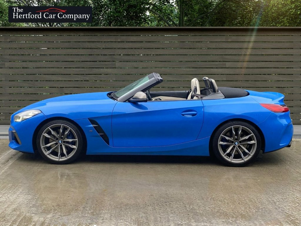 This 2019 BMW Z4 M40i boasts a full dealership service history, offering peace of mind for its next owner. Under the bonnet, you'll find a powerful 3.0 litre petrol engine, compliant with Euro 6 emissions standards. This model comes equipped with the desirable Technology Package, featuring a Head Up Display and a premium branded sound system, alongside the Comfort Package which includes keyless entry and a heated steering wheel. Further enhancing convenience are the Parking Assistant with rear camera and sensors, and Enhanced Bluetooth with wireless charging, complemented by a Bluetooth hands free system with USB audio interface. The Z4 M40i delivers exhilarating performance, achieving 0-60mph in a swift 4.5 seconds, a testament to its dynamic capabilities. This impressive acceleration, combined with its low insurance group rating, positions this vehicle as a compelling choice compared to similar models. The inclusion of wireless phone charging and a heated steering wheel further elevates the driving experience, making this BMW Z4 a well appointed and engaging sports car. 12V Power Socket in Front Storage Compar, 19in Light Alloy Wheels - M Double-Spoke, Active Carbon Microfilter, Active Guard Plus, Adaptive M Suspension, Air Conditioning - Automatic - Dual Zone, Airbags, Ambient Interior Lighting, BMW Connected Package Professional, BMW ConnectedDrive Online Services, BMW Emergency Call, BMW Live Cockpit Professional, BMW TeleServices, Battery in Luggage Compartment, Bluetooth Hands Free with USB Audio Inte, Bumper System - Front and Rear, Central Locking Switch, Child Seat ISOFIX Attachments - for Pass, Closing System with Central Locking, Crash Sensor, Cruise Control with Brake Function, Cup Holders - Front, DSC - Dynamic Stability Control Plus, Door Sill
