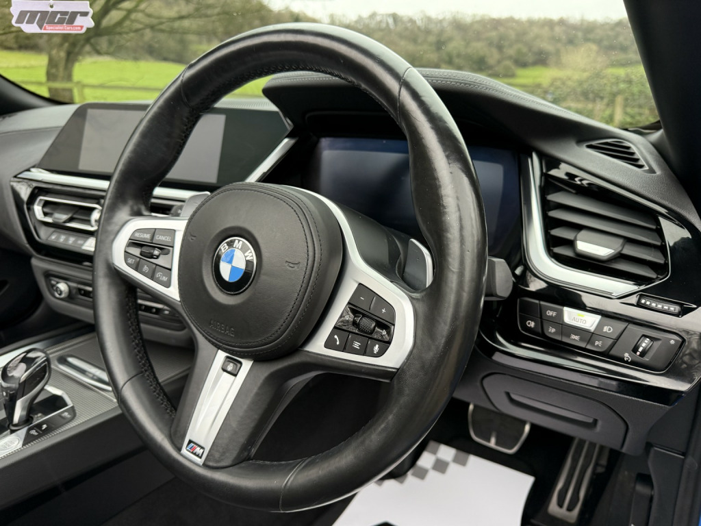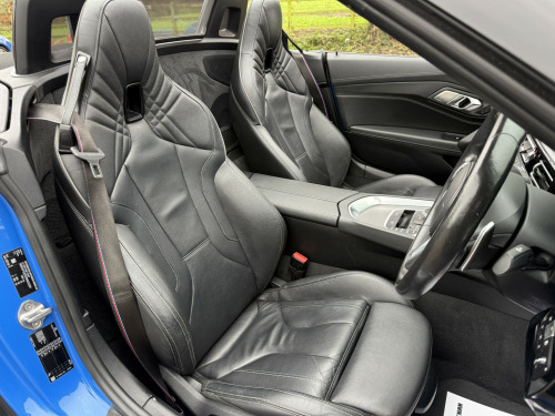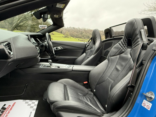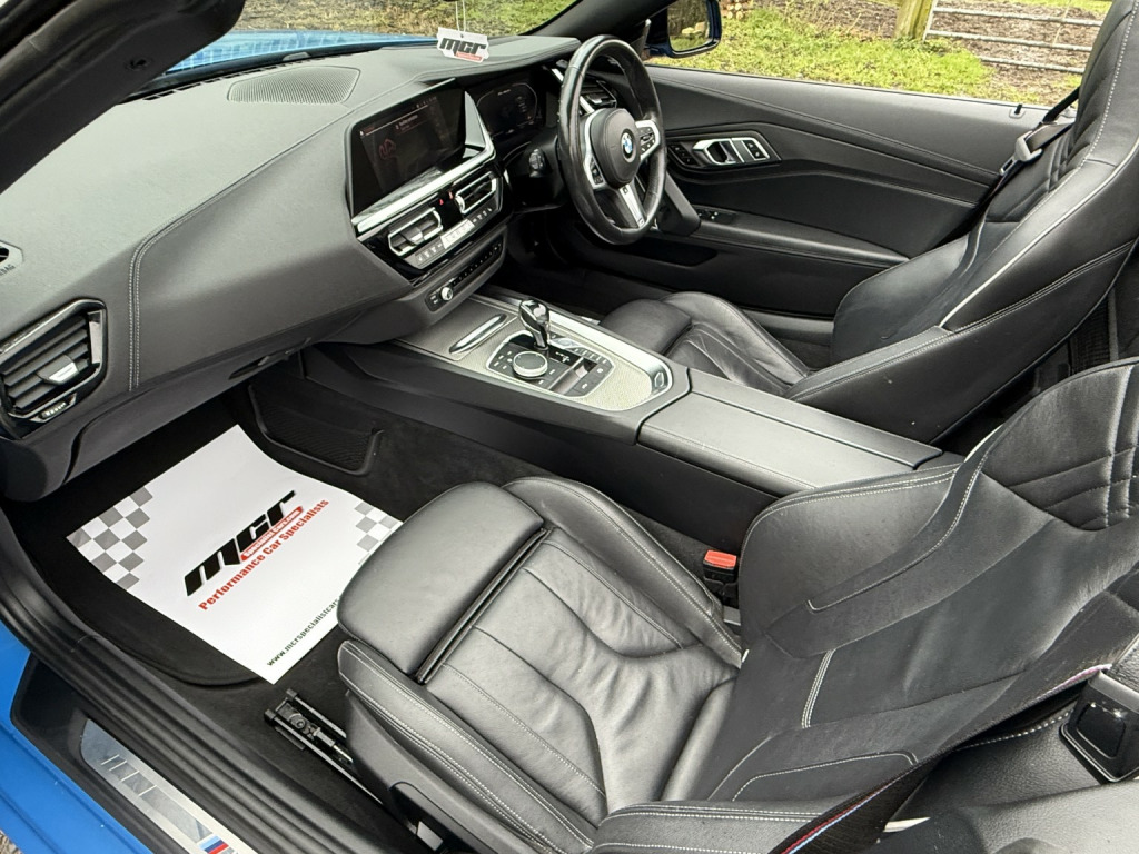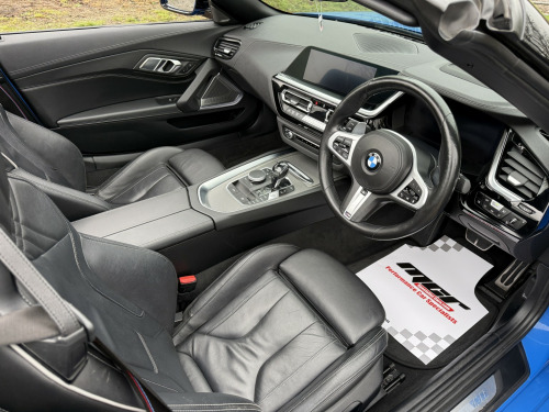 Stunning Specification Z4 M40i Finished In The Best Colour Misano Blue Metallic And Contrasting Black Vernasca Leather With Grey Piping. , Full Spec Includes Dual Zone Automatic Climate Control Air Conditioning, Connected Package Professional, DAB Radio With Harmon Kardon Surround Sound Speaker System, Head Up Display, Bluetooth With Wireless Phone Charging, Electric Windows, Electric Mirrors, Electrically Adjustable Seats With Memory Function & Heated Seats, Heated Steering Wheel, Multi Function M Sport Steering Wheel, Cruise Control With Braking Function, M Sport Seats, M Seatbelts, Auto Adaptive LED Headlights, High Beam Assist, Parking Assistance System, Gloss Black Grills & Front Splitter, BMW Double Spoke 799M Alloy Wheels, Adaptive M Sport Suspension, M Differential, Sports Auto Gearbox With Steering Wheel Paddle Shift, Light Package, Ambient Interior Lights, Sensatec Instrument Panel, Auto Dip Rear View Mirrors, M Aerodynamics Package, Maxton Design Front & Rear Lower Diffusers, Remote Central Locking, Blow By Heater, Multi Airbags. , Complemented With A FULL BMW MAIN DEALER SERVICE HISTORY All Recorded On The iDrive, Car Has 2 Keys, Book Packs Etc... , Very High Spec Example In The Best Colour Combination And A Very Top Specification, Excellent Value Example.