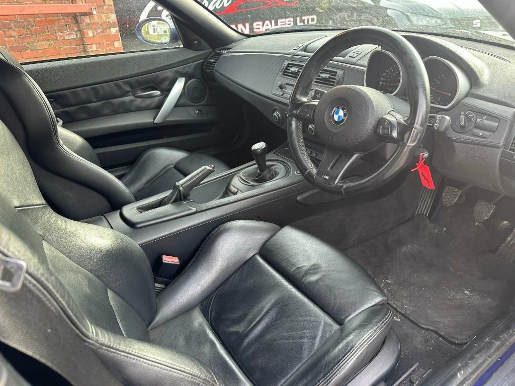 This 2006 BMW Z4 M i presents a compelling proposition for the discerning driver. Powered by a robust 3.2 litre petrol engine, this model offers a dynamic driving experience. Its registration year of 2006 places it within a desirable bracket for classic sports car enthusiasts. The Z4 M i stands out with its notably low insurance group, making it an accessible choice for many. This particular vehicle combines performance with practicality, offering a refined driving experience that is characteristic of the BMW brand. It represents a well rounded option for those seeking a sporty yet manageable convertible. Anti dazzle Rear view mirror, Auto Headlights, BMW Assist, BMW ConnectedDrive- Assist, Brushed Aluminium Interior Trim, Brushed Aluminium Trim, CD Changer, CD player with MP3 decoder, Electric Opening Roof, Metallic Paint, No model inscription, Remote Central Locking, Satellite Navigation, Soft top- Black, Soft top- Dark Beige, Soft top- Grey