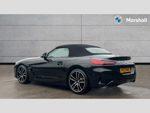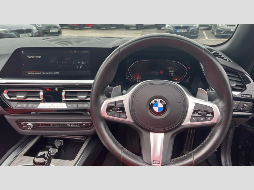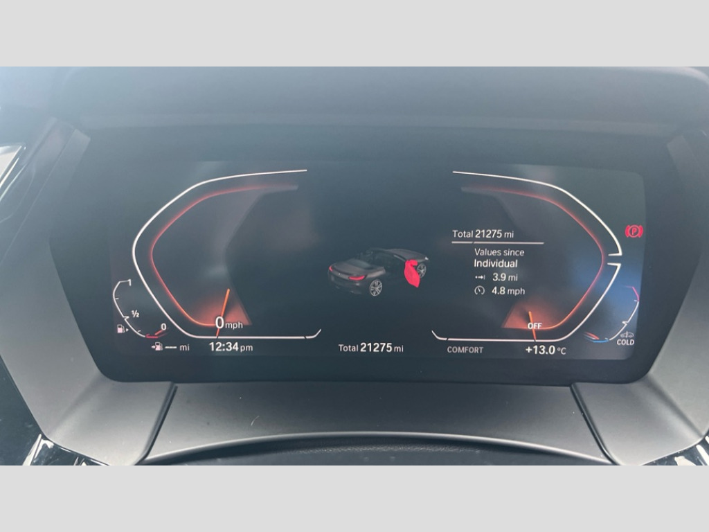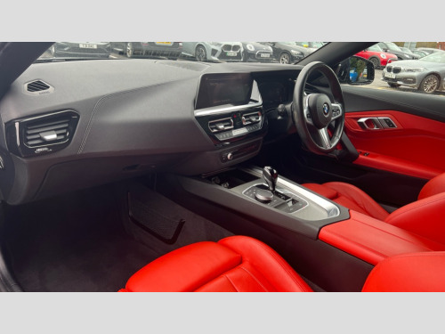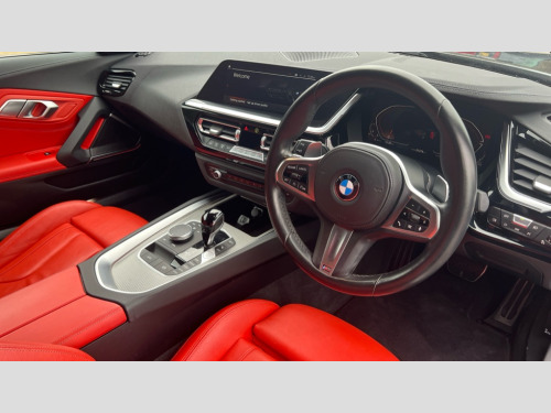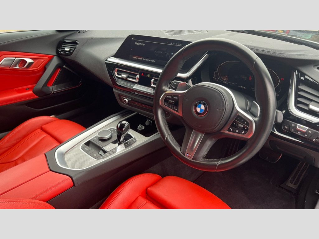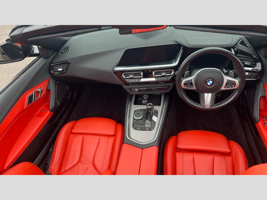 BMW Z4 sDrive 20i M Sport 2dr Auto Active guard plus incl speed limit assist, lane departure warning with steering impulse and front collision warning with brake intervention, Auto start-stop, BMW ConnectedDrive online services, BMW Live Cockpit Professional with 10.25" high resolution instrument and control display, BMW Teleservices, Condition based service, Electric power steering, Fuel gauge, IDrive, Instrument cluster, Language version English, Oil sensor for level and grade, warning by check control system, Oil temperature gauge, Optimum shift indicator, Pull away assistant, Run flat indicator, Smartphone integration, Speed limiter, Speedometer with mph readout, Tachometer, Variable sport steering, Double joint spring, Double VANOS, Drive performance control with ECO PRO comfort + sport mode, Eight speed steptronic sport transmission, with gearshift paddles, Electronic differential lock, Fuel tank breather system, High precision injection, M sport suspension, 2x USB Type C ports in front centre console for charging and data transfer, 2x USB Type C ports in rear centre console for charging, DAB tuner, USB connection, 3rd brake light, Automatic headlight beam throw control with load dependent regulating reaction, dynamic compensation of braking dive and acceleration squat, Door sill finishers with M designation, Door sill strips, Dynamic braking lights comprising activated hazard warning flashers and third brake lights, Electric heated rear window, Exhaust tailpipe - split left and right, Exterior mirror housing finished in body colour, Exterior mirrors - electrically folding with anti-dazzle, Fingertip control / anti-trap function on electric window, Follow me home headlight function, Front and rear bumper system with replaceable deformation elements, Green tinted heat protection glazing, Heated windscreen washer jets, High gloss shadow line, Interior rear view electrochromatic mirror with automatic anti dazzle function, Kidney grille in mesh design, LED daytime driving lights, LED Indicators, LED rear lights, Lightweight engineering, M aerodynamic body kit, M Sport exterior styling, Matt black window recess finisher, Model logo, Rain sensor, Rear boot, Tailgate release handle, Two stage brake force display, Visible VIN plate, Welcome lighting, Windscreen wipers with adjustable interval, 12V power socket in front storage compartment, Activation of interior lighting, Additional storage compartment - 4 lashing eyes, strap and storage net, Ambient lighting, Battery in luggage compartment, BMW ID, Child seat ISOFIX attachments for passenger seat, Cupholder, Driver and front passenger heated seats, Front and rear armrests integrated in door trim + centre console includes storage compartment and rear centre armrest includes 2 cupholders, Front and rear velour floor mats, Front headrests, Height adjustable mechanically and infinitely variable steering column, Illuminated glovebox, Luggage compartment light, M sport leather steering wheel, M Sport seats for driver and passenger, Microfilter and active carbon filter, Multifunction steering wheel, Single front passenger seat, Sunvisors with vanity mirrors and ticket pocket, Two zone automatic air conditioning, Vernasca leather upholstery, Connected package professional - Z4, 3 point front seat belts, Airbags - Front driver and passenger, front and side impact protection, Anti lock braking system (ABS) with brake assist, Automatic Stability Control (ASC), BMW emergency call, Brake energy regeneration, Braking readiness, Cornering brake control (CBC), Crash sensor activating central locking release, hazard warning lights, fuel cut off, interior lighting, safety battery terminal clamp and airbags, Deactivation of fuel pump in the event of a crash, Dry braking, Dynamic brake control, Dynamic stability control + (DSC+), Dynamic Traction Control - DTC, Electromechanical parking brake with automatic drive away release and auto hold function, Front and rear brake discs with interior ventilation, Head airbags, Plastic fuel tank, Pyrotechnic seat belt tensioners, Roll over protection, Seat belt force limiter, Seat belt stopper, Seat occupancy protection, Two tone horn, Tyre pressure monitoring with three level warning strategy, Warning triangle, Centre lock switch, Closing system with central locking, Electronic vehicle immobiliser, Start/stop button with Comfort Go keyless engine start and auto Start/stop deactivation button, Thatcham cat 1 remote alarm, Sensatec dashboard, 18" Double spoke M light alloy wheels in bicolour ferric grey - style 798M, Reduced rolling resistance tyres, Tool kit, Tyre repair kit