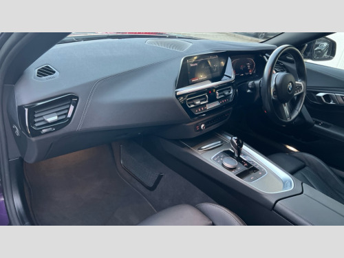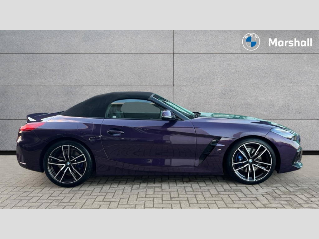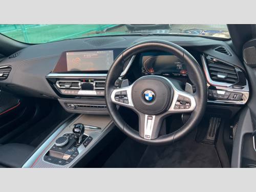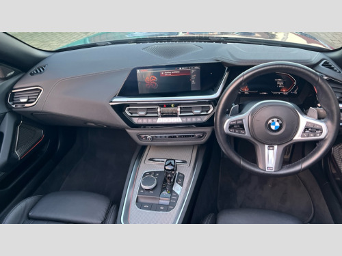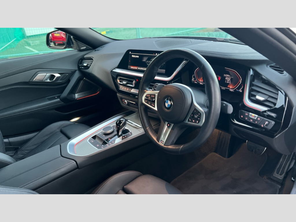 BMW Z4 sDrive 20i M Sport 2dr Auto Active guard plus incl speed limit assist, lane departure warning with steering impulse and front collision warning with brake intervention, BMW ConnectedDrive online services, BMW Live Cockpit Professional with nav function/12.3" high resolution instrument +10.25" control display/Intelligent Voice Assist/2 USB/WiFi interface, BMW Teleservices, Condition based service, Electric power steering, Fuel gauge, iDrive touch controller with turn and press function, Instrument cluster, Language version English, Oil sensor for level and grade, warning by check control system, Oil temperature gauge, Optimum shift indicator, Pull away assistant, Run flat indicator, Speed limiter, Speedometer with mph readout, Tachometer, Variable sport steering, Double joint spring, Double VANOS, Drive performance control with ECO PRO comfort + sport mode, Eight speed steptronic sport transmission, with gearshift paddles, Electronic differential lock, Fuel tank breather system, High precision injection, 2x USB Type C ports in front centre console for charging and data transfer, 2x USB Type C ports in rear centre console for charging, DAB tuner, USB connection, Automatic headlight beam throw control with load dependent regulating reaction, dynamic compensation of braking dive and acceleration squat, Door sill finishers with M designation, Door sill strips, Dynamic braking lights comprising activated hazard warning flashers, Electric folding door mirrors, Electric heated rear window, Exhaust tailpipe - split left and right, Exterior mirror housing finished in body colour, Fingertip control / anti-trap function on electric window, Follow me home headlight function, Front and rear bumper system with replaceable deformation elements, Green tinted heat protection glazing, Heated windscreen washer jets, Interior rear view electrochromatic mirror with automatic anti dazzle function, Kidney grille in mesh design, LED 3rd brake light, LED daytime driving lights, LED Indicators, LED rear lights, Lightweight engineering, M aerodynamic body kit, M Sport exterior styling, Matt black window recess finisher, Model logo, Rain sensor, Rear boot, Reversing light, Tailgate release handle, Two stage brake force display, Visible VIN plate, Welcome lighting, Wind deflector, Windscreen wipers with adjustable interval, 12V power point in luggage area, 12V power socket in front storage compartment, 2 cup holders in front centre console, Activation of interior lighting, Additional storage compartment - 4 lashing eyes, strap and storage net, Ambient lighting, Battery in luggage compartment, BMW ID, Child seat ISOFIX attachments for passenger seat, Driver and front passenger heated seats, Front and rear armrests integrated in door trim + centre console includes storage compartment and rear centre armrest includes 2 cupholders, Front and rear velour floor mats, Front headrests, Height adjustable mechanically and infinitely variable steering column, Illuminated glovebox, Luggage compartment light, M sport leather steering wheel, M Sport seats for driver and passenger, Microfilter and active carbon filter, Multifunction steering wheel, Single front passenger seat, Sunvisors with vanity mirrors and ticket pocket, Through load system, Two zone automatic air conditioning, Vernasca leather upholstery, Connected package professional - Z4, 3 point front seat belts, Airbags - Front driver and passenger, front and side impact protection, Anti lock braking system (ABS) with brake assist, Automatic Stability Control (ASC), BMW emergency call, Brake energy regeneration, Braking readiness, Cornering brake control (CBC), Crash sensor activating central locking release, hazard warning lights, fuel cut off, interior lighting, safety battery terminal clamp and airbags, Curtain airbags, Deactivation of fuel pump in the event of a crash, Dry braking, Dynamic brake control, Dynamic stability control + (DSC+), Dynamic Traction Control - DTC, Electromechanical parking brake with automatic drive away release and auto hold function, Front and rear brake discs with interior ventilation, Head airbags, Plastic fuel tank, Pyrotechnic seat belt tensioners, Roll over protection, Seat belt force limiter, Seat belt stopper, Seat occupancy protection, Side airbags for driver and passenger, Two tone horn, Tyre pressure monitoring with three level warning strategy, Warning triangle, Centre lock switch, Closing system with central locking, Electronic vehicle immobiliser, Start/stop button with Comfort Go keyless engine start and auto Start/stop deactivation button, Thatcham cat 1 remote alarm, Sensatec dashboard, Reduced rolling resistance tyres, Tool kit, Tyre repair kit