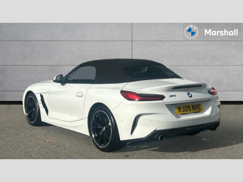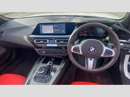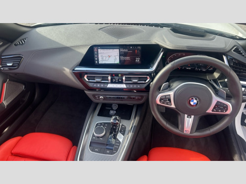BMW Z4 sDrive 20i M Sport 2dr Auto Active Guard, BMW ConnectedDrive online services, BMW Live Cockpit Professional with nav function/12.3" high resolution instrument +10.25" control display/Intelligent Voice Assist/2 USB/WiFi interface, BMW Teleservices, Condition based service, Fuel gauge, iDrive touch controller with turn and press function, Instrument cluster, Language version English, Oil sensor for level and grade, warning by check control system, Oil temperature gauge, Optimum shift indicator, Pull away assistant, Run flat indicator, Speed limiter, Speedometer with mph readout, Tachometer, Variable sport steering, Double joint spring, Double VANOS, Drive performance control with ECO PRO comfort + sport mode, Eight speed steptronic sport transmission, with gearshift paddles, Electronic differential lock, Fuel tank breather system, High precision injection, M sport suspension, Safety battery terminal clamp, 2x USB Type C ports in front centre console for charging and data transfer, 2x USB Type C ports in rear centre console for charging, DAB tuner, USB connection, Automatic headlight beam throw control with load dependent regulating reaction, dynamic compensation of braking dive and acceleration squat, Door sill finishers with M designation, Door sill strips, Dynamic braking lights comprising activated hazard warning flashers, Electric heated rear window, Exhaust tailpipe - split left and right, Exterior mirror housing finished in body colour, Fingertip control / anti-trap function on electric window, Follow me home headlight function, Front and rear bumper system with replaceable deformation elements, Green tinted heat protection glazing, Heated windscreen washer jets, High gloss shadowline exterior trim, Kidney grille in mesh design, LED 3rd brake light, LED daytime driving lights, LED Indicators, LED rear lights, Lightweight engineering, M Sport exterior styling, Matt black window recess finisher, Model logo, Rain sensor, Rear boot, Reversing light, Tailgate release handle, Two stage brake force display, Visible VIN plate, Welcome lighting, Wind deflector, Windscreen wipers with adjustable interval, 12V power point in luggage area, 12V power socket in front storage compartment, 3 spoke M sport leather multifunction steering wheel, Activation of interior lighting, Additional storage compartment - 4 lashing eyes, strap and storage net, Battery in luggage compartment, BMW ID, Child seat ISOFIX attachments for passenger seat, Driver and front passenger heated seats, Front and rear velour floor mats, Front centre armrest with 2 cupholders, Front door armrests, Front headrests, Height adjustable mechanically and infinitely variable steering column, Illuminated glovebox, Luggage compartment light, M Sport seats for driver and passenger, Microfilter and active carbon filter, Single front passenger seat, Sunvisors with vanity mirrors and ticket pocket, Through load system, Two zone automatic air conditioning, Vernasca leather upholstery, Ambient lighting pack - Z4, Connected package professional - Z4, Interior and exterior mirror pack - Z4, M Aerodynamic pack - Z4, 3 point front seat belts, Airbags - Front driver and passenger, front and side impact protection, Anti lock braking system (ABS) with brake assist, Automatic Stability Control (ASC), BMW emergency call, Brake energy regeneration, Braking readiness, Cornering brake control (CBC), Crash sensor, Curtain airbags, Deactivation of fuel pump in the event of a crash, Dry braking, Dynamic brake control, Dynamic stability control + (DSC+), Dynamic Traction Control - DTC, Electromechanical parking brake with automatic drive away release and auto hold function, Front and rear brake discs with interior ventilation, Head airbags, Plastic fuel tank, Pyrotechnic seat belt tensioners, Roll over protection, Seat belt force limiter, Seat belt stopper, Seat occupancy protection, Side airbags for driver and passenger, Two tone horn, Tyre pressure monitoring with three level warning strategy, Warning triangle, Centre lock switch, Closing system with central locking, Electronic vehicle immobiliser, Start/stop button with Comfort Go keyless engine start and auto Start/stop deactivation button, Thatcham cat 1 remote alarm, Sensatec dashboard, 18" Double spoke alloy wheels in bicolour ferric grey - style 798M, Reduced rolling resistance tyres, Tool kit, Tyre repair kit