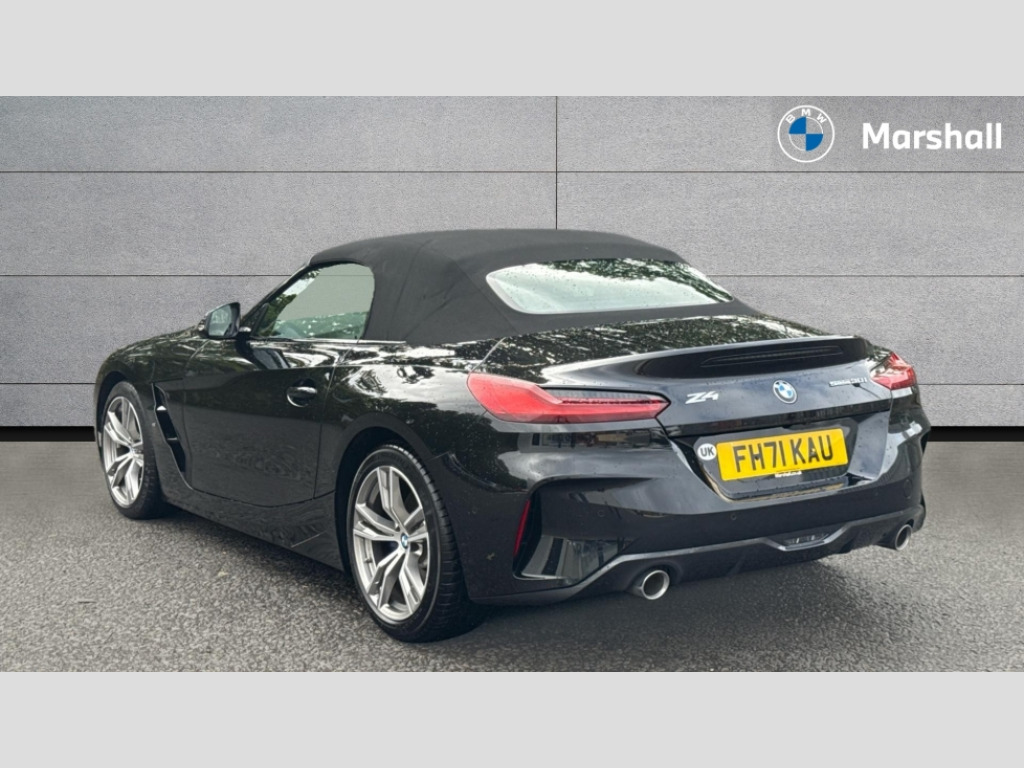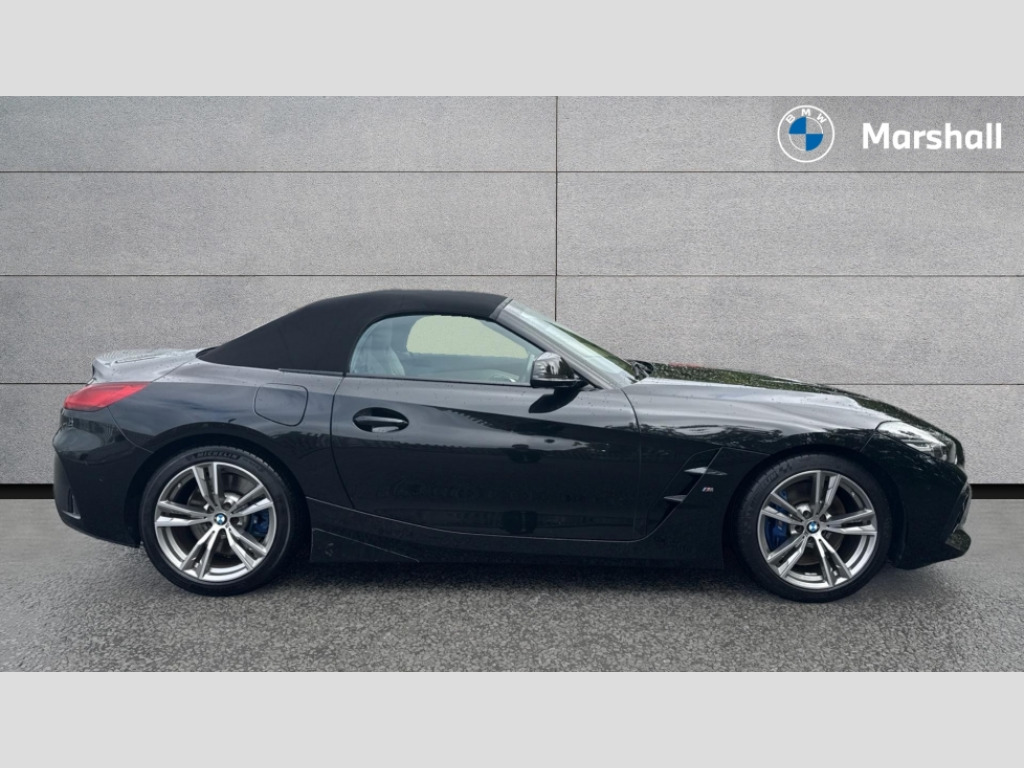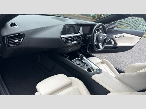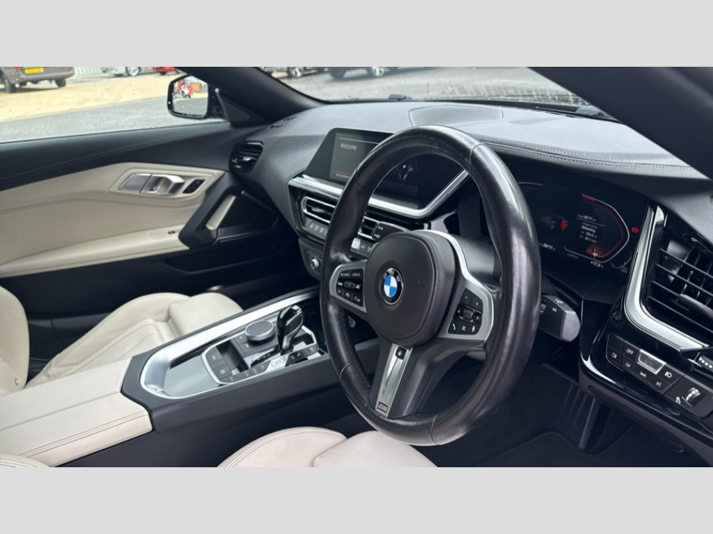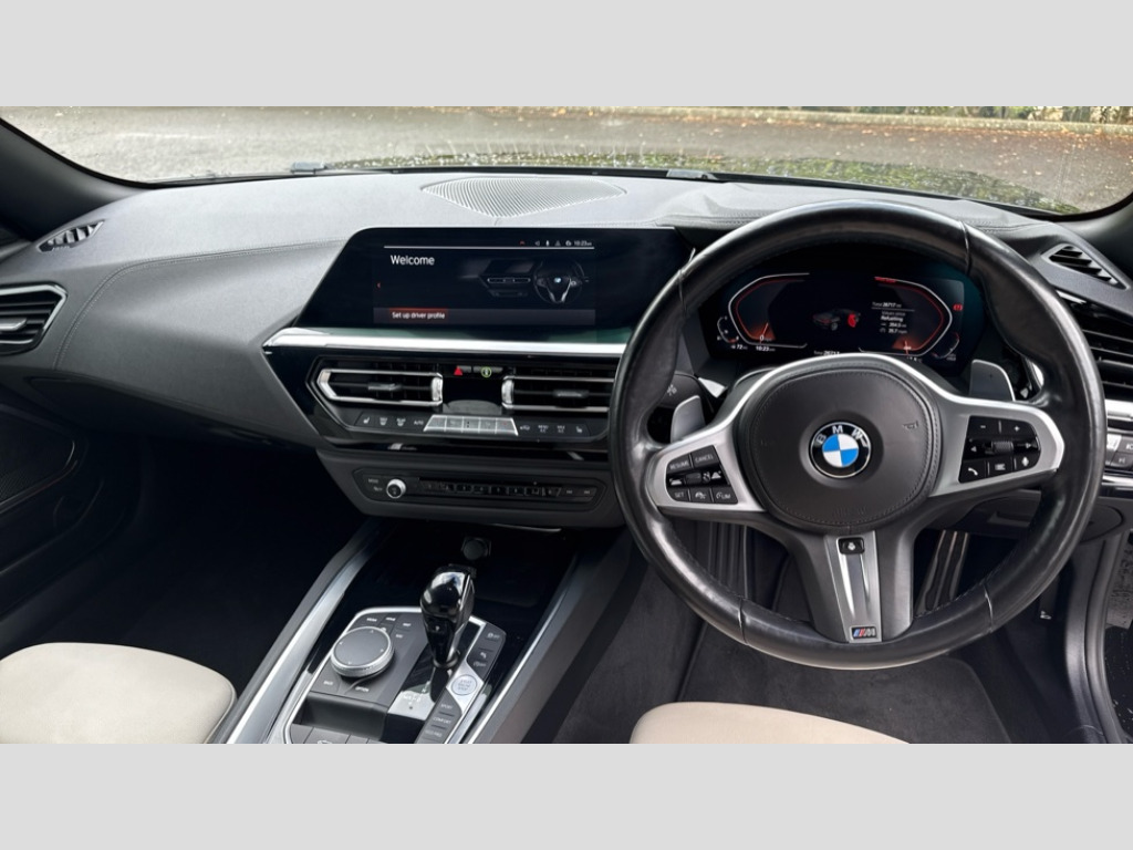 BMW Z4 sDrive 30i M Sport 2dr Auto Active guard plus incl speed limit assist, lane departure warning with steering impulse and front collision warning with brake intervention, Auto start-stop, BMW ConnectedDrive online services, BMW Live Cockpit Professional with 10.25" high resolution instrument and control display, BMW Teleservices, Condition based service, Electric power steering, Fuel gauge, IDrive, Instrument cluster, Language version English, Oil sensor for level and grade, warning by check control system, Oil temperature gauge, Optimum shift indicator, Pull away assistant, Run flat indicator, Smartphone integration, Speed limiter, Speedometer with mph readout, Tachometer, Variable sport steering, Double joint spring, Double VANOS, Drive performance control with ECO PRO comfort + sport mode, Eight speed steptronic sport transmission, with gearshift paddles, Electronic differential lock, Fuel tank breather system, High precision injection, M sport suspension, 2x USB Type C ports in front centre console for charging and data transfer, 2x USB Type C ports in rear centre console for charging, DAB tuner, USB connection, 3rd brake light, Automatic headlight beam throw control with load dependent regulating reaction, dynamic compensation of braking dive and acceleration squat, Door sill finishers with M designation, Door sill strips, Dynamic braking lights comprising activated hazard warning flashers and third brake lights, Electric heated rear window, Exhaust tailpipe - split left and right, Exterior mirror housing finished in body colour, Exterior mirrors - electrically folding with anti-dazzle, Fingertip control / anti-trap function on electric window, Follow me home headlight function, Front and rear bumper system with replaceable deformation elements, Green tinted heat protection glazing, Heated windscreen washer jets, High gloss shadow line, Interior rear view electrochromatic mirror with automatic anti dazzle function, Kidney grille in mesh design, LED daytime driving lights, LED Indicators, LED rear lights, Lightweight engineering, M aerodynamic body kit, M Sport exterior styling, Matt black window recess finisher, Model logo, Rain sensor, Rear boot, Tailgate release handle, Two stage brake force display, Visible VIN plate, Welcome lighting, Windscreen wipers with adjustable interval, 12V power socket in front storage compartment, Activation of interior lighting, Additional storage compartment - 4 lashing eyes, strap and storage net, Ambient lighting, Battery in luggage compartment, BMW ID, Child seat ISOFIX attachments for passenger seat, Cupholder, Driver and front passenger heated seats, Front and rear armrests integrated in door trim + centre console includes storage compartment and rear centre armrest includes 2 cupholders, Front and rear velour floor mats, Front headrests, Height adjustable mechanically and infinitely variable steering column, Illuminated glovebox, Luggage compartment light, M sport leather steering wheel, M Sport seats for driver and passenger, Microfilter and active carbon filter, Multifunction steering wheel, Rear backrest, foldable and dividable by 40:20:40, Single front passenger seat, Sunvisors with vanity mirrors and ticket pocket, Two zone automatic air conditioning, Vernasca leather upholstery, Connected package professional - Z4, 3 point front seat belts, Airbags - Front driver and passenger, front and side impact protection, Anti lock braking system (ABS) with brake assist, Automatic Stability Control (ASC), BMW emergency call, Brake energy regeneration, Braking readiness, Cornering brake control (CBC), Crash sensor activating central locking release, hazard warning lights, fuel cut off, interior lighting, safety battery terminal clamp and airbags, Deactivation of fuel pump in the event of a crash, Dry braking, Dynamic brake control, Dynamic stability control + (DSC+), Dynamic Traction Control - DTC, Electromechanical parking brake with automatic drive away release and auto hold function, Front and rear brake discs with interior ventilation, Head airbags for 1st and 2nd seat row, M Sport brakes with blue calipers M designation in front, Plastic fuel tank, Pyrotechnic seat belt tensioners, Roll over protection, Seat belt force limiter, Seat belt stopper, Seat occupancy protection, Two tone horn, Tyre pressure monitoring with three level warning strategy, Warning triangle, Centre lock switch, Closing system with central locking, Electronic vehicle immobiliser, Start/stop button with Comfort Go keyless engine start and auto Start/stop deactivation button, Thatcham cat 1 remote alarm, Sensatec dashboard, 18" Double spoke M light alloy wheels in bicolour ferric grey - style 798M, Reduced rolling resistance tyres, Tool kit, Tyre repair kit