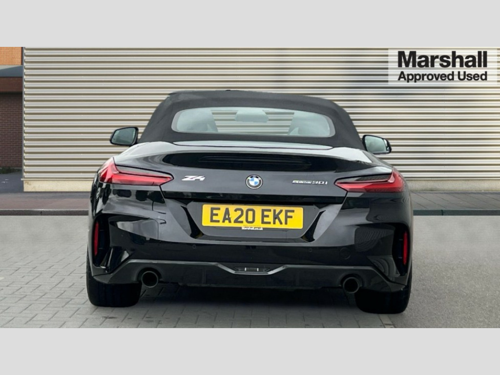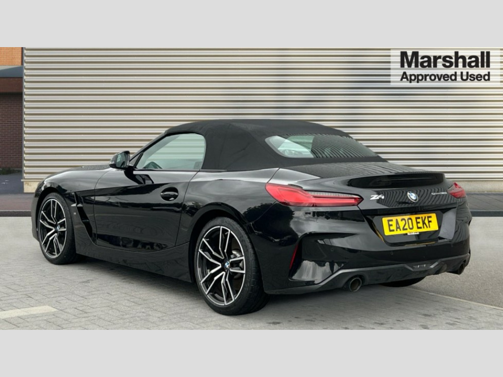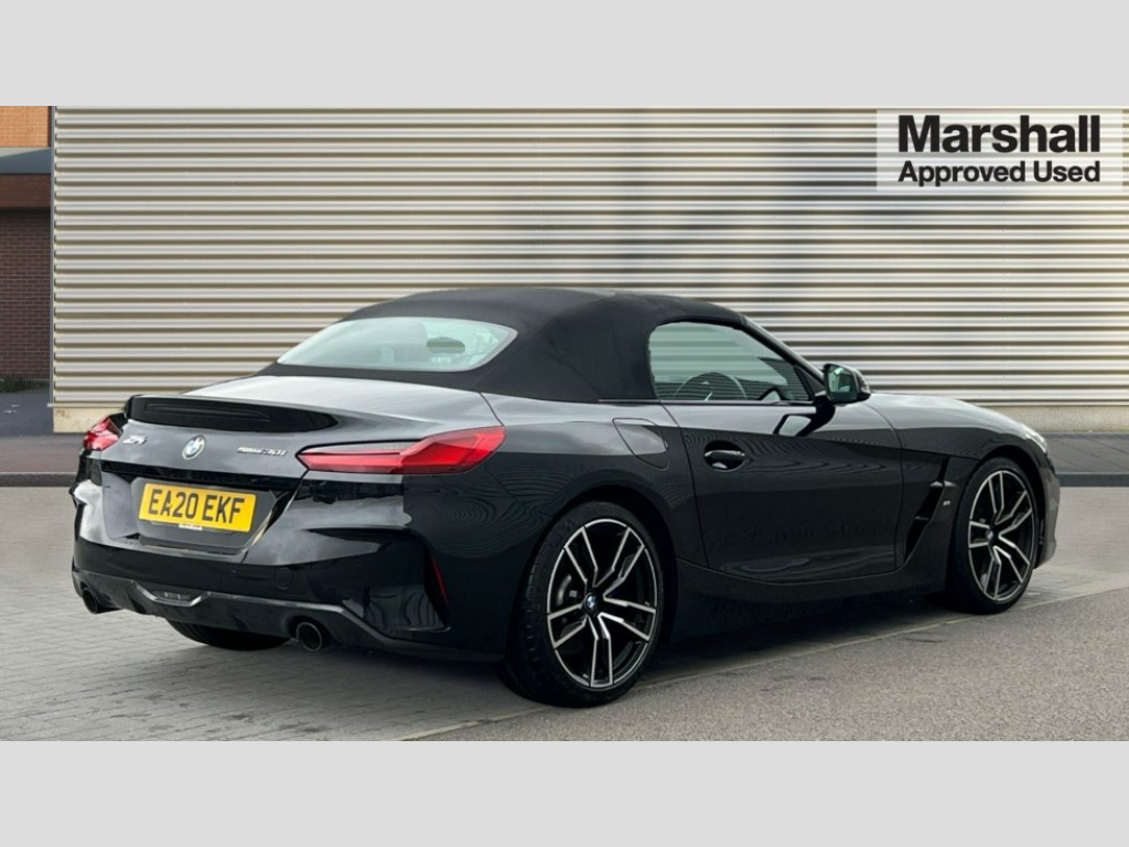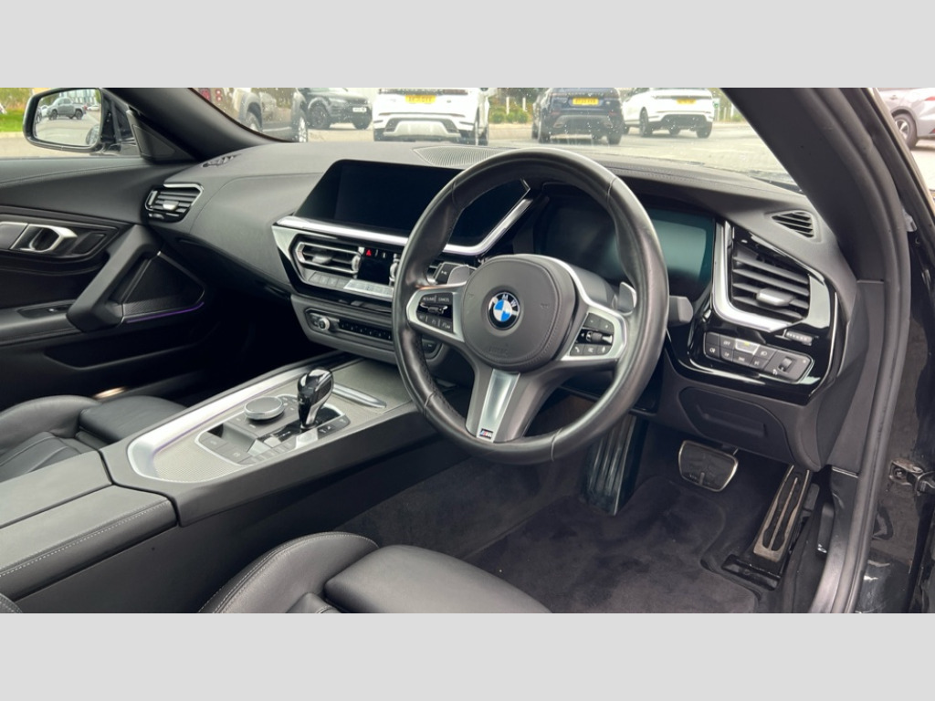 BMW Z4 sDrive 30i M Sport 2dr Auto Active guard plus, Auto start-stop, BMW Live Cockpit Professional with 10.25" high resolution instrument and control display, BMW Online services, BMW Teleservices, Electric power steering, Fuel gauge, Instrument cluster, Oil sensor for level and grade, warning by check control system, Oil temperature gauge, Optimum shift indicator, Pull away assistant, Run flat indicator, Speedometer with mph readout, Tachometer, Variable sport steering, Double joint spring, Double VANOS, Drive performance control with ECO PRO comfort + sport mode, Eight speed steptronic sport transmission, with gearshift paddles, Electronic differential lock, Fuel tank breather system, High precision injection, M sport suspension, Safety battery terminal clamp, BMW advanced loudspeaker system, USB connection, Automatic headlight beam throw control with load dependent regulating reaction, dynamic compensation of braking dive and acceleration squat, Door sill finishers with M designation, Door sill strips, Dynamic braking lights comprising activated hazard warning flashers and third brake lights, Electric heated rear window, Exhaust tailpipe - split left and right, Exterior mirror housing finished in body colour, Exterior mirrors - electrically folding with anti-dazzle, Fingertip control / anti-trap function on electric window, Follow me home headlight function, Front and rear bumper system, Green tinted heat protection glazing, Heated windscreen washer jets, High gloss shadow line, Interior rear view electrochromatic mirror with automatic anti dazzle function, Kidney grille in mesh design, LED daytime running lights, corona ring style, LED Indicators, LED rear lights, M aerodynamic body kit, Model logo, Tailgate release handle, Two-stage brake lights, Visible VIN plate, Welcome lighting, Windscreen wipers with adjustable interval, 12V power socket in front storage compartment, Activation of interior lighting, Ambient lighting, Battery in luggage compartment, Child seat ISOFIX attachments for passenger seat, Cupholder, Driver and front passenger heated seats, Extended storage - Z4 - 4 lashing eyes, storage net, 2 hooks and strap, Front and rear velour floor mats, Front headrests, Height adjustable mechanically and infinitely variable steering column, M leather steering wheel, M Sport seats for driver and passenger, Microfilter and active carbon filter, Sunvisors with vanity mirrors, Two zone automatic air conditioning, Vernasca leather upholstery, Connected package professional - Z4, 3 point front seat belts, Airbags - Front driver and passenger, front and side impact protection, Anti lock braking system (ABS) with brake assist, Automatic Stability Control (ASC), BMW emergency call, Brake energy regeneration, Braking readiness, Cornering brake control (CBC), Crash Sensor - activates hazard/interior lighting + unlocks doors, Deactivation of fuel pump in the event of a crash, Dry braking, Dynamic brake control, Dynamic stability control + (DSC+), Dynamic Traction Control - DTC, Electromechanical parking brake with automatic drive away release and auto hold function, Front and rear brake discs with interior ventilation, M Sport brakes, Plastic fuel tank, Roll over protection, Seat belt force limiter, Seat belt tensioners, Seat occupancy protection, Two tone horn, Tyre pressure monitoring with three level warning strategy, Alarm, Centre lock switch, Closing system with central locking, Electronic vehicle immobiliser, Start/stop button with Comfort Go keyless engine start and auto Start/stop deactivation button, Sensatec instrument panel, 18" Double spoke M light alloy wheels in bicolour ferric grey - style 798M, BMW Mobility Kit, Reduced rolling resistance tyres