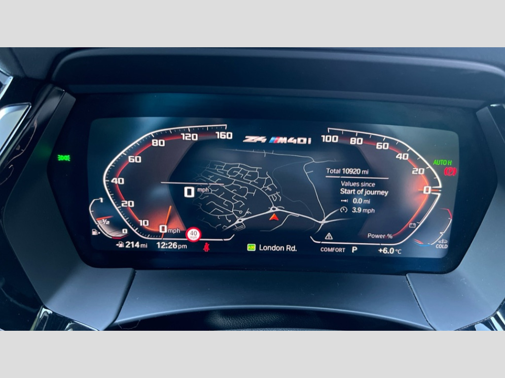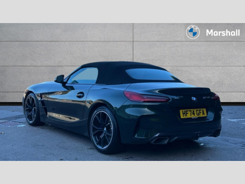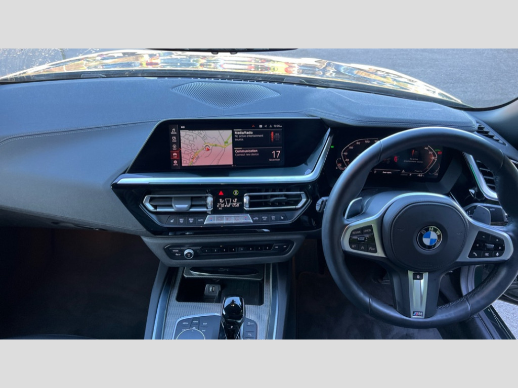 BMW Z4 sDrive M40i 2dr Auto Active guard plus incl speed limit assist, lane departure warning with steering impulse and front collision warning with brake intervention, BMW ConnectedDrive online services, BMW Live Cockpit Professional with nav function/12.3" high resolution instrument +10.25" control display/Intelligent Voice Assist/2 USB/WiFi interface, BMW Teleservices, Condition based service, Electric power steering, Fuel gauge, iDrive touch controller with turn and press function, Instrument cluster, Language version English, Oil sensor for level and grade, warning by check control system, Oil temperature gauge, Optimum shift indicator, Pull away assistant, Run flat indicator, Speed limiter, Speedometer with mph readout, Tachometer, Variable sport steering, Adaptive M suspension, Double joint spring, Double VANOS, Drive performance control with ECO PRO comfort + sport mode, Eight speed steptronic sport transmission, with gearshift paddles, Fuel tank breather system, High precision injection, M Sport differential, 2x USB Type C ports in front centre console for charging and data transfer, 2x USB Type C ports in rear centre console for charging, DAB tuner, USB connection, Auto dimming driver's door mirror, Automatic headlight beam throw control with load dependent regulating reaction, dynamic compensation of braking dive and acceleration squat, Door mirror memory, Door sill finishers with M designation, Door sill strips, Dynamic braking lights comprising activated hazard warning flashers, Electric folding door mirrors, Electric heated rear window, Exhaust tailpipe - split left and right, Extended high gloss shadowline exterior trim, Exterior mirror housing finished in body colour, Fingertip control / anti-trap function on electric window, Follow me home headlight function, Front and rear bumper system with replaceable deformation elements, Green tinted heat protection glazing, Heated windscreen washer jets, Interior rear view electrochromatic mirror with automatic anti dazzle function, Kidney grille in mesh design, LED 3rd brake light, LED daytime driving lights, LED Indicators, LED rear lights, Lightweight engineering, M aerodynamic body kit, Matt black window recess finisher, Model logo, Rain sensor, Rear boot, Reversing light, Tailgate release handle, Two stage brake force display, Visible VIN plate, Welcome lighting, Wind deflector, Windscreen wipers with adjustable interval, 12V power point in luggage area, 12V power socket in front storage compartment, 2 cup holders in front centre console, Activation of interior lighting, Additional storage compartment - 4 lashing eyes, strap and storage net, Ambient lighting, Battery in luggage compartment, BMW ID, Child seat ISOFIX attachments for passenger seat, Driver and front passenger heated seats, Driver and front passenger lumbar support, Electrically adjustable front driver and passenger seats with memory, Front and rear armrests integrated in door trim + centre console includes storage compartment and rear centre armrest includes 2 cupholders, Front and rear velour floor mats, Front headrests, Height adjustable mechanically and infinitely variable steering column, Illuminated glovebox, Luggage compartment light, M sport leather steering wheel, M Sport seats for driver and passenger, Microfilter and active carbon filter, Multifunction steering wheel, Single front passenger seat, Sunvisors with vanity mirrors and ticket pocket, Through load system, Two zone automatic air conditioning, Vernasca leather upholstery, Connected package professional - Z4, 3 point front seat belts, Airbags - Front driver and passenger, front and side impact protection, Anti lock braking system (ABS) with brake assist, Automatic Stability Control (ASC), BMW emergency call, Brake energy regeneration, Braking readiness, Cornering brake control (CBC), Crash sensor activating central locking release, hazard warning lights, fuel cut off, interior lighting, safety battery terminal clamp and airbags, Curtain airbags, Deactivation of fuel pump in the event of a crash, Dry braking, Dynamic brake control, Dynamic stability control + (DSC+), Dynamic Traction Control - DTC, Electromechanical parking brake with automatic drive away release and auto hold function, Front and rear brake discs with interior ventilation, Head airbags, M Sport brakes with blue calipers M designation in front, M sport seatbelt, Plastic fuel tank, Pyrotechnic seat belt tensioners, Roll over protection, Seat belt force limiter, Seat belt stopper, Seat occupancy protection, Side airbags for driver and passenger, Two tone horn, Tyre pressure monitoring with three level warning strategy, Warning triangle, Centre lock switch, Closing system with central locking, Electronic vehicle immobiliser, Start/stop button with Comfort Go keyless engine start and auto Start/stop deactivation button, Thatcham cat 1 remote alarm, Sensatec dashboard, 19" Double spoke alloy wheels in bicolour cerium grey - style 800M, Reduced rolling resistance tyres, Tool kit, Tyre repair kit