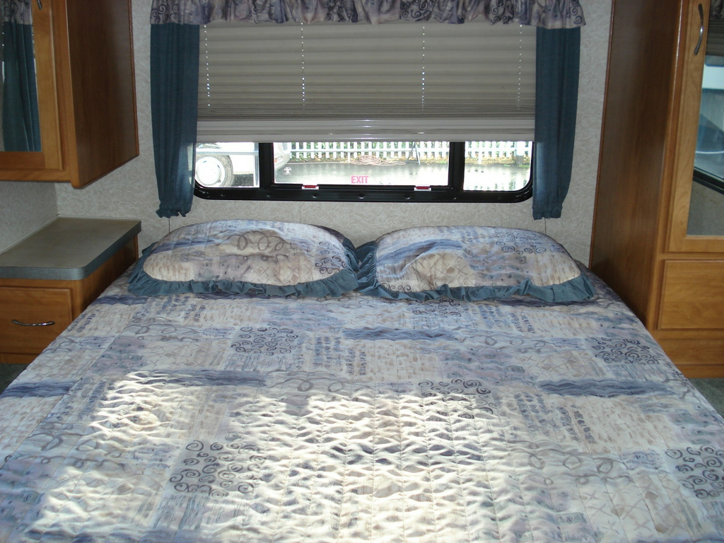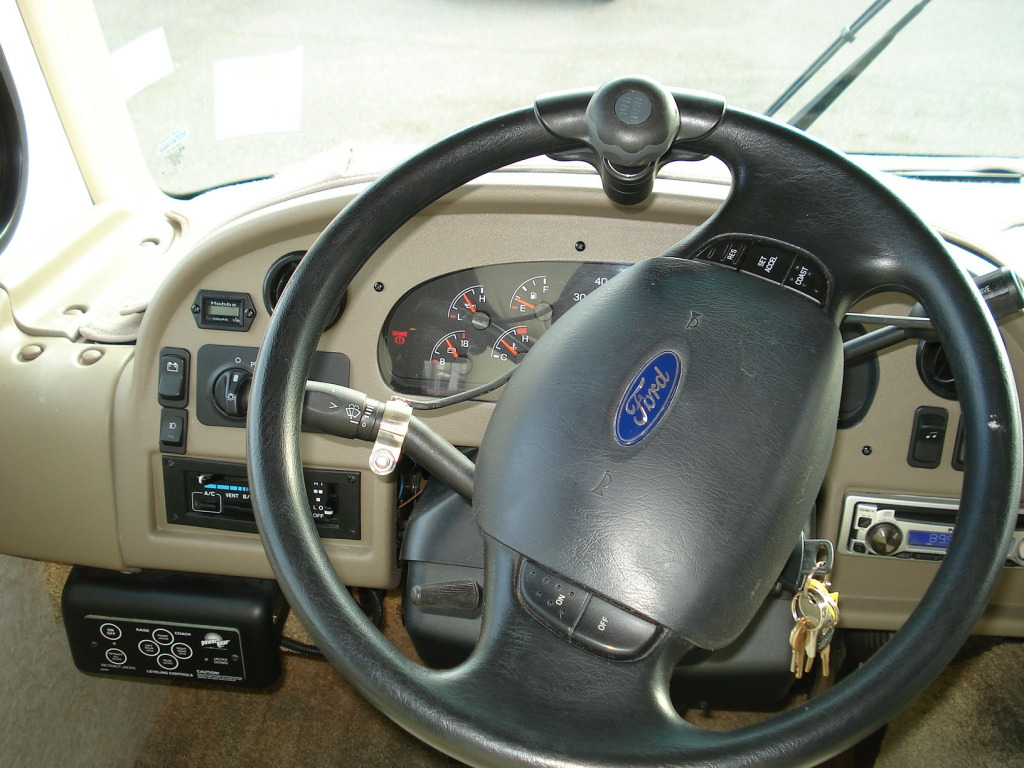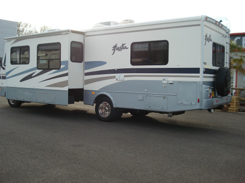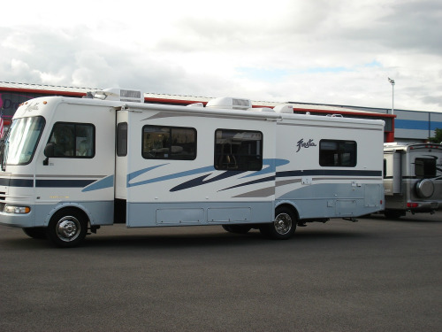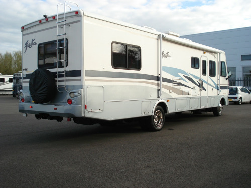 Fleetwood Fiesta 32 S. Ford Triton. 5 sp.Torque shift automatic with O/D. Front Room Super slide. Lots of basement outside storage with Rear through locker. Rear Queen Island bed in end bedroom Ample cupboard and wardrobe storage. Fitted T.V. Modern finish shower room with W.C. and vanity wash basin area. Quality laminated type flooring through to kitchen/front room area. All American standard fitted kitchen appliances. Dinette bed. Front 360 swivel captains chairs and Bed settee finished in soft ultra leather. T.V. cabinet unit. 240/110/12v electrics. On board 5.5kva Onan generator. 2kw sine wave inverter. Huge solar panel linked into X4 high watt leisure batteries. Hydraulic levelling jacks A+E sun awning. UK spec. tow hitch. Upgraded suspension. Imported and sold by us 6 years ago to its one UK owner. Well above the average with all USA and UK service history and documentation. All our RVs for sale are open to a full professional accredited written inspection WE ARE UKs. No. 1 BUYER OF ALL CLEAN AND TIDY AMERICAN MOTORISED RVs.NO MESSING INSTANT PAYMENT PAID.H.P SETTLEDPart exchange and finance available. All our RVs are sold with our peace of mind warranty cover.The information on the above is provided for general information purposes only and is provided in good faith However we make no representation of any kind expressed or implied regarding the accuracy of any information in our advertising,