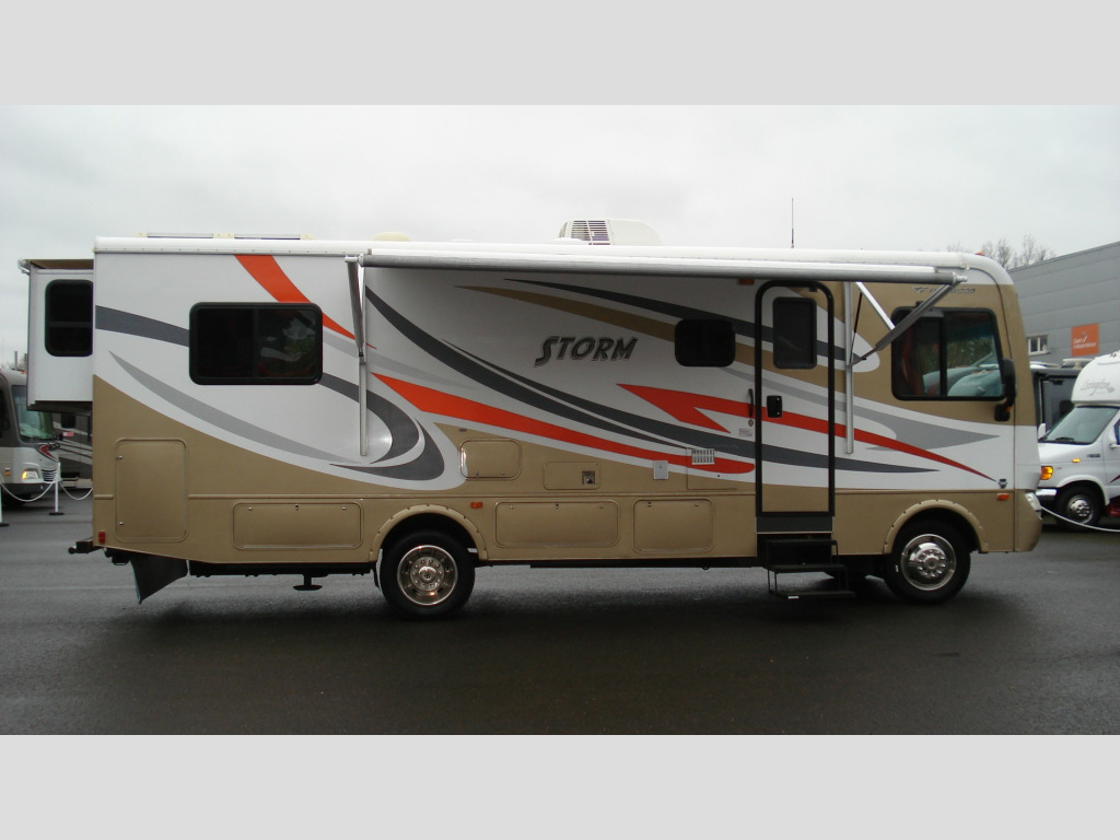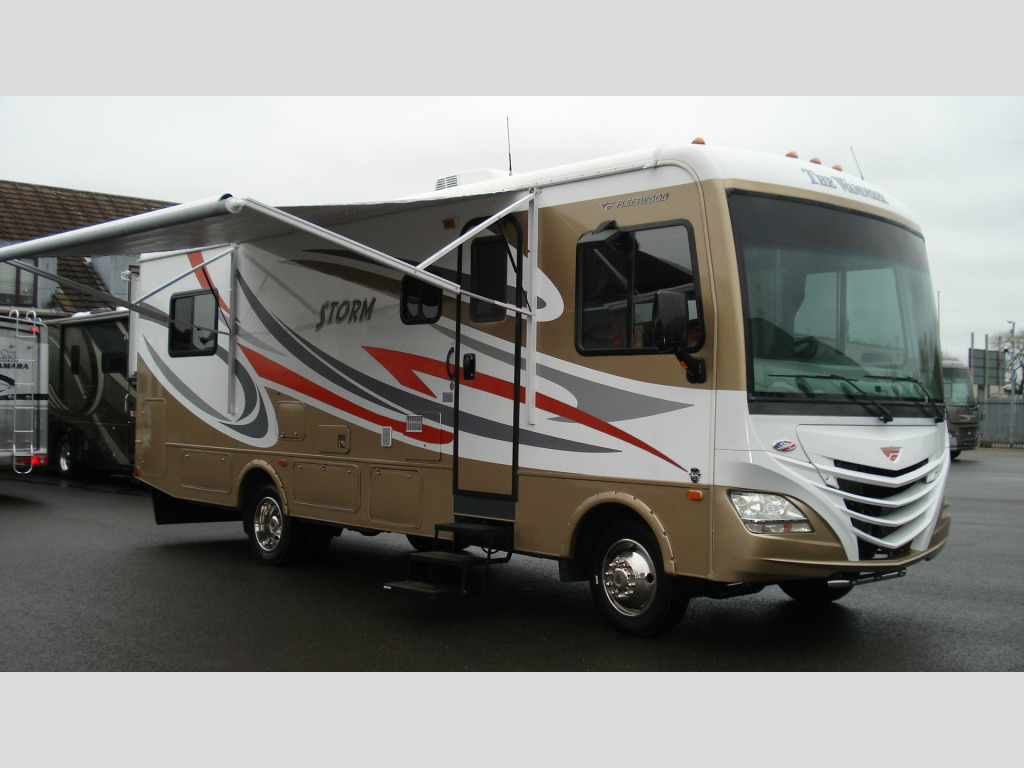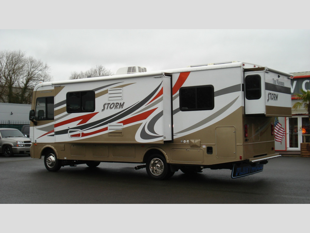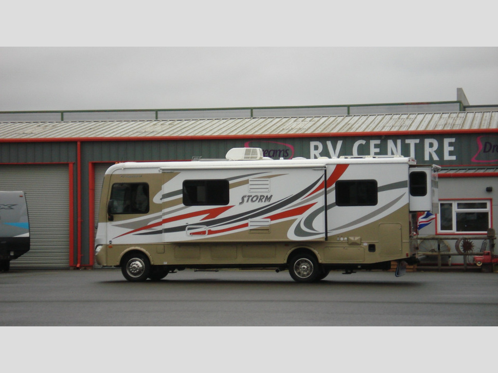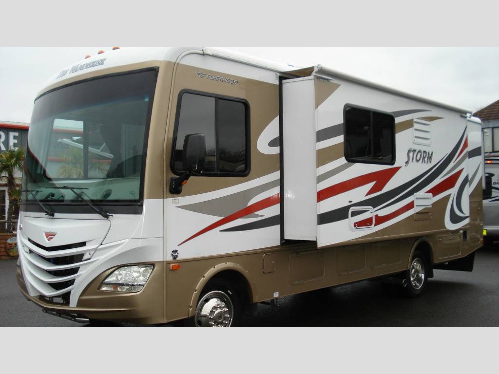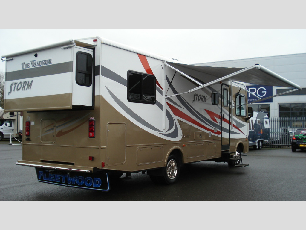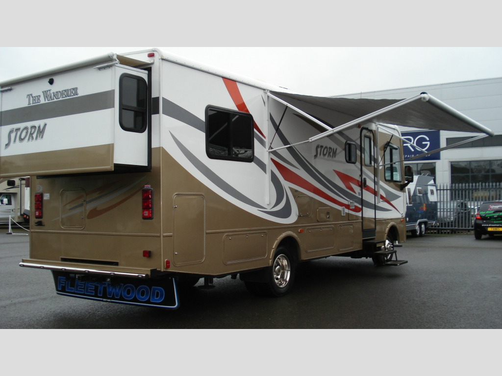 Fleetwood Storm 28ft 2013 model Ford Triton with New Long Range LPG Conversion 5 sp.Toque shift auto + tow haul. Great Layout with the following. Huge Front slide out plus Rear end bedroom slide out making these a huge interior space in a short R.V. Lots of large underfloor storage lockers plus large rear through locker.Rear Queen Island bed Fitted Avtex TV . Shower room with W.C. and vanity wash basin Ample wardrobe and storage cupboards throughout. All laminated type flooring. Kitchen with all fitted appliances. Horseshoe shaped dinette. Dual pane windows. Over cab electric drop down bed sleeping a total of 6 in X3 separate beds Fitted seat belts. Elec swivel Front AvtexT.V. Elec. Sun blind. Entertainment centre. Full UK 240v electric conversion. 110 and 12v. On board self start 4kva Onan generator. Two Huge solar Panels.Electric Sun awning. Outside entertainment centre. Outside Bbq point. Reversing and side cameras. Scopian tracker. Lots of nice quality upgrades fitted. UK spec. tow hitch. Fleetwood Dirt skirt. All new tyres Plus all the standard high end American Spec that this RV has fitted. Imported and previously sold by us.VISIT OUR WEBSITE 360 TOUR PAGE FOR A VIDEO ON THIS UNITFleetwood have over 60yrs in the RV business and have a high reputation for quality and product longevity All manuals and documentation. All our RVs for sale are open to a full professional accredited written inspection WE ARE UKs. No. 1 BUYER OF ALL CLEAN AND TIDY AMERICAN MOTORISED RVs.NO MESSING INSTANT PAYMENT PAID.H.P SETTLEDPart exchange and finance available. All our RVs are sold with our peace of mind warranty cover.The information on the above is provided for general information purposes only and is provided in good faith However we make no representation of any kind expressed or implied regarding the accuracy of any information in our advertising,