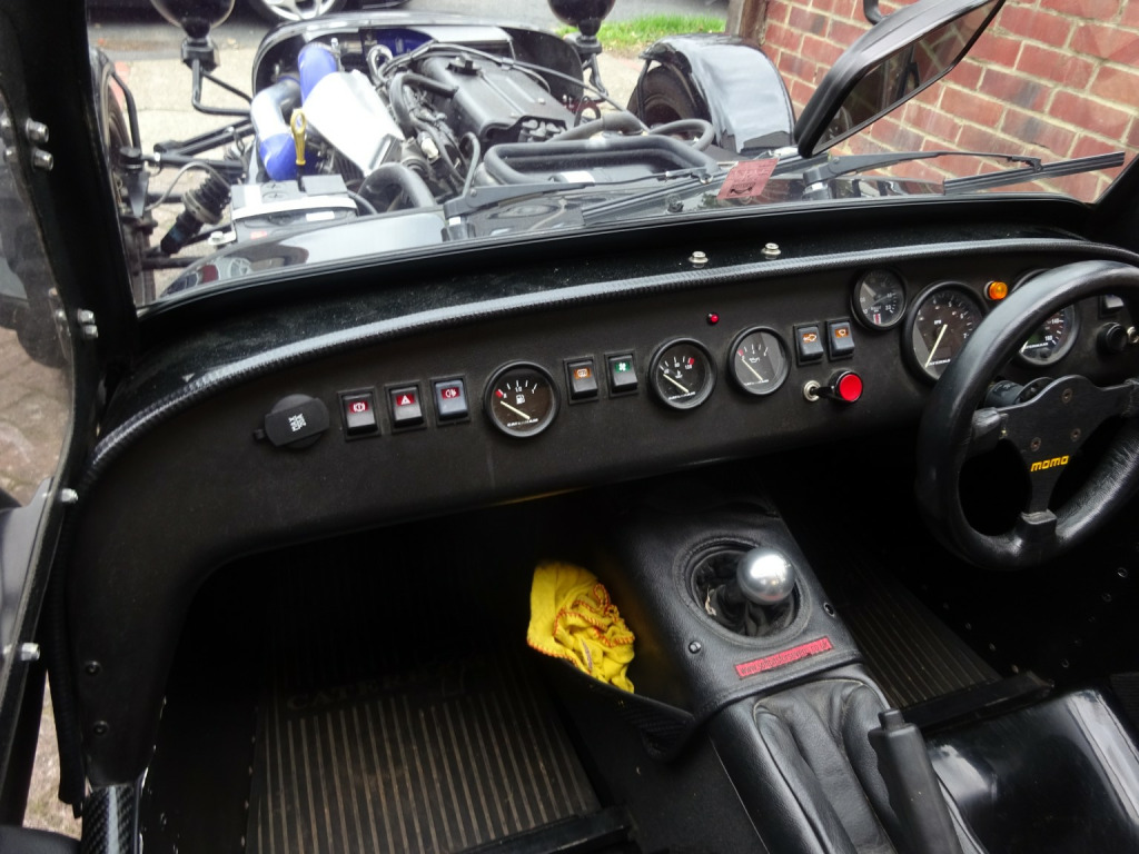 Advertising on behalf of a client. Caterham 7 fitted with Ford 1.6 Zetec engine which has been professionally supercharged. Dynoed at just over 180 BHP(please see pictures) Supplied new to current owner, only covered 10, 657 miles from new. Finished in black. This Caterham was supplied with lowered floors, Black pack, aero filler cap, adjustable black leather seats, 15 inch alloy wheels, spare wheel, momo quick release steering wheel, 4 point harness, push button start, plus more. Please call Steve on 07767 727 257, for more information.