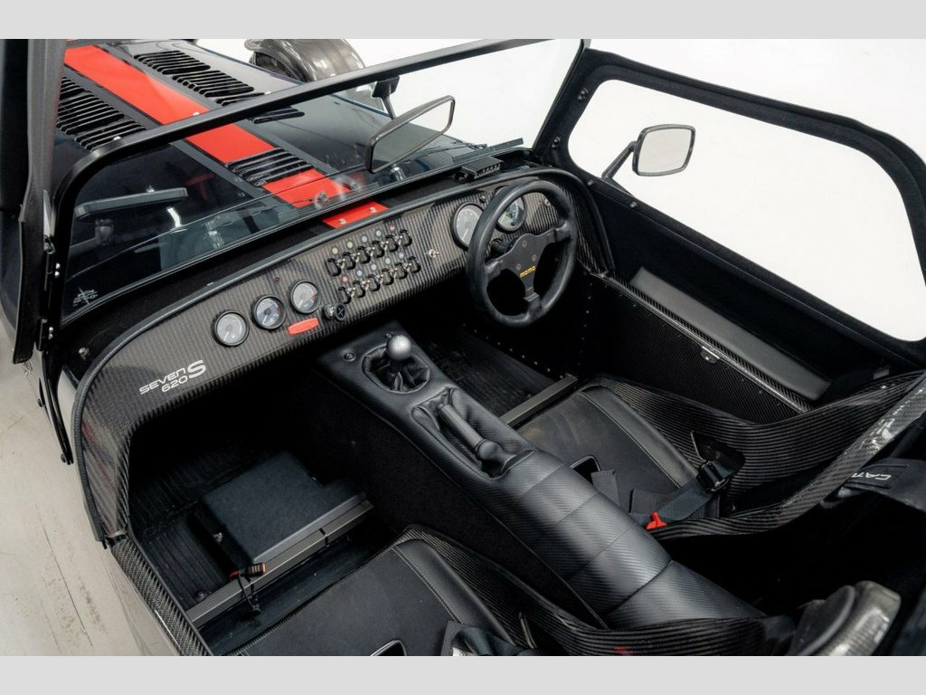 We are thrilled to have purchased this epic Caterham 620 S. Finished in Gravity Black with Red/Matt Black decal package. Powered by a 310 BHP supercharged duratec with a 5 speed manual transmission. The car boasts many features including; Dry sump, LSD, Lightened flywheel, Heated carbon padded seats, 4 point harness, Carbon dashboard, Momo quick release wheel, lowered floors, sequential shift lights, carbon fibre interior panels, plumbed in fire extinguisher, Carbon leather tunnel top, heated screen, heater, track day roll bar, carbon front & rear wings, carbon nose cone whiskers, aero wishbones, track day rear exit exhaust, full windscreen and weather equipment, black pack, sports suspension, battery master cut off. This example also boasts 2 keys, relevant paperwork and a documented Caterham service history. Call early!