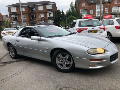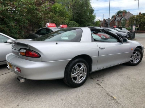 0161 448 7000, Full MOT Supplied, Camaro 3.8 Wild Pony, T Top Targa, Automatic, LHD, 200 bhp), 231 cu in (3.8 L) L36 V6 (205 hp), 0 to 60+MPH in just 5.2 seconds 30+MPG, This car has a 2 door coupe type body with a front positioned engine delivering power to the rear wheels. Its 6 cylinder, overhead valve naturally aspirated engine has 2 valves per cylinder and a displacement of 3.8 litres. It musters power and torque figures of 200 bhp (203 PS/149 kW) at 5200 rpm and 305 Nm (225 lbft/31.1 kgm) at 4000 rpm respectively. A 5 speed manual 'box supplies the power to the driven wheels. The Chevrolet Camaro weighs a stated 1500 kg at the kerb. imate control, full leather, panoramic sunroof, cruise control, stability control, traction control, abs, air bag, brake assist, multiple airbags, passenger airbag, quick-clear screen, side air bags, alarm, anti-theft system, central locking, immobiliser, locking wheel nuts, privacy glass, remote alarm, remote central locking, electric mirrors, electric windows, heated door mirrors, electric seats, front armrest, lumbar support, sports seats, rear armrest, twin sunroofs, alloy wheels, body coloured bumpers, colour coded body, front fog lights