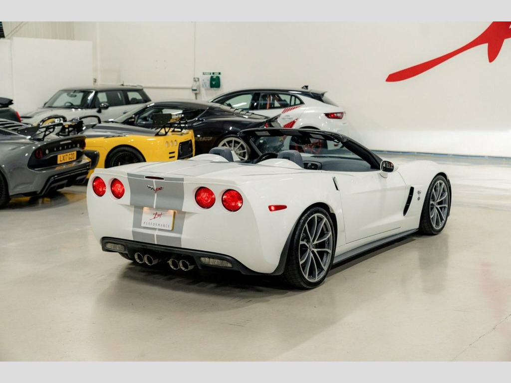 We are pleased to offer this incredibly rare 2013 Corvette C6 427 60th Anniversary Convertible. Direct from the owners personal collection. Finished in Artic white over Diamond Blue leather. Optimal 427 factory spec including; 1SC Equipment group (Custom leather wrapped interior, memory package, sports buckets, heated seats, power lumbar/bolsters) Carbon fibre package, 60th Anniversary package (Blue diamond leather, 60th anniversary centre caps, headrest embroidery, steering wheel cap, ZR1 rear spoiler, Blue soft top with embroidered stripes, Grey painted calipers, suede interior accents), Machine face competition wheels, 60th Anniversary graphics, Grey headlamps, On top of its perfect factory specification & standard LS7 V8 engine it has been enhanced further by HP Performance/A&A Corvettes with a Vortech supercharger, front mount intercooler, high capacity fuel pump, Long tube headers & mild to wild exhaust controller. Boasting 616 wheel horsepower (over 700 bhp at the flywheel). The ultimate collector C6 which to import one from the US like for like would now be close to 90k! The car has been in temperature controlled storage since coming to the UK in 2016 and is in concourse condition along with being factory fresh on its underside. Supplied with both remote keys and exhaust fobs, recent major service completed. Export enquiries welcomed.