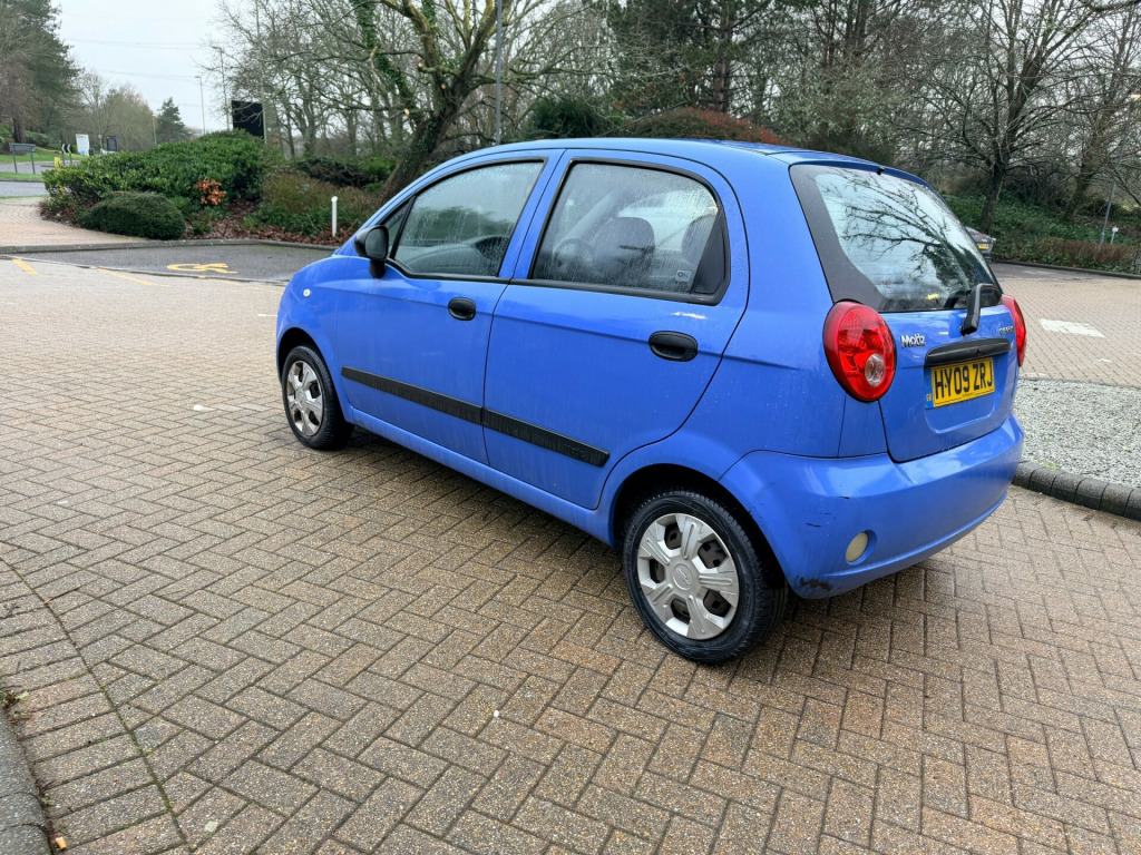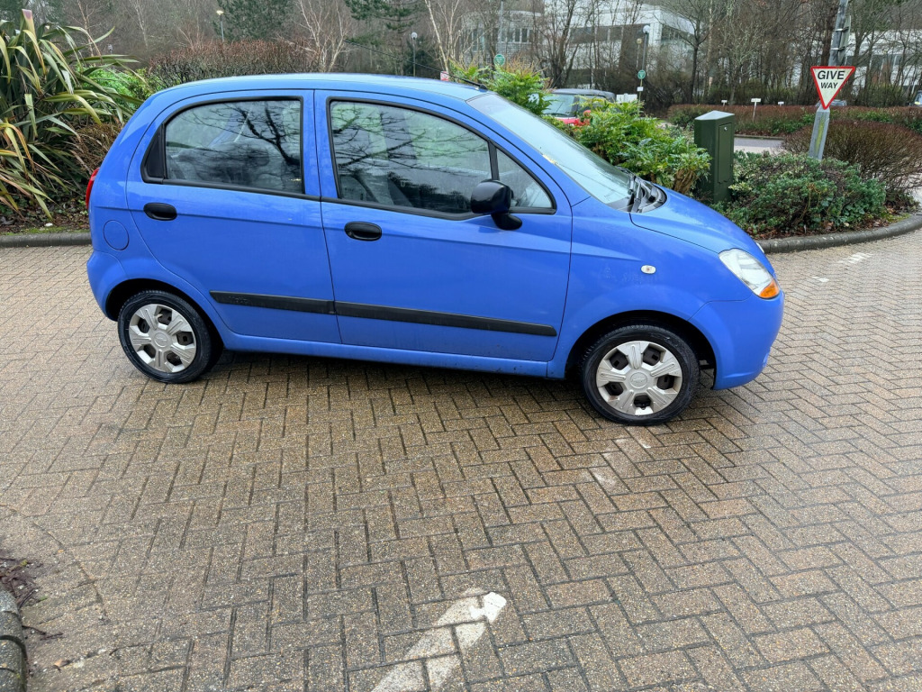 BRAND NEW MOT! LOW MILEAGE, LOW TAX, We currently have over 40 vehicles in stock, including multiple small cars. Please view our full range online or get in touch to discuss availability and finance options.This 2009 Chevrolet Matiz 0.8 S Hatchback with a manual petrol engine has 57000 miles on the clock and is ULEZ compliant, making it a great city car. With MOT valid until 15/02/2027, this 5-door hatchback offers 5 seats, making it practical for everyday use. The 51 bhp engine emits 119 g/km of CO2 and comes with features such as an adjustable steering column/wheel, ashtray/lighter, centre console, and cup holder. Perfect for urban driving and small enough to navigate tight spaces, this Chevrolet Matiz is a reliable and efficient choice for anyone in need of an affordable, practical, and eco-friendly vehicle. BY APPOINTMENT ONLY! justable steering column/wheel, ashtray/lighter, centre console, cigar lighter, cup holder, in car entertainment (radio/cd), seats split rear, speakers, tinted glass, upholstery cloth, air bag driver, air bag passenger, anti-lock brakes, central door locking, centre rear seat belt, head restraints, immobiliser, power-assisted steering, seat - isofix anchorage point (two seats - rear), seat belt pre-tensioners, body coloured bumpers, mirrors external, side protection mouldings, spare wheel (space saver), steel wheels, windscreen wiper