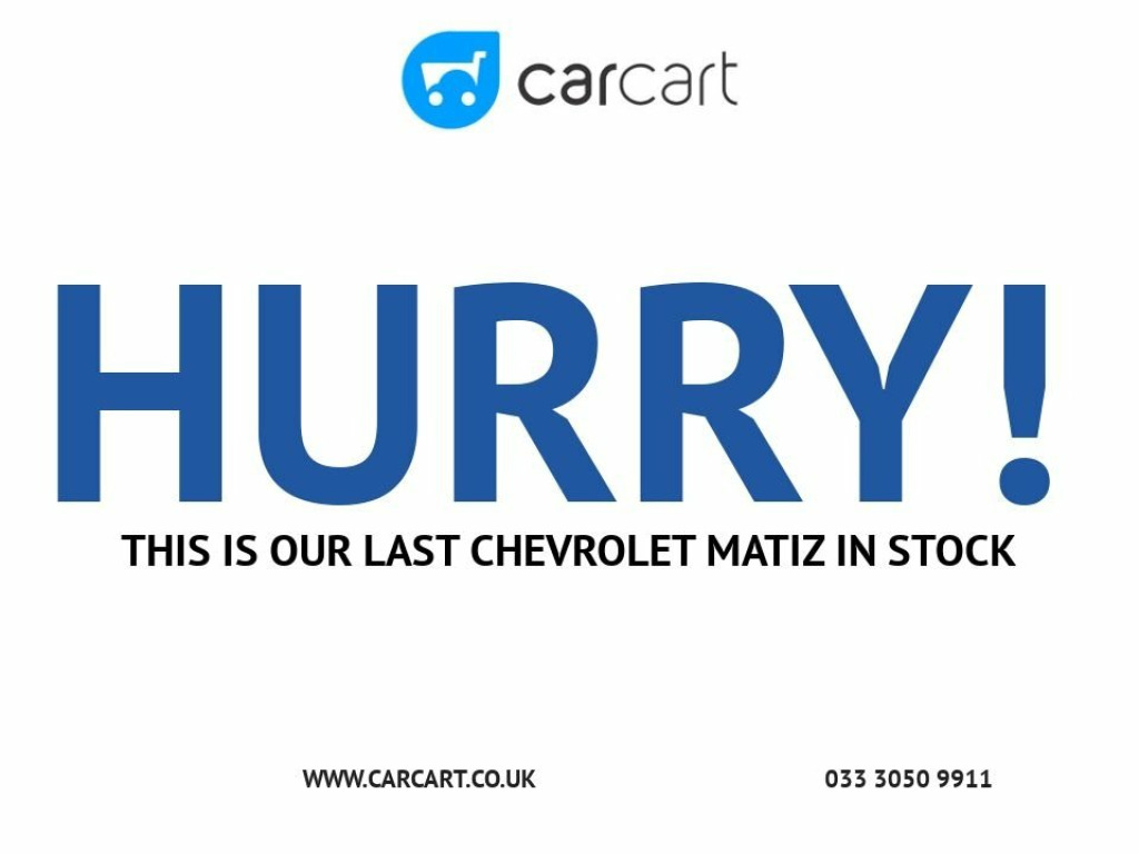 We have for sale a lovely Chevrolet Matiz finished in blue which is available for a test drive. Filled with essential features, such as 13 Inch Alloy this car ensures a comfortable ride. Next MOT due 11/2026, last serviced 12/2025 (total 11 services, 9 by MD), spare key (not tested), ULEZ Compliant, HPI clear. V5C form present or to follow. PAY FULLY REFUNDABLE FEE ON OUR WEBSITE TO RESERVE VEHICLE! Viewing available 7 days a week! AS WE ARE A VERY BUSY DEALERSHIP, PLEASE CHECK THE AVAILABILITY BEFORE COMING DOWN CALLING 03330509911 OR TEXTING VIA WHATSAPP 07570757055. Adjustable Steering Column/Wheel, Air Bag Driver, Air Bag Passenger, Anti-Lock Brakes, Body Coloured Bumpers, Central Door Locking, Centre Rear Seat Belt, Electric Windows (Front), Head Restraints, Immobiliser, In Car Entertainment (Radio/CD), Mirrors External, Mirrors Internal, Power-Assisted Steering, Side Protection Mouldings, Speakers, Upholstery Cloth