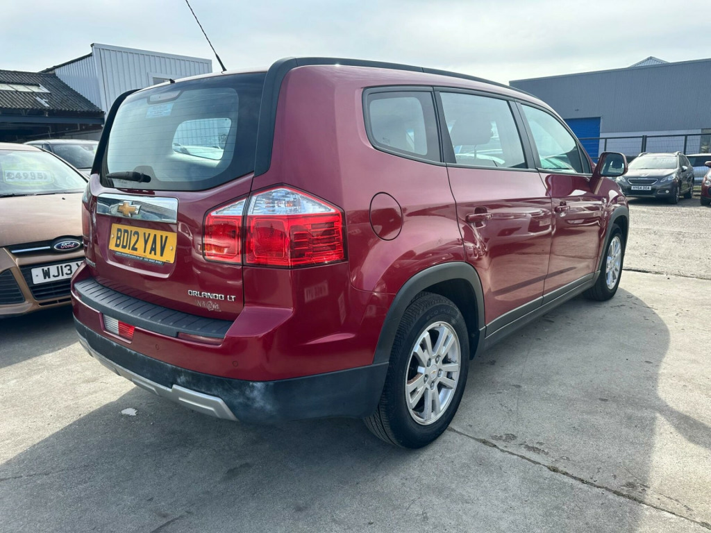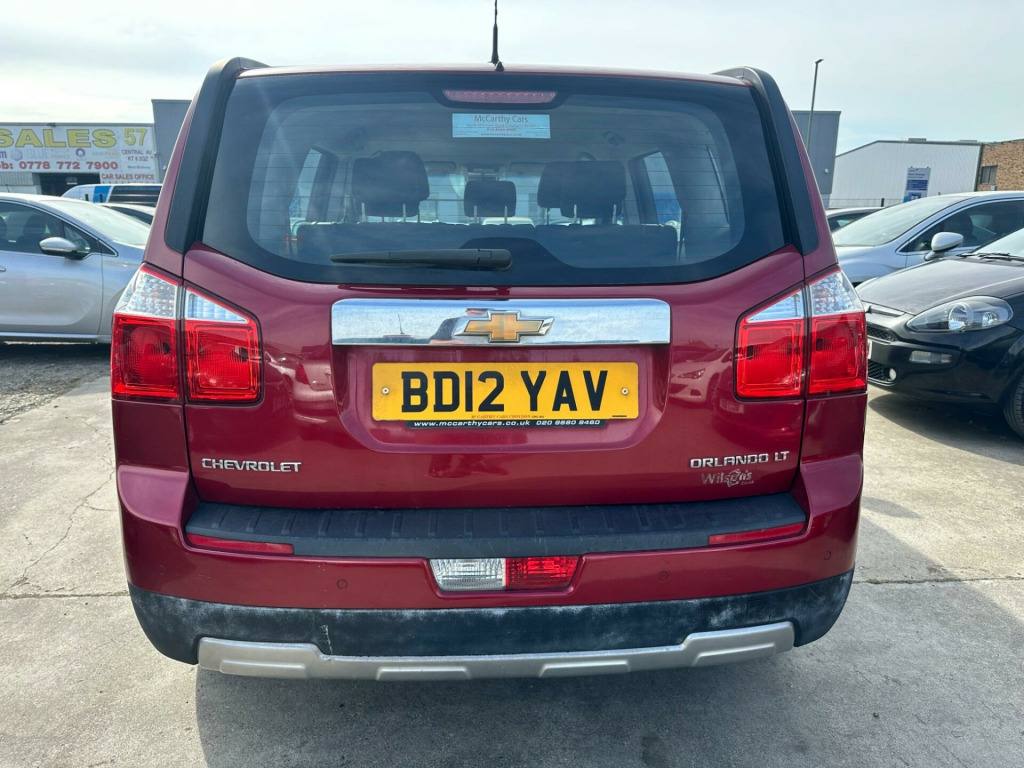 30 CENTRAL AVENUE, WEST MOLESEY, KT8 2QZThe 2012 Chevrolet Orlando LT, with its 1.8L petrol engine, offers practical motoring for those needing a spacious car. This particular model has covered very low mileage, with only 49000 miles on the clock, and comes with partial service history. Equipped with rear parking sensors, including parking assistance, manoeuvring is made easier. The inclusion of climate control ensures a comfortable environment for all occupants.With seating for seven, this Orlando is a versatile choice for larger families or those needing extra passenger space. The low mileage for its age suggests less wear and tear compared to similar vehicles on the market. The addition of parking sensors and climate control enhances the driving experience, providing added convenience and comfort over standard models. in alloy wheels, 2nd row 12v power socket, 2nd row armrest with cup holder, 4-way adjustable drivers seat, abs - anti-lock braking system, air moisture sensor - thermometer, airbag - driver, airbag - front passenger, airbag - front passenger deactivation switch, airbag - front side impact, airbag - side curtain, alarm - thatcham category 1, ashtray, automatic air recirculation, aux in socket, behind radio storage area, black centre console, black radio/hvac bezel, body colour door handles, child proof rear door locks, chrome effect grille surround, chrome effect tailgate handle, climate control, courtesy light, door mirrors - body coloured, door mirrors - electrically heated/adjustable, drivers armrest, drivers information centre, dual map reading lights, esc - electronic stability control, electric rear window defogger, electrically operated front windows with express up/down, electrically operated rear windows with express down, engine immobiliser, foldable key, follow me home headlights, front fog lights, gloss black centre console, gloss black instrument panel mid wing and door console, halogen headlights, height adjustable front seatbelts with pretensioners, height adjustable front and rear head restraints, height adjustable headlights, isofix child seat restraint system for 2nd row outer rear seats, interior movement sensor, lockable glovebox, luggage compartment 12v power socket, luggage compartment cover, power steering, radio with single disc cd player music navigator and usb, rear cargo area convenience net, rear convenience hooks, rear parking sensors, rear pockets on front seat backs, rear windscreen wiper, rear seat view mirror, remote control central door locking, roof antenna, seatbelt warning indicator, seats - 4 way adjustable driver and front passenger, silver effect skid plates, speakers x 6, steering column - lock control, steering column - tiltable and telescopic, steering wheel - audio controls, steering wheel - leather wrapped, storage box with lid on top of dashboard, sun visors with passenger side vanity mirror, tinted windows with shaded windscreen band, tyre repair kit, usb port for mp3 ipod interface, vehicle inclination sensor, mesh fabric - jet black