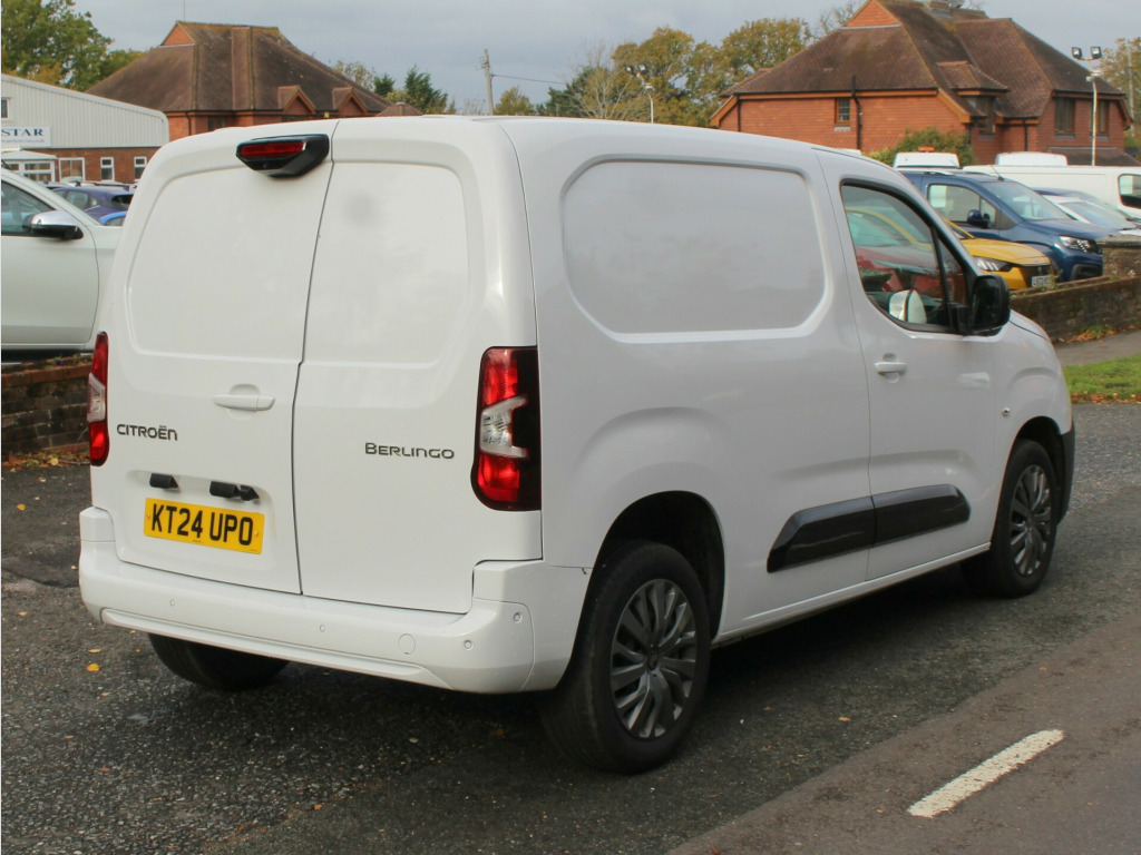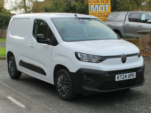 The 2024 Citroen Berlingo 1.5 BlueHDi 1000 Driver M Panel Van is a low mileage, ULEZ compliant commercial vehicle with only 10150 miles on the clock. This diesel-powered panel van is perfect for transporting goods with its spacious interior, 3 seats, and 5 doors. With a gross weight of 2390kg, it can handle heavy loads with ease. The van comes equipped with modern features such as a 10in HD Colour Touchscreen with Citron Connect Navigation and DAB Radio, Mirror Screen, Apple Carplay, and Android Auto. It also includes Bluetooth Handsfree and a USB socket for convenience. The 12V Socket in the dashboard and Citroen Connect Box with Emergency and Assistance System provide added practicality. Its stylish exterior features body colour door handles and 16in Steel Wheel with Twirl Wheel Trim. This Euro 6 van is a reliable and efficient choice for any business's commercial needs., OPEN 7 DAYS A WEEK  -  A SELECTION OF UP TO 200 CARS AND VANS AVAILABLE. Click on dealer 'VISIT WEBSITE' link for many more large photographs of this car. We are a West Sussex Trading Standards Approved 'Buy with Confidence Dealership'. in hd colour touchscreen with citron connect navigation and dab radio - mirror screen -apple carplay and android auto- bluetooth handsfree and usb socket, 12v socket in dashboard, citroen connect box with emergency and assistance system, 16in steel wheel - twirl wheel trim, body colour door handles, door mirrors - painted black, electric windows - front with one touch operation, electrically adjustable - heated folding door mirrors, front and rear bumper - body colour, lockable fuel cap, puncture repair kit, side rubbing strips - painted black, sliding door rail cover - body coloured, 6 floor-mounted load securing rings, air conditioning, automatic windscreen wipers - magic wash and integrated steering wheel audio controls, city pack, comfort connect pack, drivers seat - 6-way adjustable, extenso modular bulkhead and passenger bench seat, front door pockets with 1.5l bottle holders, hard plastic floor protection in cabin, nearside side sliding door, overhead storage shelf in cabin, unglazed asymmetric rear doors opening to 180 degrees, advanced emergency braking system, airbags - driver and front passengers including curtain and side airbags, alarm - parametric and volumetric - thatcham category 1 approved alarm with tilt sensor, automatic activation of hazard warning lights on major deceleration, automatic electronic parking brake, dashboard mounted central locking push buttons and auto locking above 7 mph, door opening warning light and audible lights-on warning, driver and passenger seatbelt unfastened warning, electronic stability control and abs with hill start assist - eba and ebfd, lane keep assist, remote central locking with deadlocks, rolling code transponder immobiliser, visible vin at base of windscreen, automatic illumination of headlight control, front fog lights, height adjustable halogen headlights, high beam assist, high level third brake light, cruise control with programmable speed limiter, driver attention alert, electric power assisted steering with reach and rake adjustable sport steering wheel, intelligent speed assistance speed limit information, multi-function on-board trip computer, rear parking sensors, rev counter with maintenance and gear efficiency - gei - indicators, tyre pressure monitor