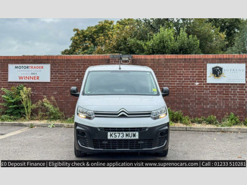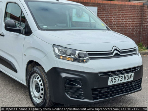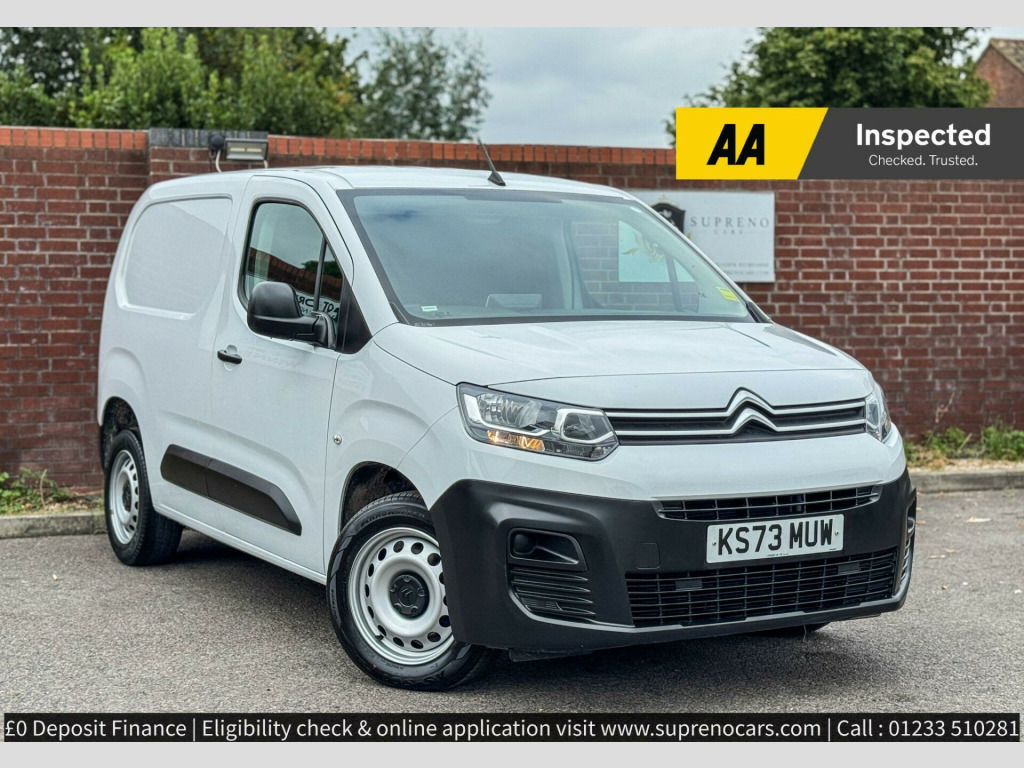 This vehicle has passed a 128 Point AA inspection & HPI Checked| Complementary 06 Months Commercial Warranty (Unlimited Mileage & Claim ) & 12 Months AA breakdown cover, This example is a Short Wheel Base, Standard Roof Panel Van - Load Capacity 1000Kg - Kerb Weight 1383 KG - Reg Date Oct 2023 - Air Con - ANTI-THEFT USING MECHANICAL ANTI-THEFT DEVICE - HEATED EXTERIOR MIRROR - AUTO HEADLAMPS - APPLE CARPLAY & ANDROID AUTO - CRUISE CONTROL AND SPEED LIMITER - AND MUCH MORE FEATURES, 14 Days Money Back Guarantee (T& C's apply)| Reserve or buy Online now | Express Home Delivery Available 7 Days a week, Drive away today with our complementary 5 Days driveaway comprehensive insurance (T& C's apply),For finance applications or eligibility check please visit www.suprenocars.com, save money & time with our state of the art online system and benefit from our low finance rates from 5.4% Flat rate and 8.9% APR Rep, instant decision and you could drive away the same day. Worried about poor credit score? Not a problem, we can help (Acceptance is subject to status (T& C's apply),Part Exchange Welcome | We can buy your car and settle your existing finance | All major Debit cards are accepted,Please satisfy yourself that a vehicle has a specific feature that is important to you before purchasing | Please note that a £99 admin fee will apply, www.suprenocars.com or call on 07305152076 or 01233 510281 - We are based in Ashford, Surrey TW15 1RZ. 12V Socket in Dashboard, 16in Steel Wheels - Grey with Half Hubcap, 3-Spoke Sport Steering Wheel, 6 Floor-Mounted Load Securing Rings, Air Conditioning, Airbags - Driver, Audio Controls through Steering Wheel Buttons, Automatic Activation of Hazard Warning Lights on Major Deceleration, Black Door Handles, Citroen Connect Box with Emergency and Assistance System, Citroen Connected Services, Cruise Control with Programmable Speed Limiter, Cup Holders for Driver and Passenger on Either Side of the Dashboard, Dashboard Mounted Central Locking Push Buttons and Auto Locking Above 7 MPH, Door Opening Warning Light and Audible Lights-On Warning, Driver and Passenger Seatbelt Unfastened Warning, Drivers Seat - 4-Way Adjustable, ESC with Hill Start Assist - ABS Braking including EBA and EBFD, Electric Power Assisted Steering with Reach and Rake Adjustable Steering Column, Electric Windows - Front with One Touch Operation, Electrically Adjustable Heated Door Mirrors, Free2Move Connect Fleet Telematics Subscription - 6 Months, Front and Rear Bumper - Black, Full Bulkhead with Clothes Hook, Hard Plastic Floor Protection in Cabin, Height Adjustable Halogen Headlights, High Level Third Brake Light, Lockable Fuel Cap, Manual Folding Exterior Mirrors, Manual Parking Brake, Multi-Function On-Board Trip Computer, Multimedia with 8in Touchscreen, Nearside Side Sliding Door, Overhead Storage Shelf in Cabin, Primary and Spare Folding Keys, Remote Central Locking with Deadlocks, Rev Counter with Maintenance and Gear Efficiency - GEI - Indicators, Rolling Code Transponder Immobiliser, Side Protection - Black, Single Passenger Seat, Top Box Storage Compartment, Two-Speed and Intermittent Front Wipers, Tyre Inflation Kit in lieu of Spare Wheel, Tyre Pressure Monitor, Unglazed Asymmetric Rear Doors Opening to 180 Degrees, Visible VIN at Base of Windscreen, White Text LCD Instrument Panel, 8in Colour Touchscreen with Citroen Connect Navigation and DAB Radio - Bluetooth Handsfree - USB Socket.