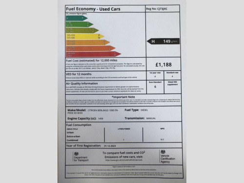 This 2023 Citroen Berlingo 1.5 BlueHDi 1000 Enterprise Edition M Panel Van 5dr Diesel Manual SWB Euro Panel Van is currently available for £13,995 with Diesel engine and Manual gearbox. For more information or to arrange a viewing, click here to send us an email using form below.