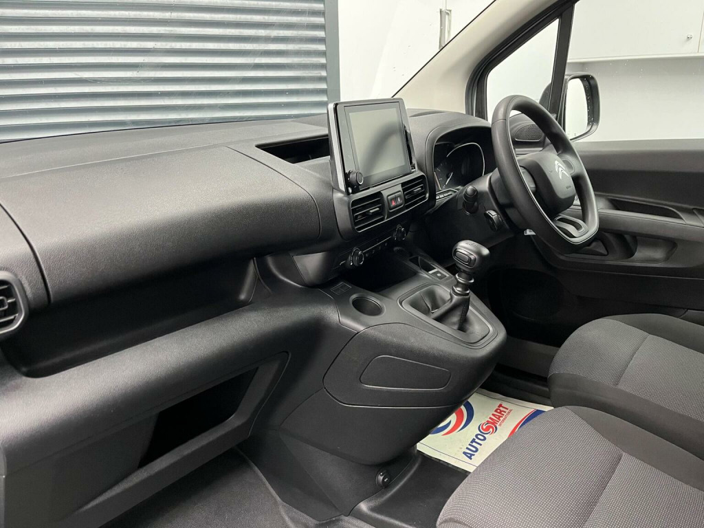 This 2023 Citroen Berlingo Enterprise Edition M SWB offers the reassurance of a full service history and a 6 month warranty for your peace of mind. This 1.5 BlueHDi diesel model, registered in 2023, is a Euro 6 compliant vehicle, meaning it meets the latest emissions standards. Inside, youll find an 8in colour touchscreen with Citroen Connect DAB radio, Bluetooth handsfree, and a USB socket, complemented by Mirror Screen functionality for Apple CarPlay and Android Auto. The Berlingo also features height adjustable halogen headlights with automatic on function and air conditioning, ensuring comfort and convenience on every journey. The Citroen Berlingo Enterprise Edition M stands out with its impressive fuel economy, achieving a remarkable 54 miles per gallon, which indicates its efficiency compared to other vehicles in its class. Furthermore, its low CO2 emissions highlight its environmentally conscious design. This practical and well equipped van is ready for its next owner.