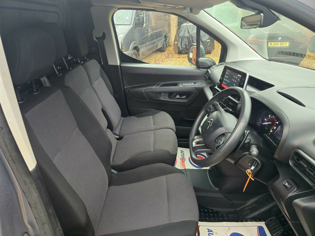 ***FINANCE AVAILABLE, CARD FACILITIES AVAILABLE***PLEASE CALL US DIRECTLEY FOR A FINANCE QUOTE ***This 2020 Citroen Berlingo Enterprise M offers exceptionally low mileage for its age, having covered just 24,000 miles. This practical 5 door van is equipped with a 1.5 litre BlueHDi diesel engine, producing 128 bhp and meeting Euro 6 emissions standards. The Enterprise M trim level includes a host of useful features designed for convenience and comfort, such as Air Conditioning, an 8in Colour Touchscreen with Citroen Connect DAB Radio, Bluetooth handsfree connectivity, a USB socket and Aux in jack. For easier manoeuvring, it also benefits from Rear Parking Sensors and Height Adjustable Halogen Headlights with automatic activation, all part of the Visibility Pack.The Berlingo stands out with its impressive fuel economy, achieving an excellent 51 miles per gallon, and its remarkably low CO2 emissions. This efficiency, combined with a substantial cargo volume of 3900 litres, makes it a cost effective and versatile choice for a variety of needs. These highlights demonstrate how this particular Berlingo offers a superior ownership experience compared to similar vehicles on the market.***PART EXCHANGE WELCOME*** n colour touchscreen with citroen connect navigation and dab radio - bluetooth handsfree - usb socket, 12v socket in dashboard, 16in steel wheel - twirl wheel trim, 6 floor-mounted load securing rings, 6 way adjustable drivers seat - includes lumbar adjustment and under seat storage, 8in colour touchscreen with citroen connect dab radio - bluetooth handsfree - usb socket and aux-in jack, air conditioning, airbags - driver, alarm - parametric and volumetric - thatcham category 1 approved alarm with tilt sensor, automatic activation of hazard warning lights on major deceleration, automatic electronic parking brake, citroen connect box with emergency and assistance system, cruise control with programmable speed limiter, cup holders for driver and passenger on either side of the dashboard, dashboard mounted central locking push buttons and auto locking above 7 mph, door opening warning light and audible lights-on warning, esc with hill start assist - abs braking including eba and ebfd, extenso modular folding passenger bench seat with pivoting writing table - storage under central seat - load through hatch in bulkhead and load protection cover compliant with iso27956, electric power assisted steering with reach and rake adjustable steering column, electric windows - front with one touch operation, electrically folding - adjustable door mirrors with temperature sensors, front fog lights, full steel bulkhead, hard plastic floor protection in cabin, height adjustable halogen headlights, high level third brake light, lockable fuel cap, multi-function on-board trip computer, nearside sliding side loading door, overhead storage shelf in cabin, rear parking sensors, remote central locking with deadlocks, rev counter with maintenance and gear efficiency - gei - indicators, rolling code transponder immobiliser, seat belt unfastened warning - driver, side rubbing strips, spare wheel - full size steel, storage - door pockets with bottle holders, top box dashboard storage compartment, two speed intermittent front windscreen wipers, tyre pressure monitor, unglazed asymmetric rear doors opening to 180 degrees, visibility pack, visible vehicle identification number at base of windscreen