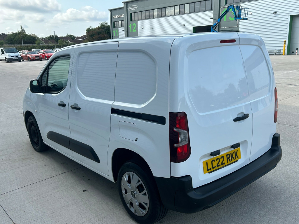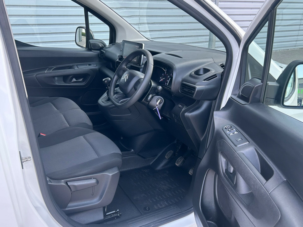 Exceptional example, one owner with Full History.Before leaving we will complete a new service and MOT.We have the V5 both keys and HistoryIntroducing the 2022 Citroen Berlingo 1.5 BlueHDi 1000 Enterprise M Pro Panel Van, a reliable and efficient commercial vehicle with only 67381 miles on the clock. This diesel-powered panel van comes with a valid MOT until 29/04/2026 and is ULEZ compliant, making it an ideal choice for urban driving. With 3 seats and 5 doors, this van is spacious and practical, boasting a gross weight of 2390kg. Equipped with a 8in Colour Touchscreen with Citroen Connect DAB Radio, Bluetooth Handsfree, and USB Socket, you can stay connected on the go. Plus, features like pre-conditioning for the Citroen Box and emergency assistance ensure peace of mind. The electric windows with one-touch operation add convenience to this versatile vehicle. Don't miss out on the opportunity to own this reliable and well-equipped panel van for your business needs. v socket in dashboard, 8in colour touchscreen with citroen connect dab radio - bluetooth handsfree - usb socket and aux-in jack, pre-conditioning for the citroen box with emergency assistance, 16in steel wheel - twirl wheel trim, electric windows - front with one touch operation, electrically folding - adjustable door mirrors with temperature sensors, lockable fuel cap, side rubbing strips, spare wheel - full size steel, two-speed and intermittent front wipers, 6 floor-mounted load securing rings, 6 way adjustable drivers seat - includes lumbar adjustment and under seat storage, air conditioning, cup holders for driver and passenger on either side of the dashboard, extenso modular folding passenger bench seat with pivoting writing table - storage under central seat - load through hatch in bulkhead and load protection cover compliant with iso27956, front door pockets with 1.5l bottle holders, full bulkhead, hard plastic floor protection in cabin, nearside side sliding door, overhead storage shelf, top box storage compartment, unglazed asymmetric rear doors opening to 180 degrees, airbags - driver, alarm - parametric and volumetric - thatcham category 1 approved alarm with tilt sensor, automatic activation of hazard warning lights on major deceleration, automatic electronic parking brake, dashboard mounted central locking push buttons and auto locking above 7 mph, door opening warning light and audible lights-on warning, driver and passenger seatbelt unfastened warning, electronic stability control and abs with hill start assist - eba and ebfd, remote central locking with deadlocks, rolling code transponder immobiliser, visible vin at base of windscreen, cruise control with programmable speed limiter, electric power assisted steering with reach and rake adjustable steering column, multi-function on-board trip computer, rear parking sensors, rev counter with maintenance and gear efficiency - gei - indicators, tyre pressure monitor, front fog lights, height adjustable halogen headlights, high level third brake light