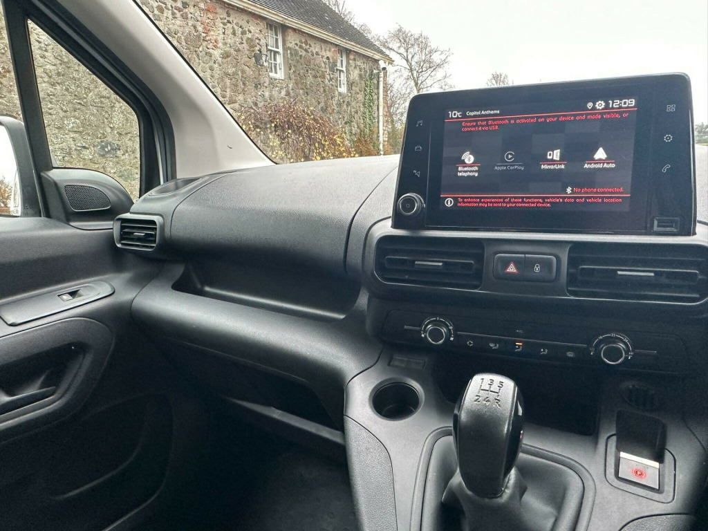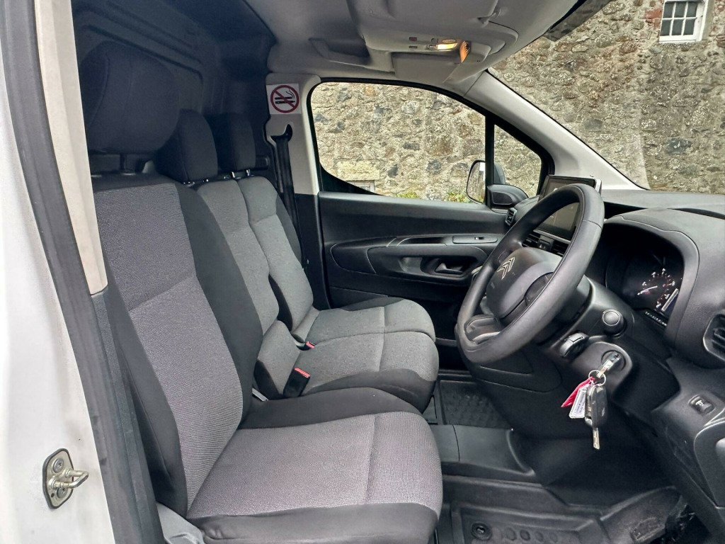 Discover this 2021 Citroen Berlingo 1.5 BlueHDi 1000 Enterprise M SWB Euro 6 (s/s) 5dr, a reliable and practical choice for your business needs. This Enterprise M trim model is equipped with a 1.5 litre diesel engine, offering a smooth and efficient driving experience. You'll appreciate the convenience of height adjustable halogen headlights that automatically switch on, rear parking sensors to assist with manoeuvring, and air conditioning to keep you comfortable. The 8in colour touchscreen provides access to the Citroen Connect DAB Radio, Bluetooth handsfree for calls on the go, and a USB socket and Aux in jack for your audio needs.This particular Berlingo stands out with its impressive fuel economy, achieving a remarkable 54 miles per gallon, which indicates it is more economical than many similar vehicles. Furthermore, its low CO2 emissions are a testament to its modern and environmentally conscious design. For those requiring significant carrying capacity, the generous 3900 litres of cargo volume means you can transport a substantial amount of goods, highlighting its superior practicality compared to other vans in its class. v socket in dashboard, 16in steel wheel - twirl wheel trim, 6 floor-mounted load securing rings, 6 way adjustable drivers seat - includes lumbar adjustment and under seat storage, 8in colour touchscreen with citroen connect dab radio - bluetooth handsfree - usb socket and aux-in jack, air conditioning, airbags - driver, alarm - parametric and volumetric - thatcham category 1 approved alarm with tilt sensor, automatic activation of hazard warning lights on major deceleration, automatic electronic parking brake, citroen connect box with emergency and assistance system, cruise control with programmable speed limiter, cup holders for driver and passenger on either side of the dashboard, dashboard mounted central locking push buttons and auto locking above 7 mph, door opening warning light and audible lights-on warning, esc with hill start assist - abs braking including eba and ebfd, extenso modular folding passenger bench seat with pivoting writing table - storage under central seat - load through hatch in bulkhead and load protection cover compliant with iso27956, electric power assisted steering with reach and rake adjustable steering column, electric windows - front with one touch operation, electrically folding - adjustable door mirrors with temperature sensors, front fog lights, full steel bulkhead, hard plastic floor protection in cabin, height adjustable halogen headlights, high level third brake light, lockable fuel cap, multi-function on-board trip computer, nearside sliding side loading door, overhead storage shelf in cabin, rear parking sensors, remote central locking with deadlocks, rev counter with maintenance and gear efficiency - gei - indicators, rolling code transponder immobiliser, seat belt unfastened warning - driver, side rubbing strips, spare wheel - full size steel, storage - door pockets with bottle holders, top box dashboard storage compartment, two speed intermittent front windscreen wipers, tyre pressure monitor, unglazed asymmetric rear doors opening to 180 degrees, visible vehicle identification number at base of windscreen