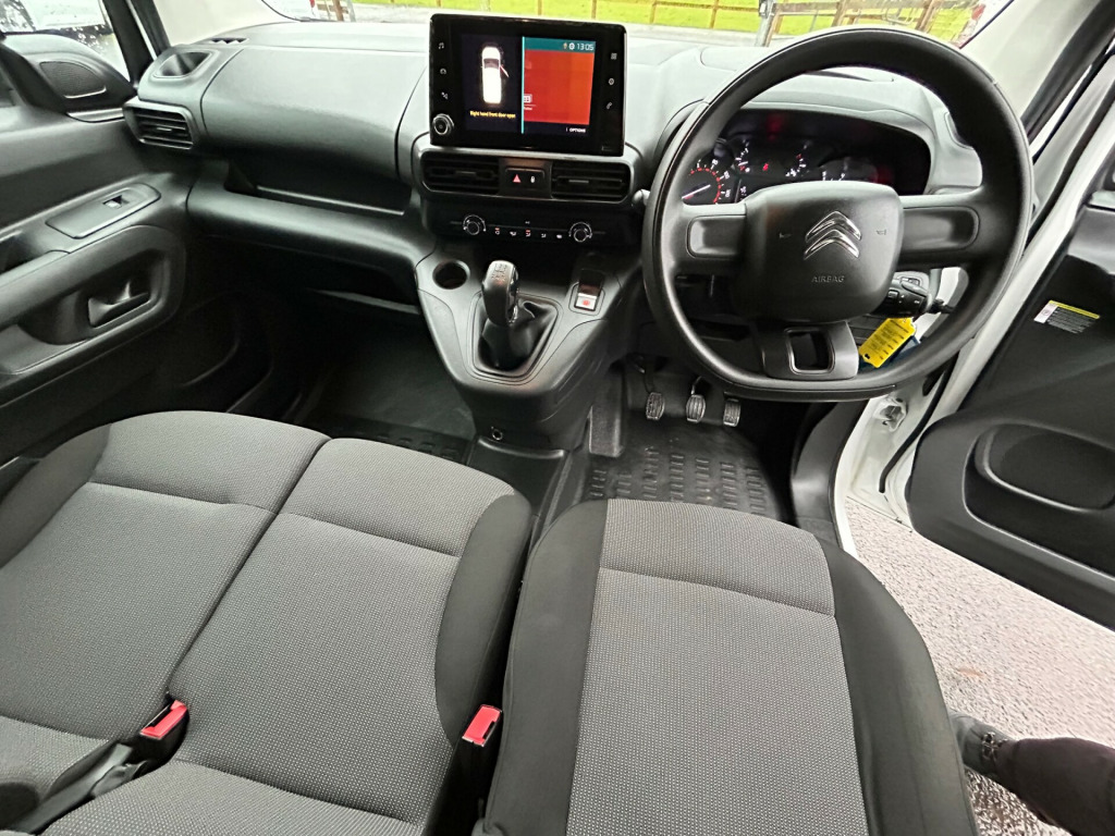 Introducing the 2020 Citroen Berlingo 1.5 BlueHDi 650 Enterprise M Panel Van, a reliable workhorse with only 60000 miles on the clock and a diesel engine that assures durability and fuel efficiency. This ULEZ compliant vehicle comes with 3 seats and 5 doors, making it perfect for transporting goods and personnel. With a gross weight of 2000kg, it provides ample space for all your commercial needs. Boasting a MOT expiry date of 29/09/2026, full main agent service history, this panel van is ready to hit the road without any hassles. Equipped with modern features such as AIRCON, cruise control, 8in Colour Touchscreen with Citroen Connect, DAB Radio, Bluetooth Handsfree, and more, this van offers both comfort and convenience. Whether it's for delivery services or transporting equipment, the Citroen Berlingo is the practical and efficient solution for your business needs. v socket in dashboard, 8in colour touchscreen with citroen connect dab radio - bluetooth handsfree - usb socket and aux-in jack, citroen connect box with emergency and assistance system, 15in steel wheels with twin wheel cover, electric windows - front with one touch operation, electrically folding - adjustable door mirrors with temperature sensors, lockable fuel cap, side rubbing strips, spare wheel - full size steel, 6 floor-mounted load securing rings, 6 way adjustable drivers seat - includes lumbar adjustment and under seat storage, air conditioning, cup holders for driver and passenger on either side of the dashboard, extenso modular folding passenger bench seat with pivoting writing table - storage under central seat - load through hatch in bulkhead and load protection cover compliant with iso27956, full steel bulkhead, hard plastic floor protection in cabin, nearside sliding side loading door, overhead storage shelf in cabin, storage - door pockets with bottle holders, top box dashboard storage compartment, two speed intermittent front windscreen wipers, unglazed asymmetric rear doors opening to 180 degrees, airbags - driver, alarm - parametric and volumetric - thatcham category 1 approved alarm with tilt sensor, automatic activation of hazard warning lights on major deceleration, automatic electronic parking brake, dashboard mounted central locking push buttons and auto locking above 7 mph, door opening warning light and audible lights-on warning, esc with hill start assist - abs braking including eba and ebfd, remote central locking with deadlocks, rolling code transponder immobiliser, seat belt unfastened warning - driver, visible vehicle identification number at base of windscreen, cruise control with programmable speed limiter, electric power assisted steering with reach and rake adjustable steering column, multi-function on-board trip computer, rear parking sensors, rev counter with maintenance and gear efficiency - gei - indicators, tyre pressure monitor, front fog lights, height adjustable halogen headlights, high level third brake light, 2 keys, 3 month/3000 mile warranty